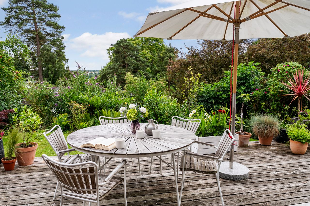 Udenfor venter en dejlig, grøn have i flere niveauer, med hyggelige kroge, solrige terrasser og god plads til leg og afslapning. Haven er anlagt som en lille oase midt i byen, og derudover får du et stort værksted, der giver mulighed for hobbyprojekter eller ekstra opbevaring.