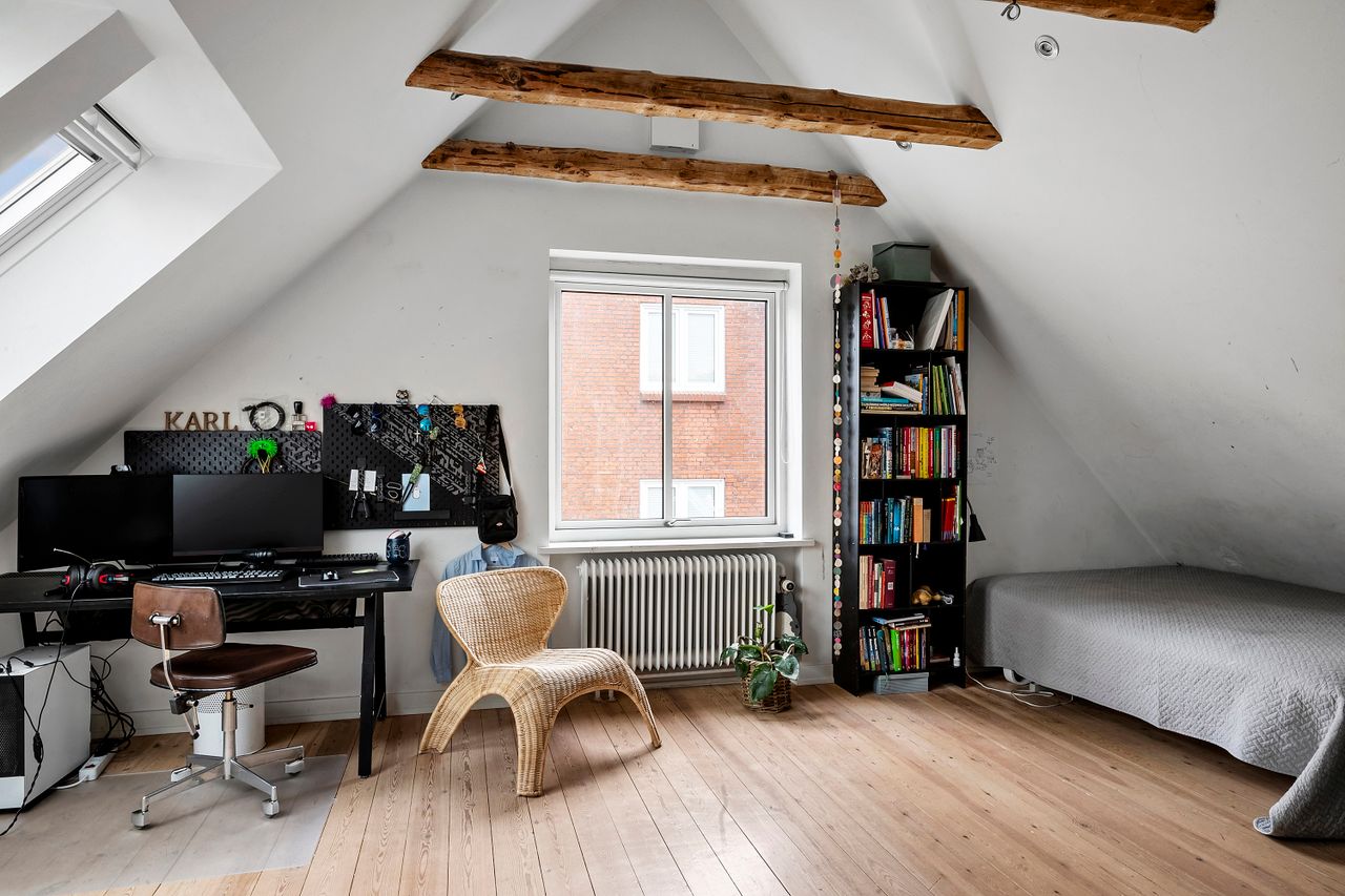 Øverst i huset ligger to rummelige værelser, der især vil tiltale husets teenagere. Her er der åbnet til kip, hvilket skaber en fantastisk rumfornemmelse og giver plads til kreativ indretning. Det ene værelse har en hems og et stort skråvindue, som kan åbnes helt op og giver en skøn fornemmelse af lys og luft.