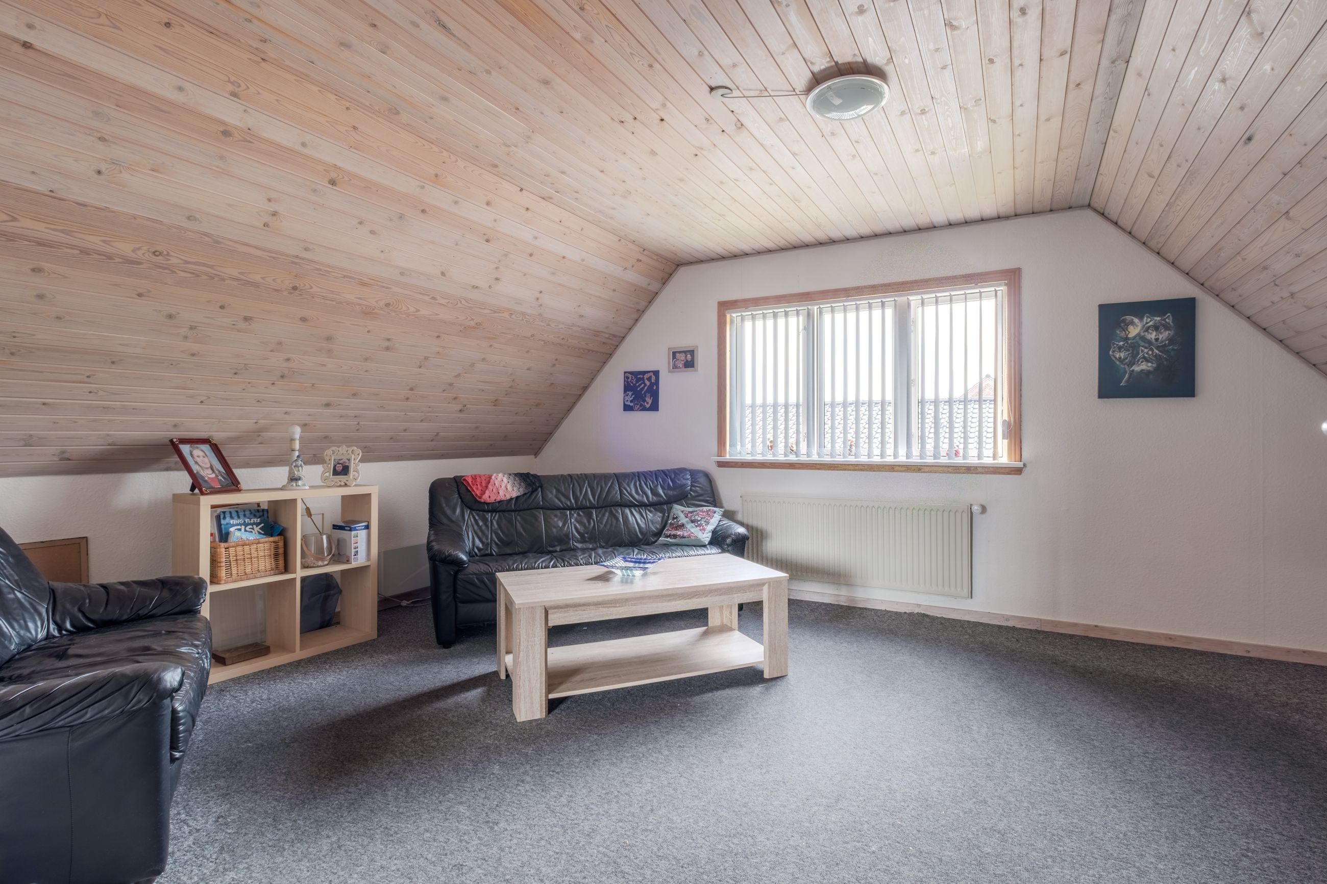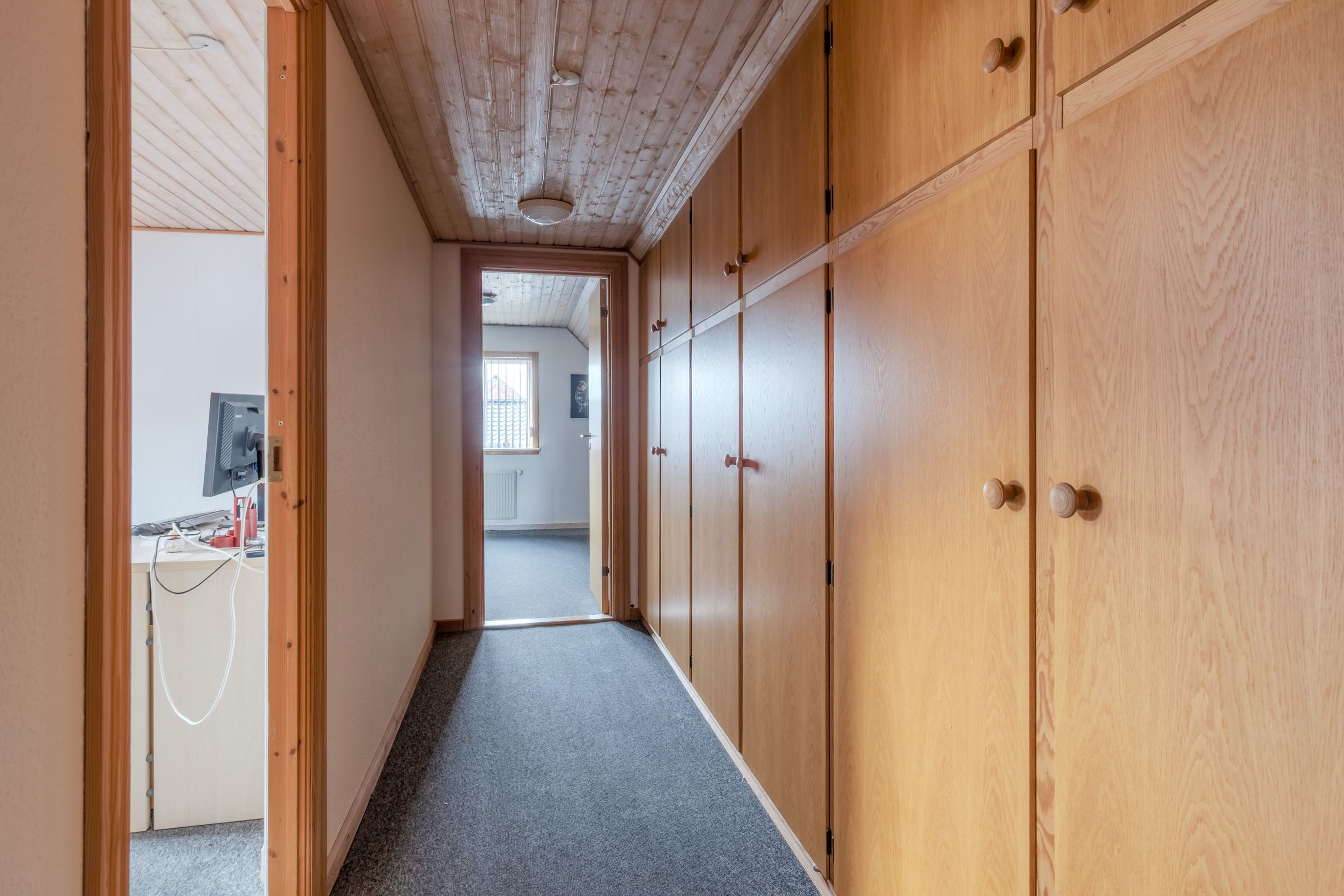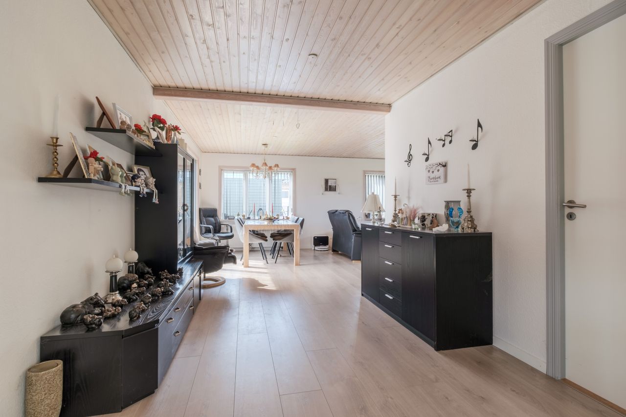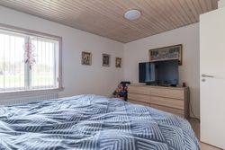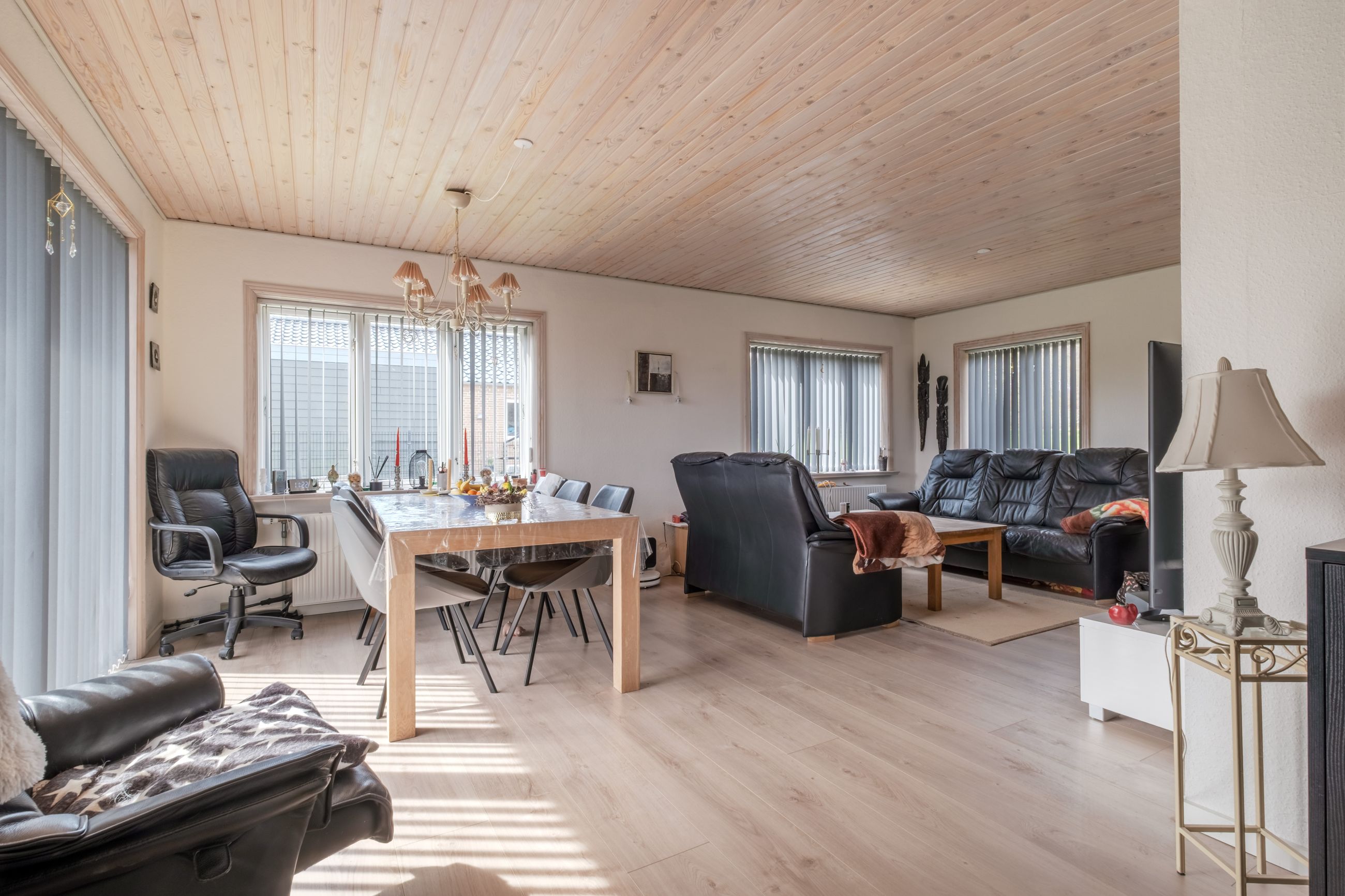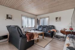 Huset er i 2 plan og rummer et pænt lyst køkken, 4 værelser og en stue med godt lysindfald og direkte udgang via skydedørsparti til de skønne omgivelser udenfor. Stuen har rigelig med plads til både spise- og sofaafdeling.