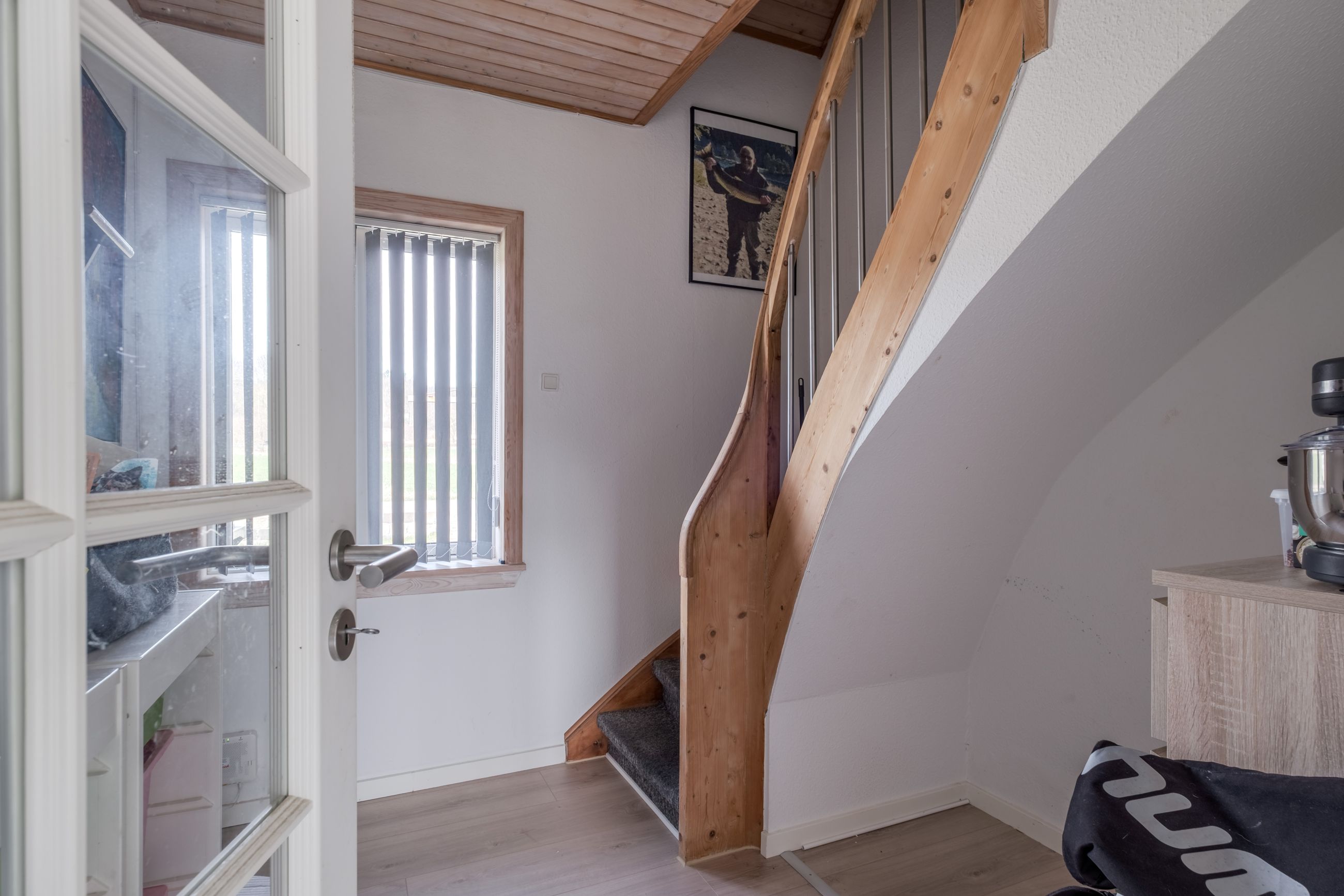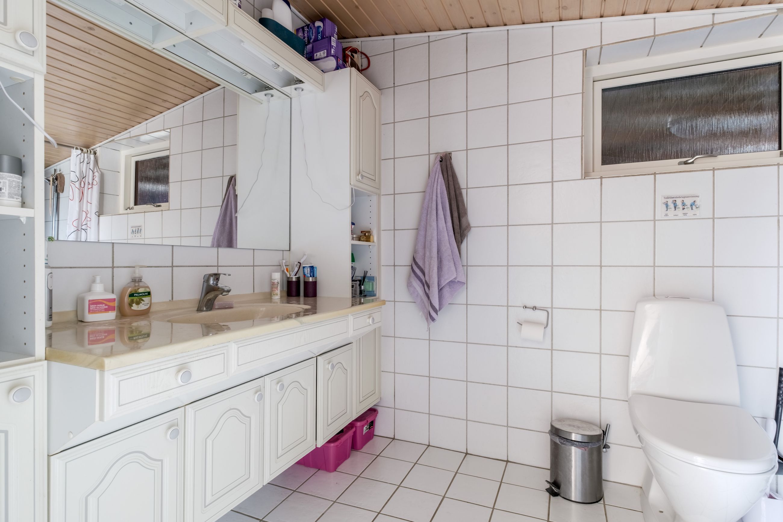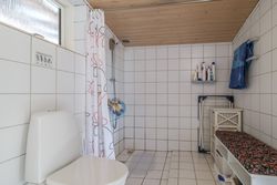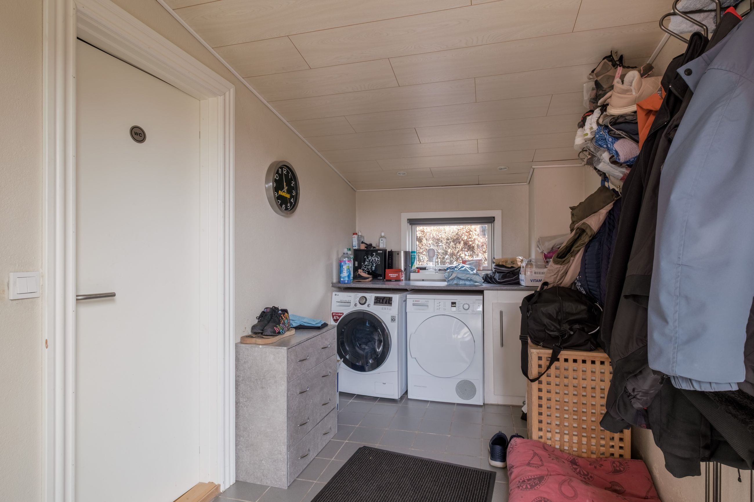 Indendørs inviteres du velkommen i en entré der også fungerer som praktisk bryggers og giver adgang til husets badeværelse.