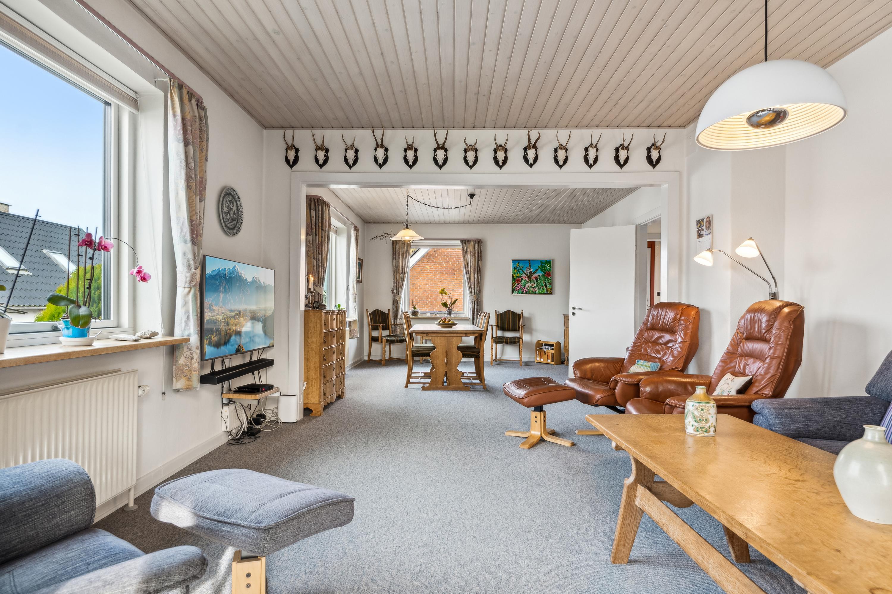 Nord for Silkeborg i den hyggelige landsby, Serup, ligger denne villa med 194 etagemeter, som fordeler sig ligeligt mellem stueplan og den anvendelige kælder. Der hører en god indkørsel til og en garage med plads til to biler.