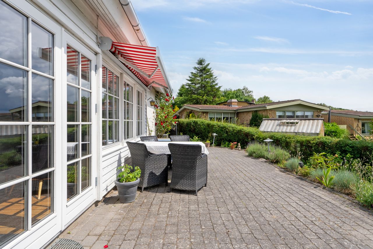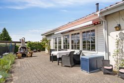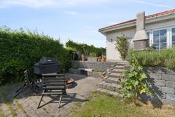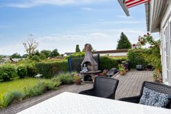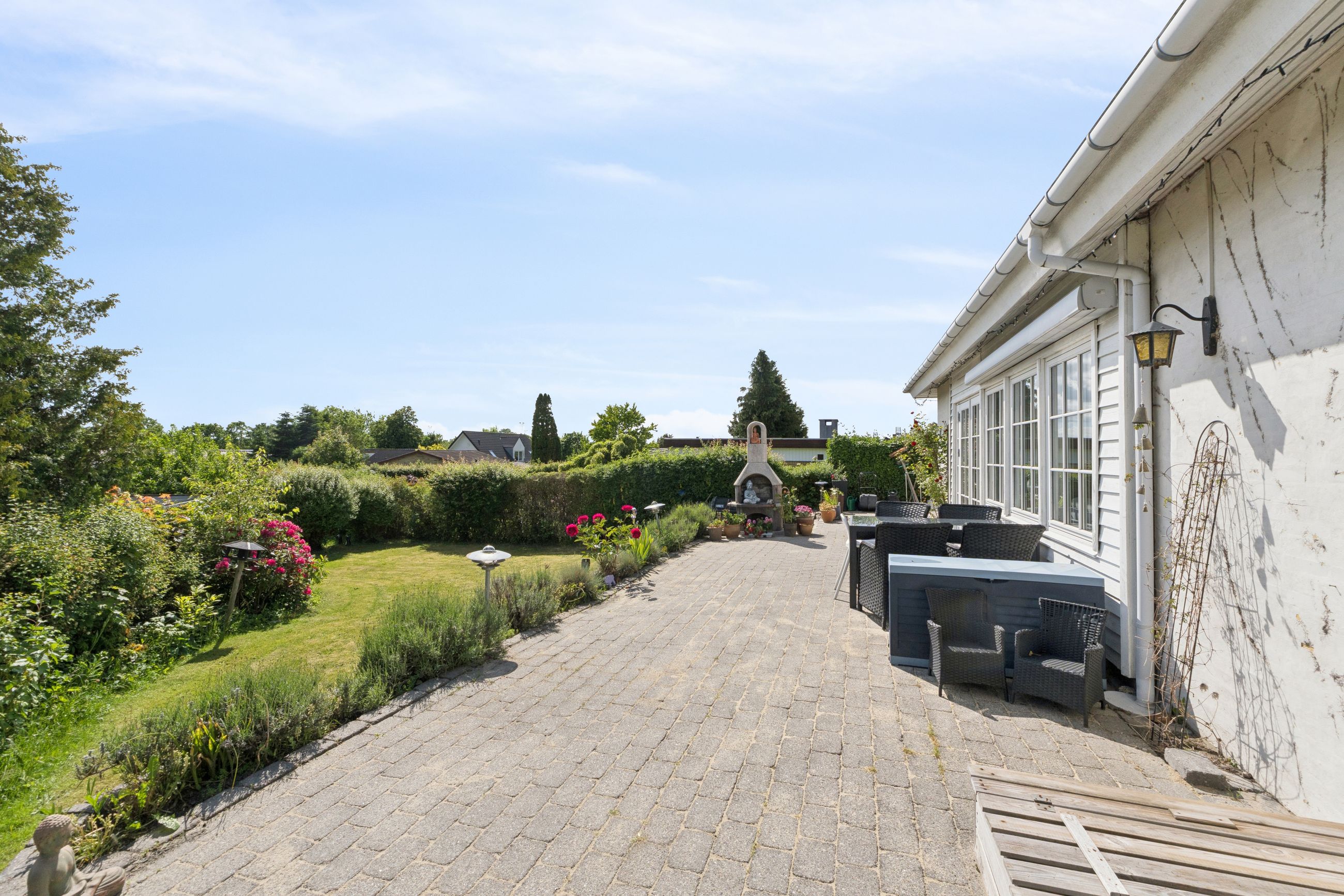 Den lukkede og velplejede have er omkranset af en tæt hæk, som skaber en tryg og privat atmosfære. Haven rummer flere skønne terrasser, herunder en stor, hævet sydvendt terrasse, hvorfra I kan nyde en dejlig udsigt udover området. De smukke beplantninger giver en grøn oase, ideel til både afslapning og leg.