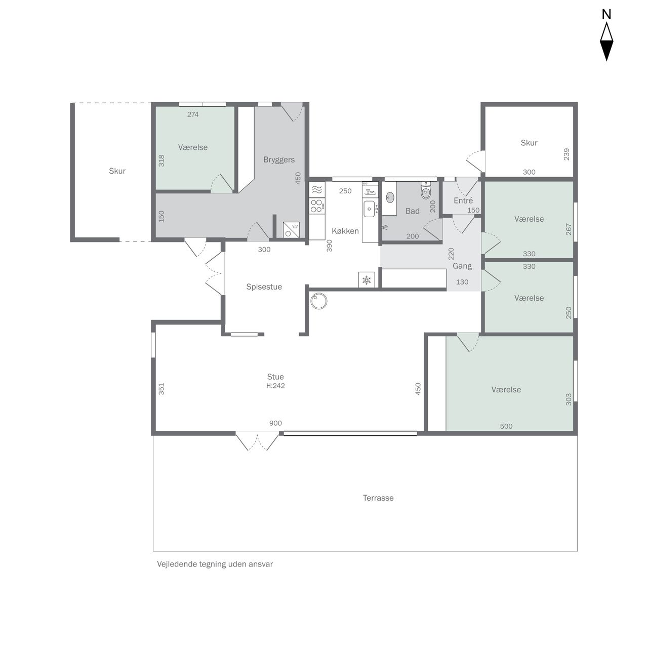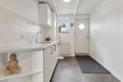Villaen er særdeles praktisk indrettet med blandt andet et rummeligt bryggers, hvor der er plads til vaskefaciliteter og opbevaring.