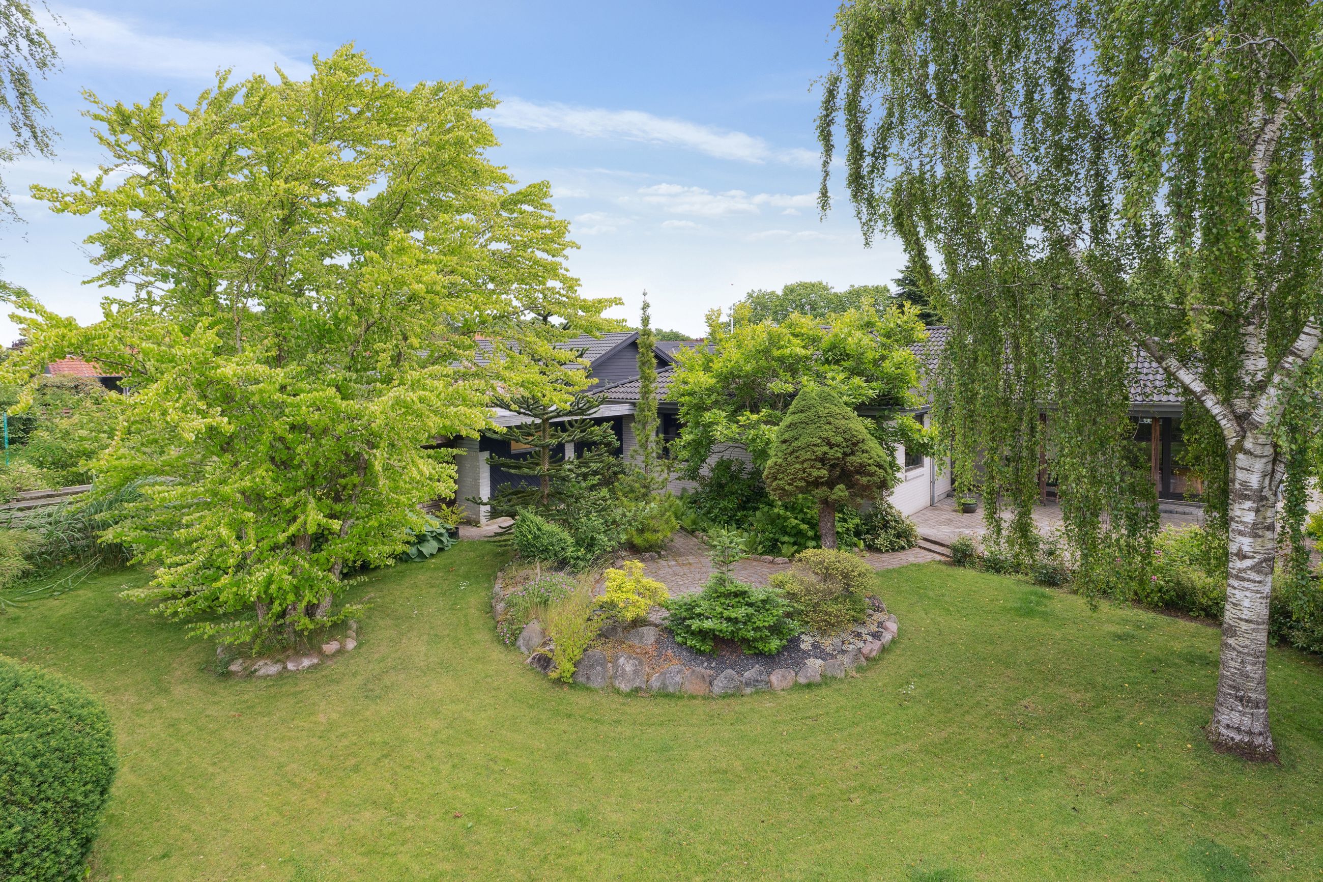 Denne charmerende villa, opført i 1971 og moderniseret i 2001, ligger på en 904 m2 stor grund og tilbyder en dejlig ugeneret baghave, hvor man kan nyde privatliv og de solrige stunder. Huset er indrettet med masser af plads og funktionelle løsninger, ideelt for både familier og dem, der ønsker et hjem med god rummelighed.