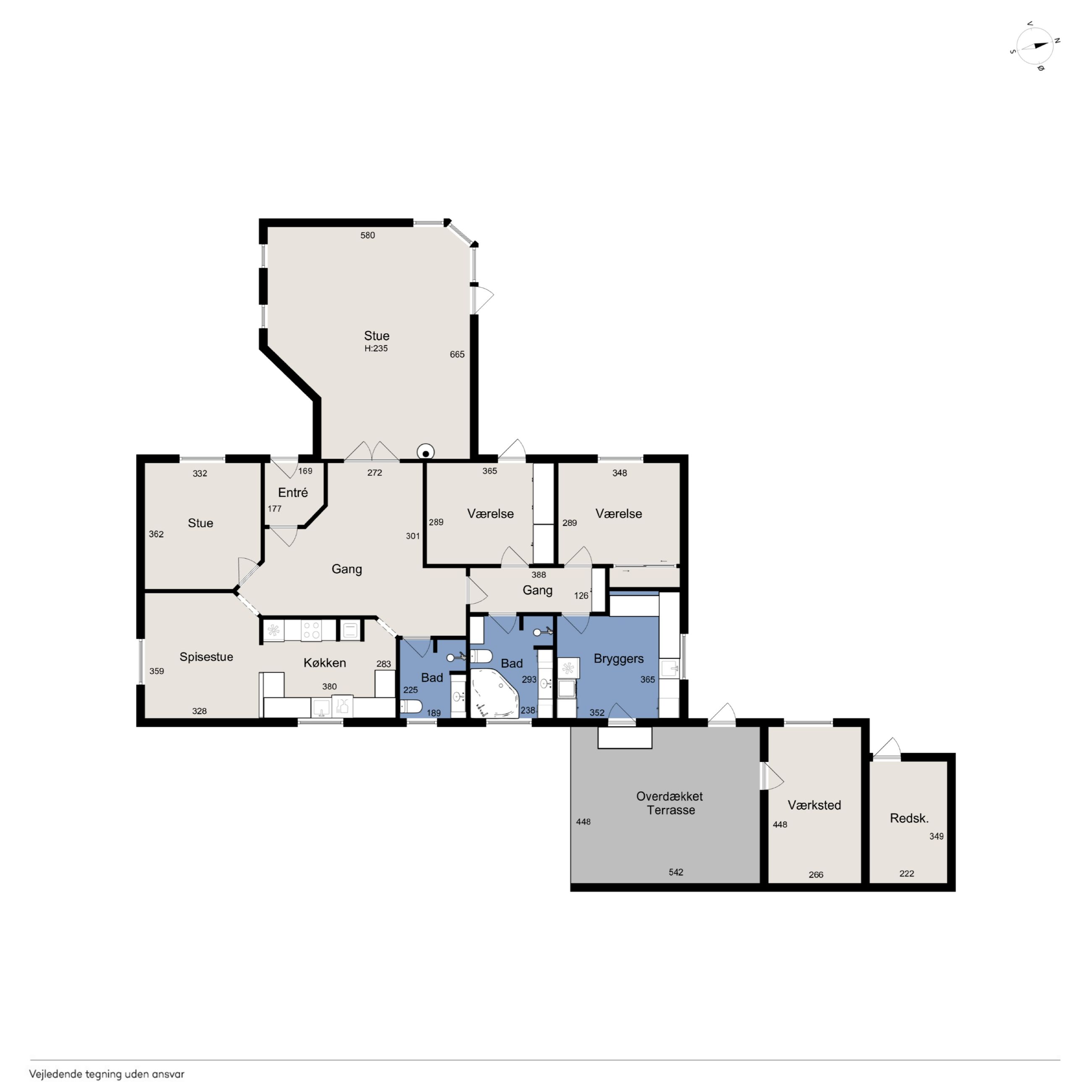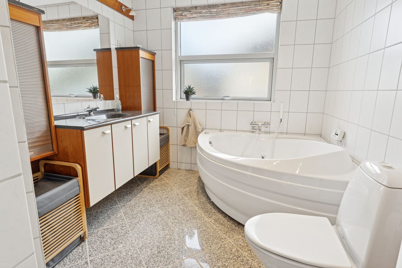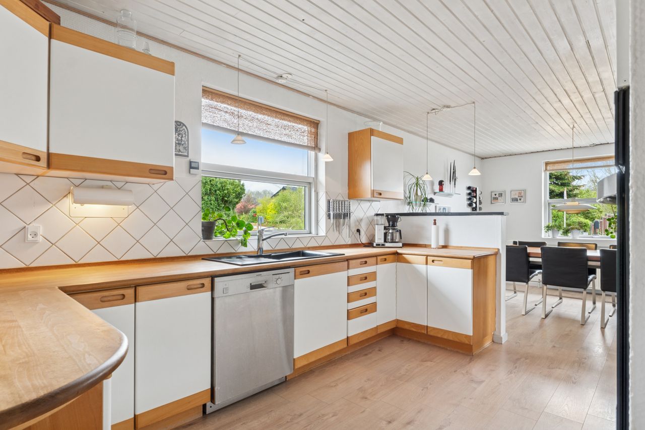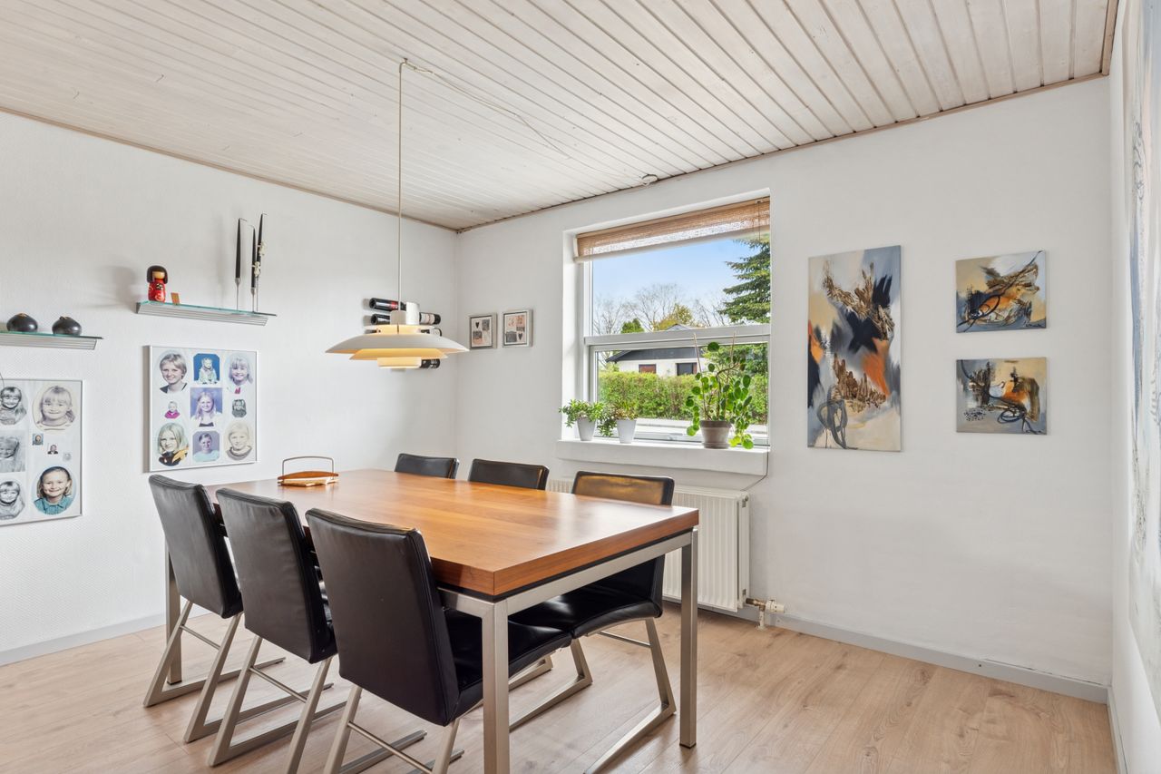 Boligarealet på 167 m2 fordeler sig på 3 værelser, 2 badeværelser, 2 stuer, et funktionelt køkken, samt et praktisk bryggers. De to stuer giver gode muligheder for både opholdsrum og spisestue, mens de store vinduer skaber et lysfyldt og indbydende miljø. Køkkenet er praktisk indrettet og giver gode arbejdsbetingelser, mens bryggerset bidrager med ekstra opbevaringsplads og funktionalitet. En rigtigt fornuftigt villa med mange muligheder.