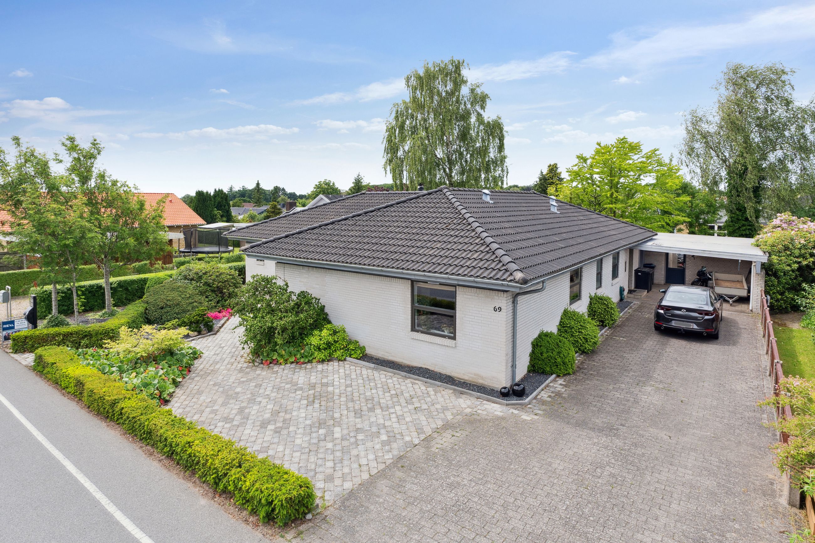 Til boligen er der en 30 m2 carport, som tilbyder god plads til bilen og opbevaring.