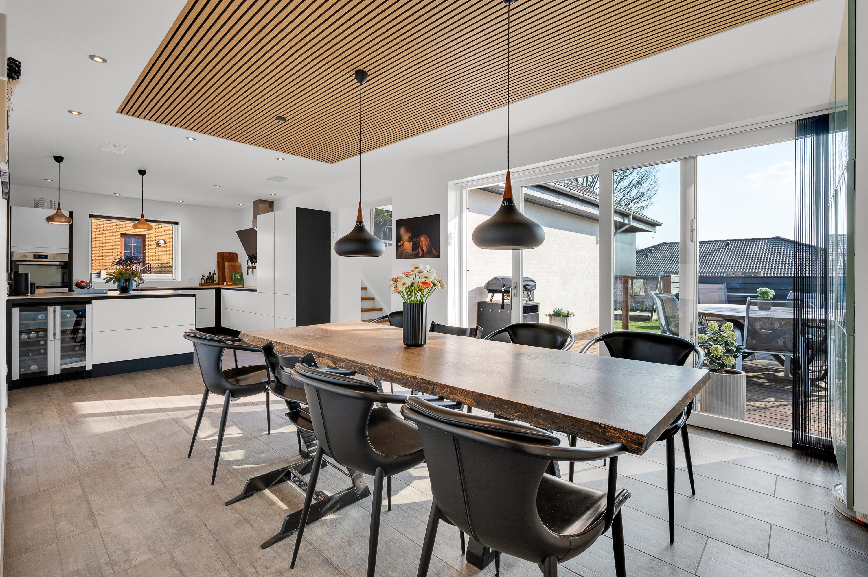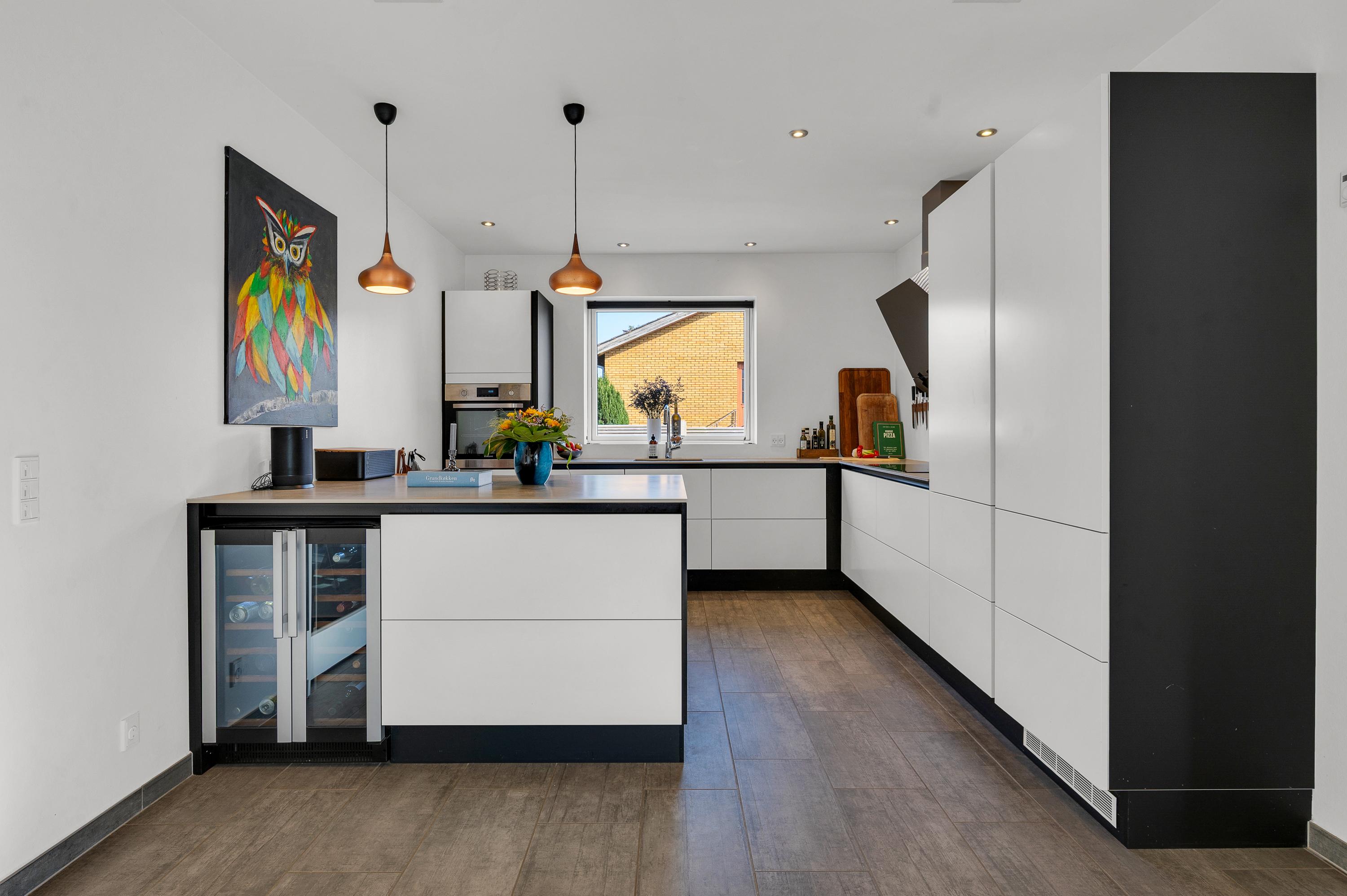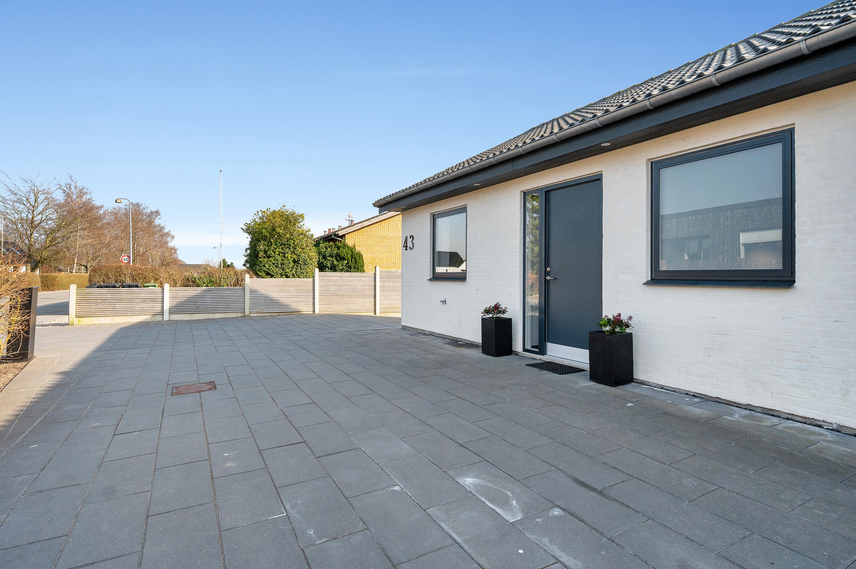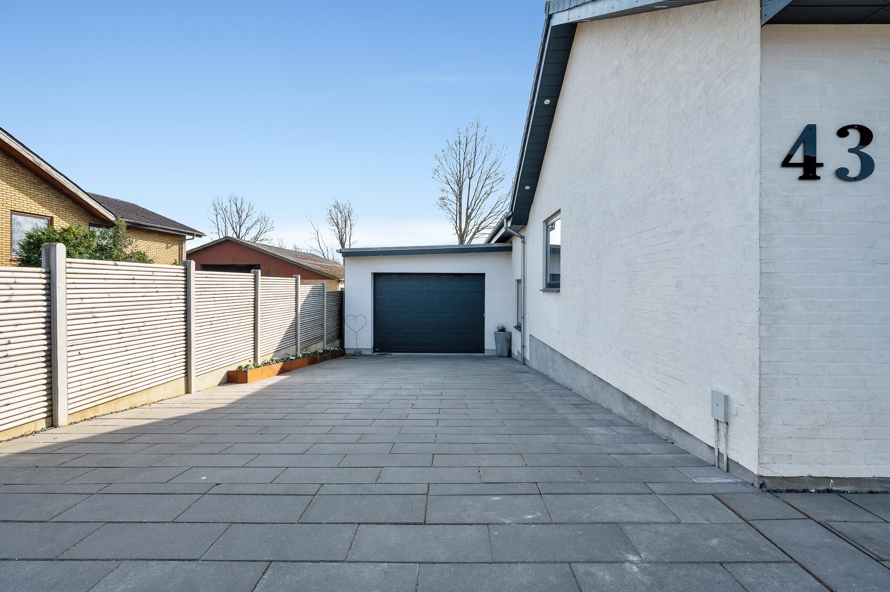 Velkommen til Funder Kirkevej 43 i Funder Kirkeby. Her er en imponerende og totalrenoveret ejendom, hvor kvalitet og æstetik går hånd i hånd. Boligen er opført i flere niveauer, hvilket skaber en dynamisk og spændende rumoplevelse. De rummelige værelser, de to badeværelser og det velindrettede