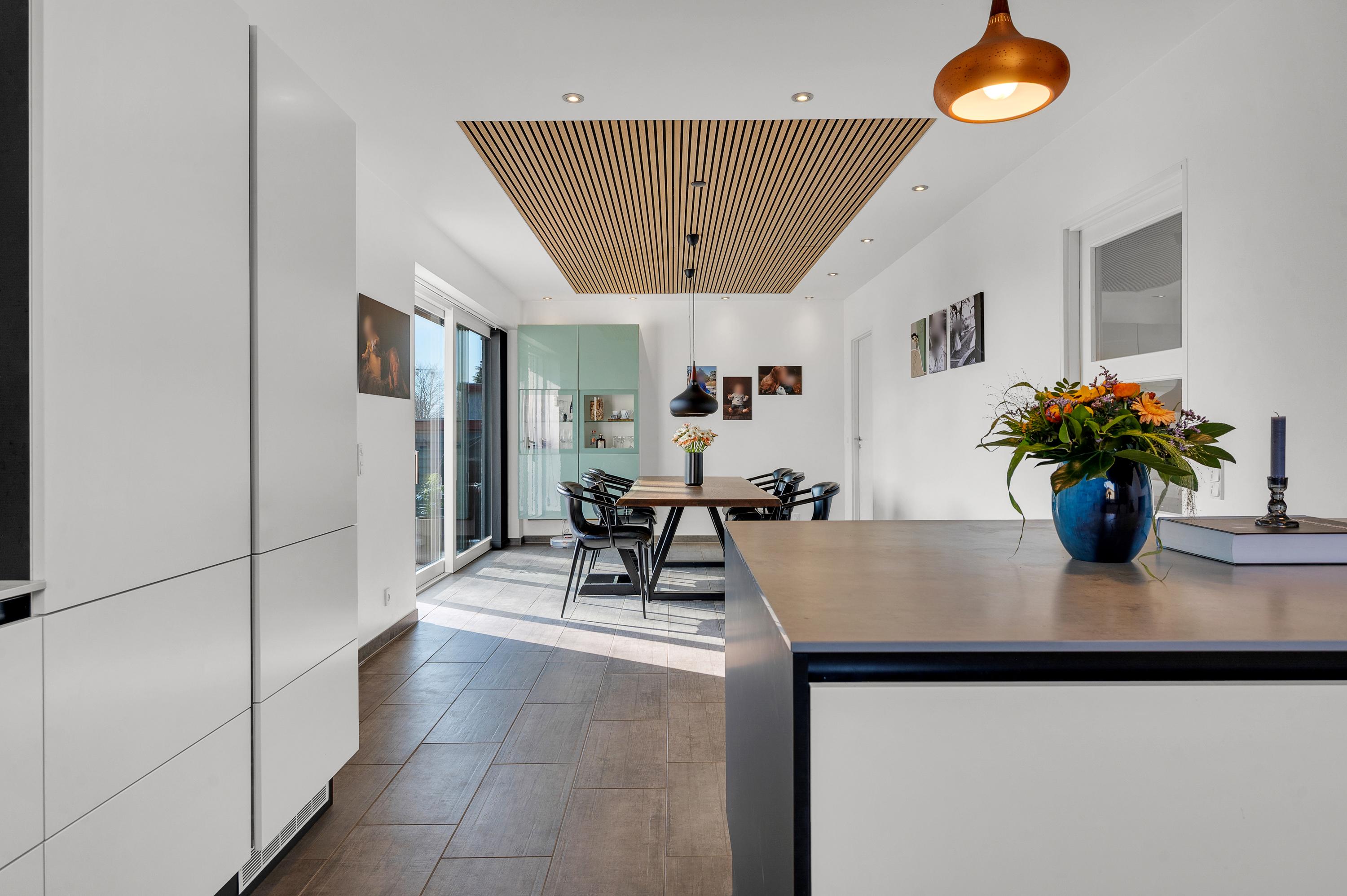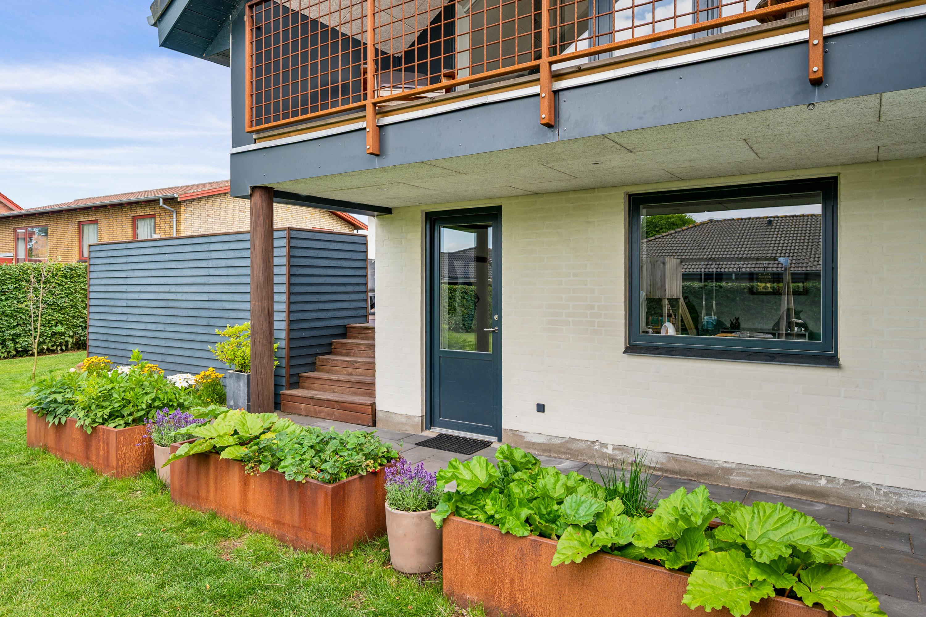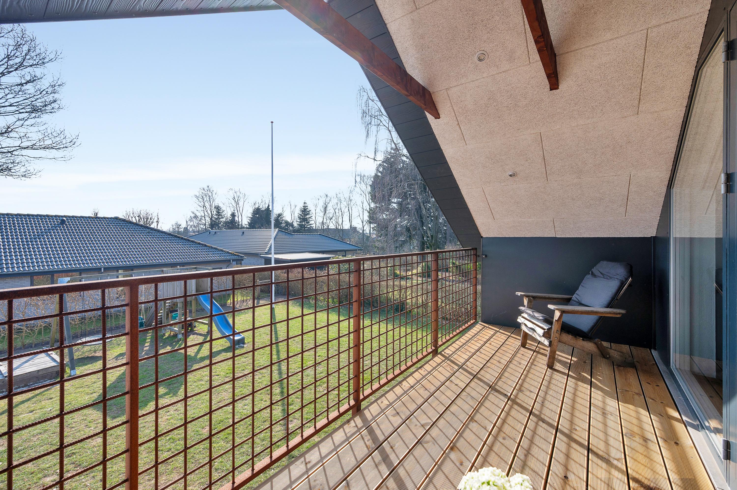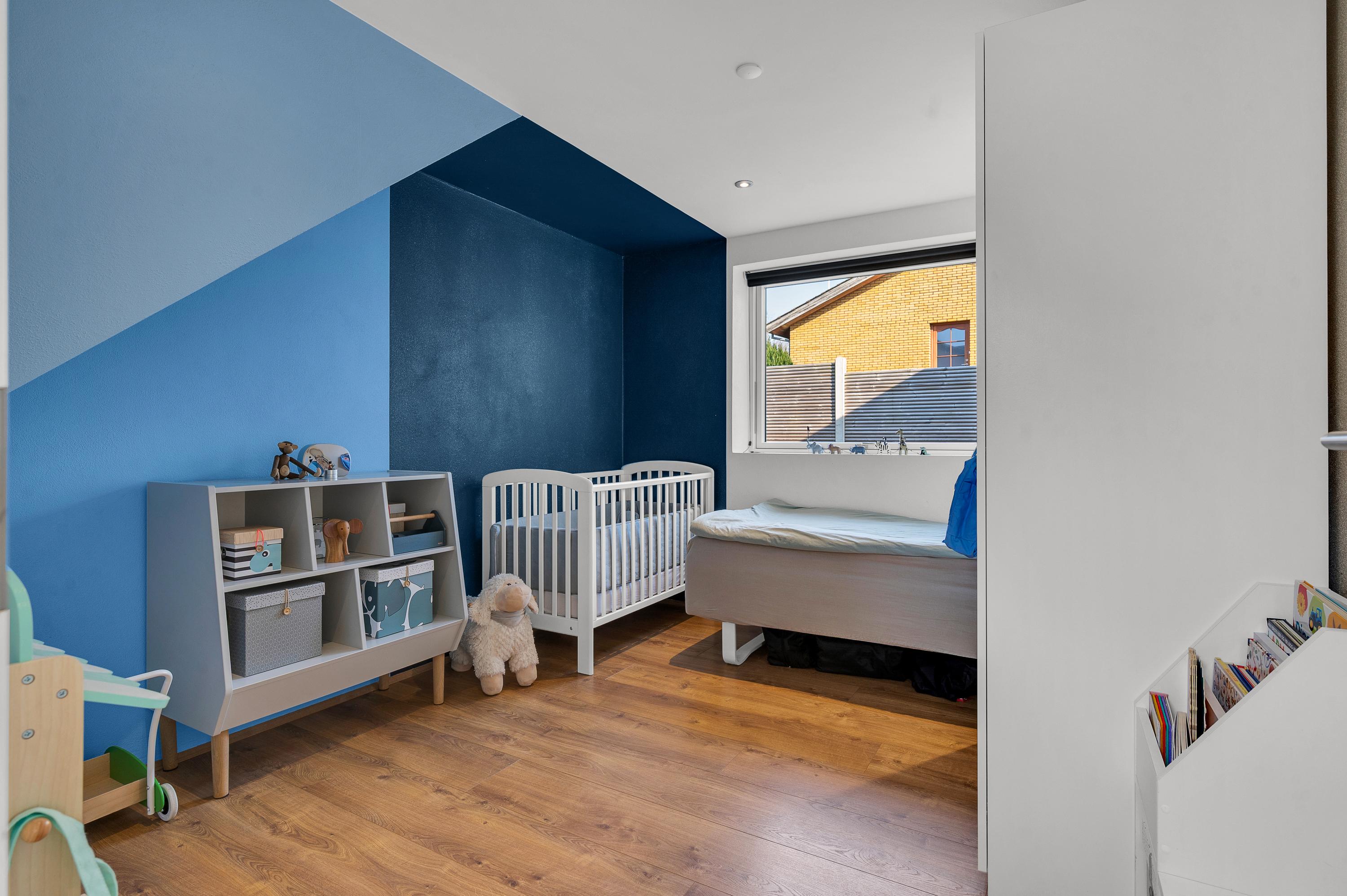 Velkommen til Funder Kirkevej 43 i Funder Kirkeby. Her er en imponerende og totalrenoveret ejendom, hvor kvalitet og æstetik går hånd i hånd. Boligen er opført i flere niveauer, hvilket skaber en dynamisk og spændende rumoplevelse. De rummelige værelser, de to badeværelser og det velindrettede