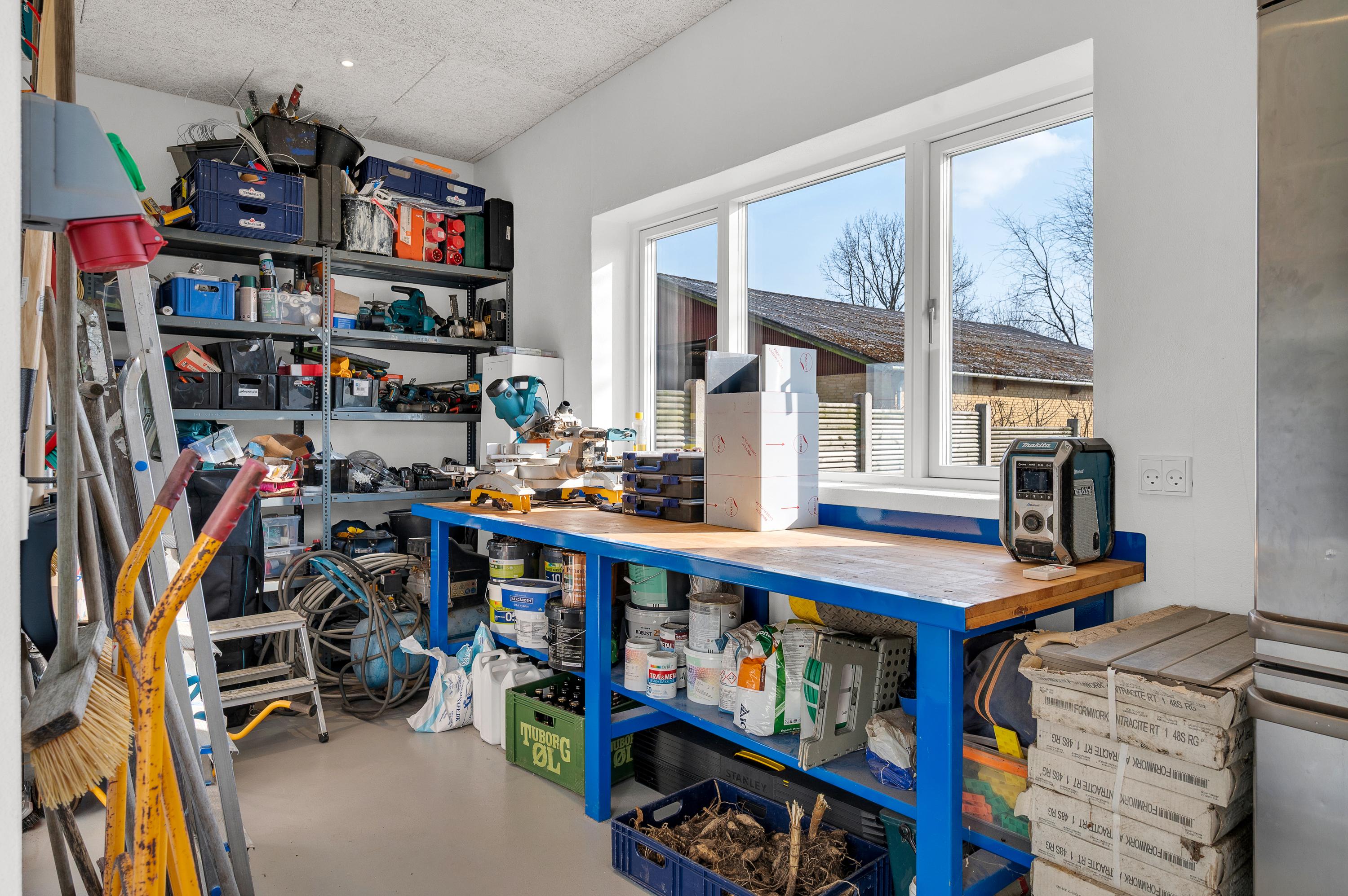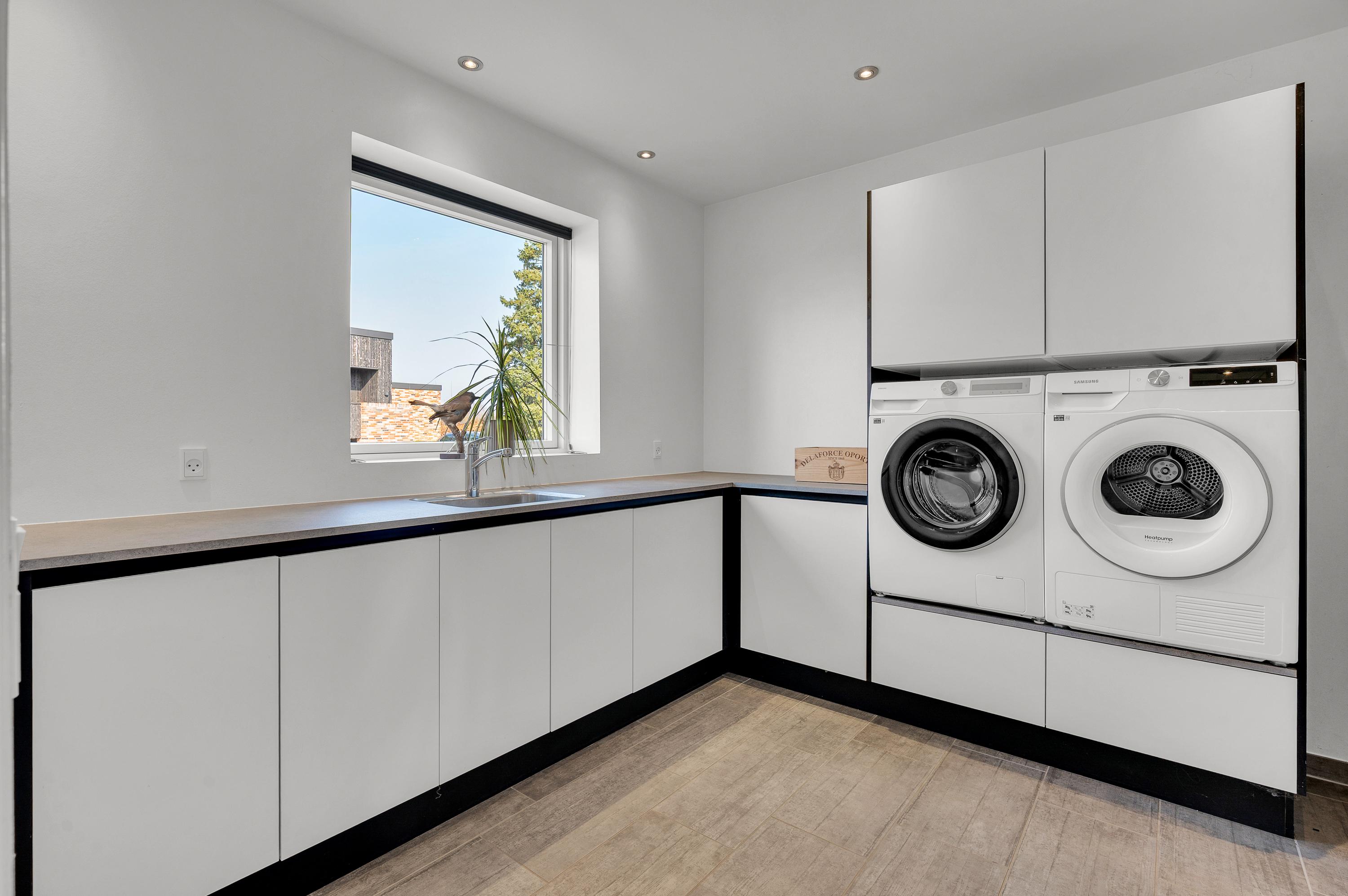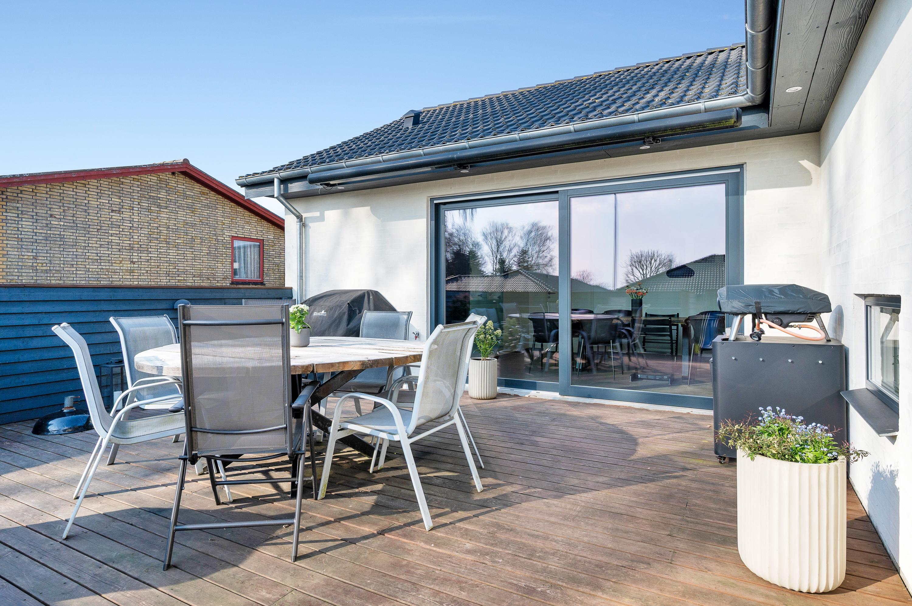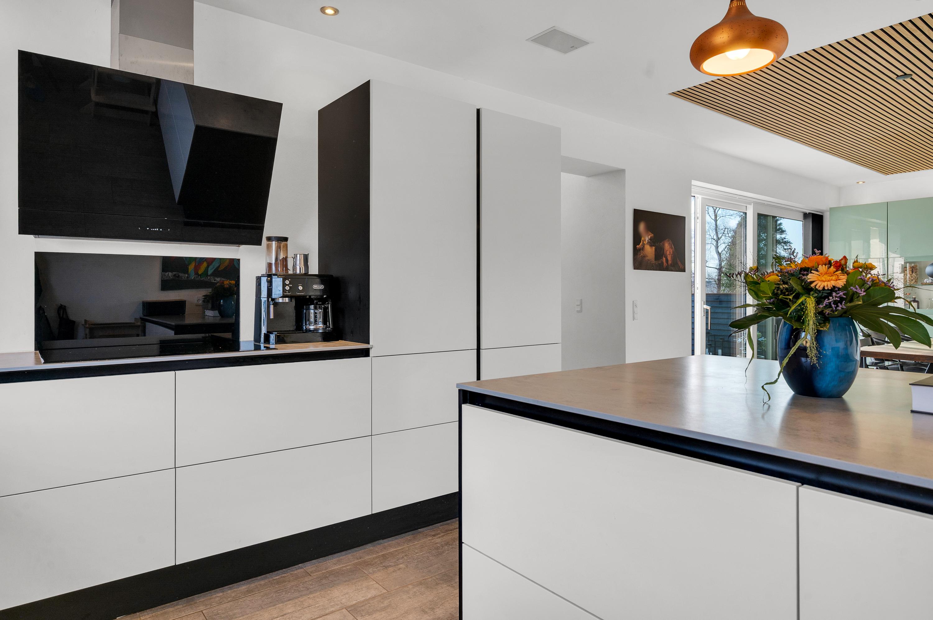 Velkommen til Funder Kirkevej 43 i Funder Kirkeby. Her er en imponerende og totalrenoveret ejendom, hvor kvalitet og æstetik går hånd i hånd. Boligen er opført i flere niveauer, hvilket skaber en dynamisk og spændende rumoplevelse. De rummelige værelser, de to badeværelser og det velindrettede