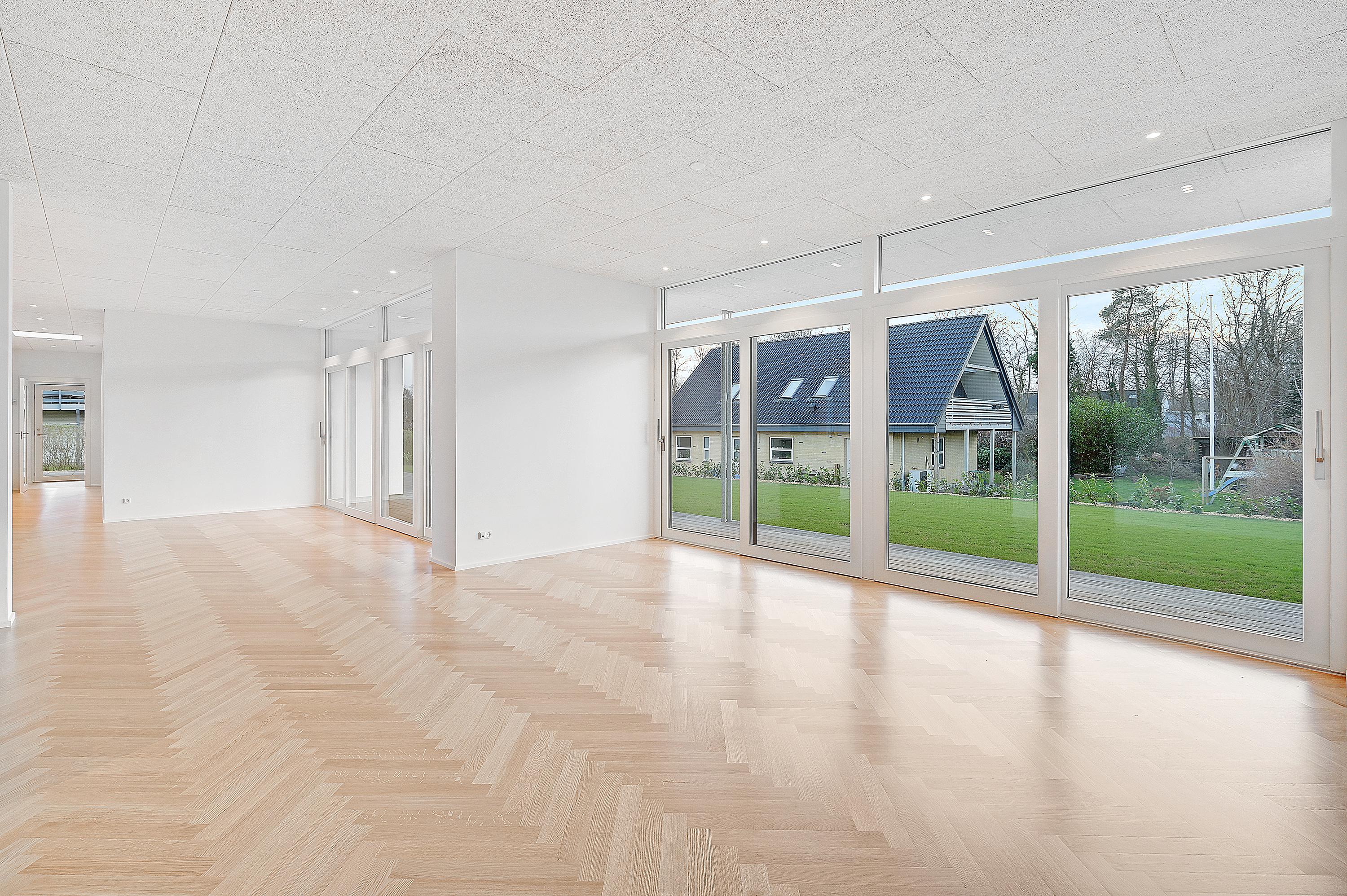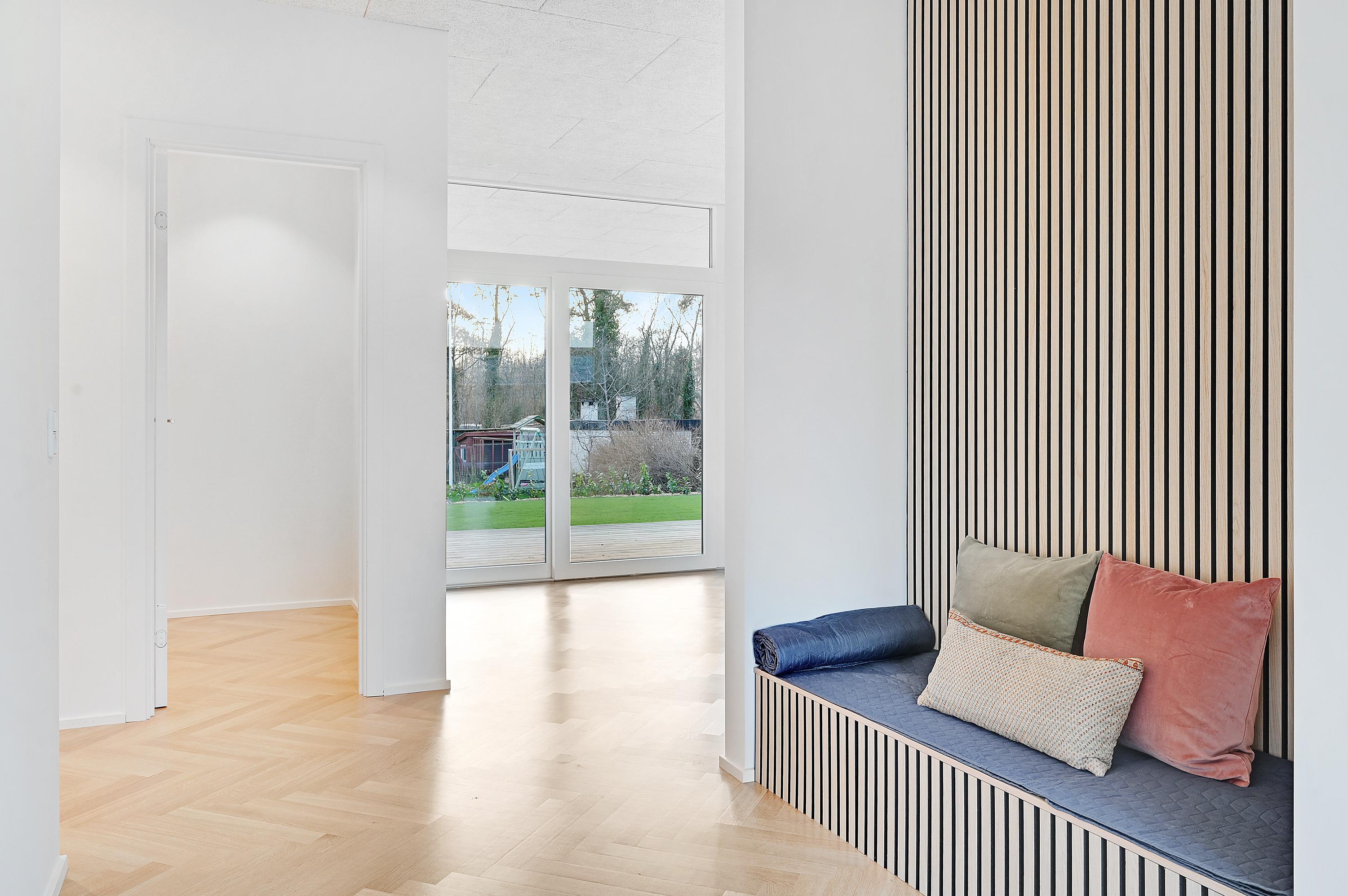 Villaen er skabt med tanke på den moderne familie og rummer en velindrettet planløsning med to separate afdelinger: en