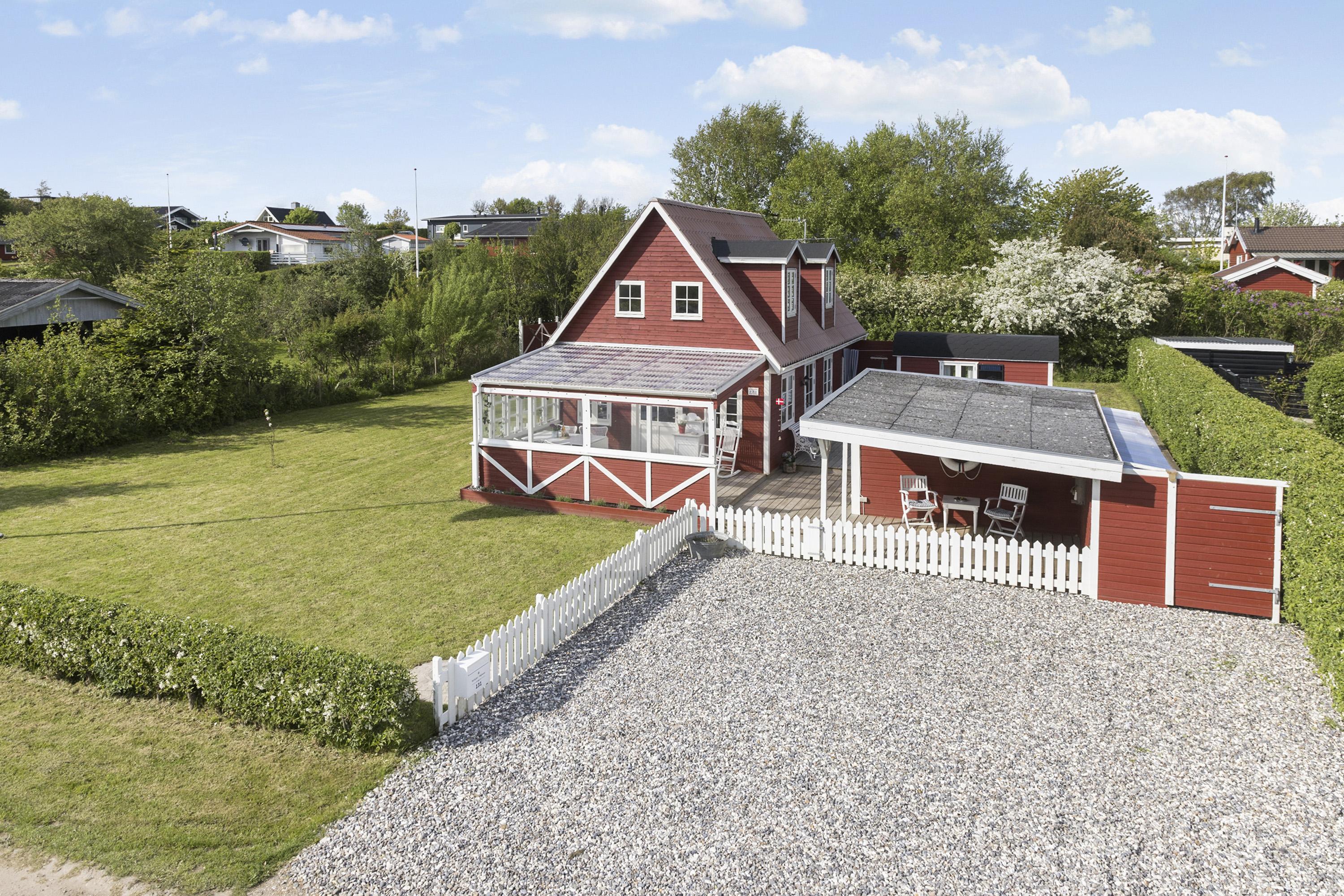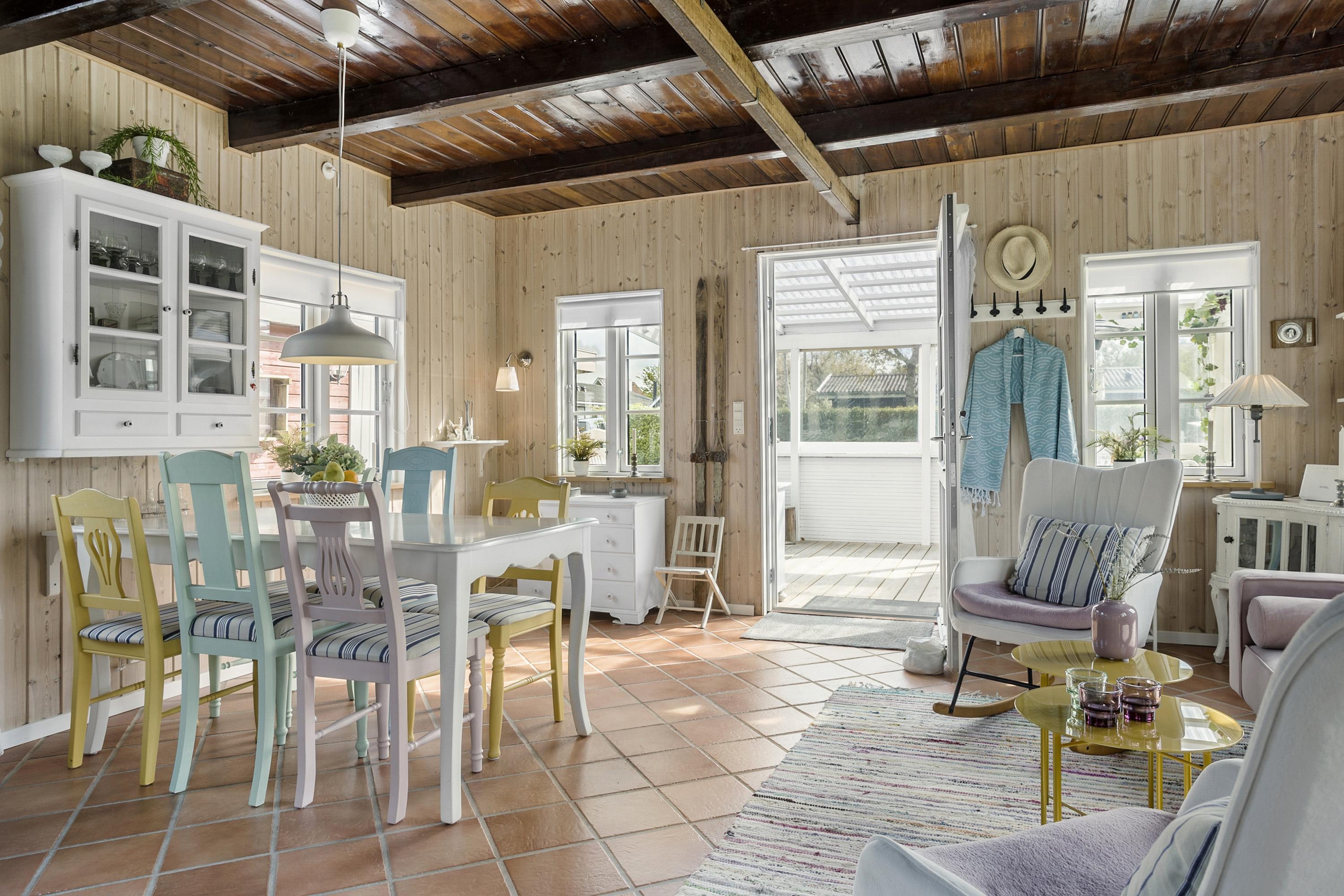På Stranddalen 131 i Eskov Strandpark venter en sommerhusidyl, der næsten tager pusten fra én. Med sin charmerende facade og gennemførte indretning, bliver det svært ikke at forelske sig i dette unikke fristed. Her kan du slappe af i hængekøjen, nyde din morgenkaffe på terrassen eller udfordre