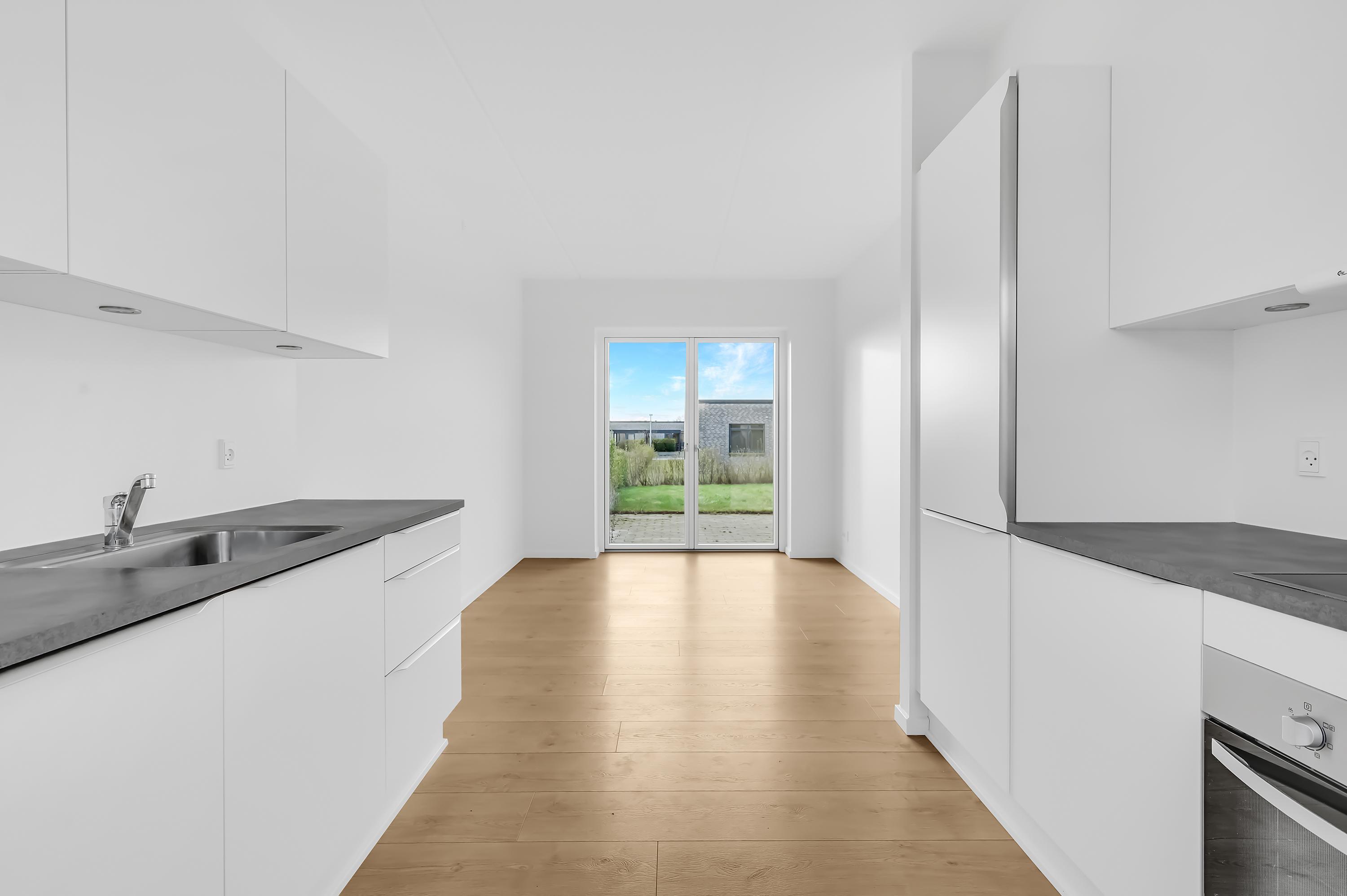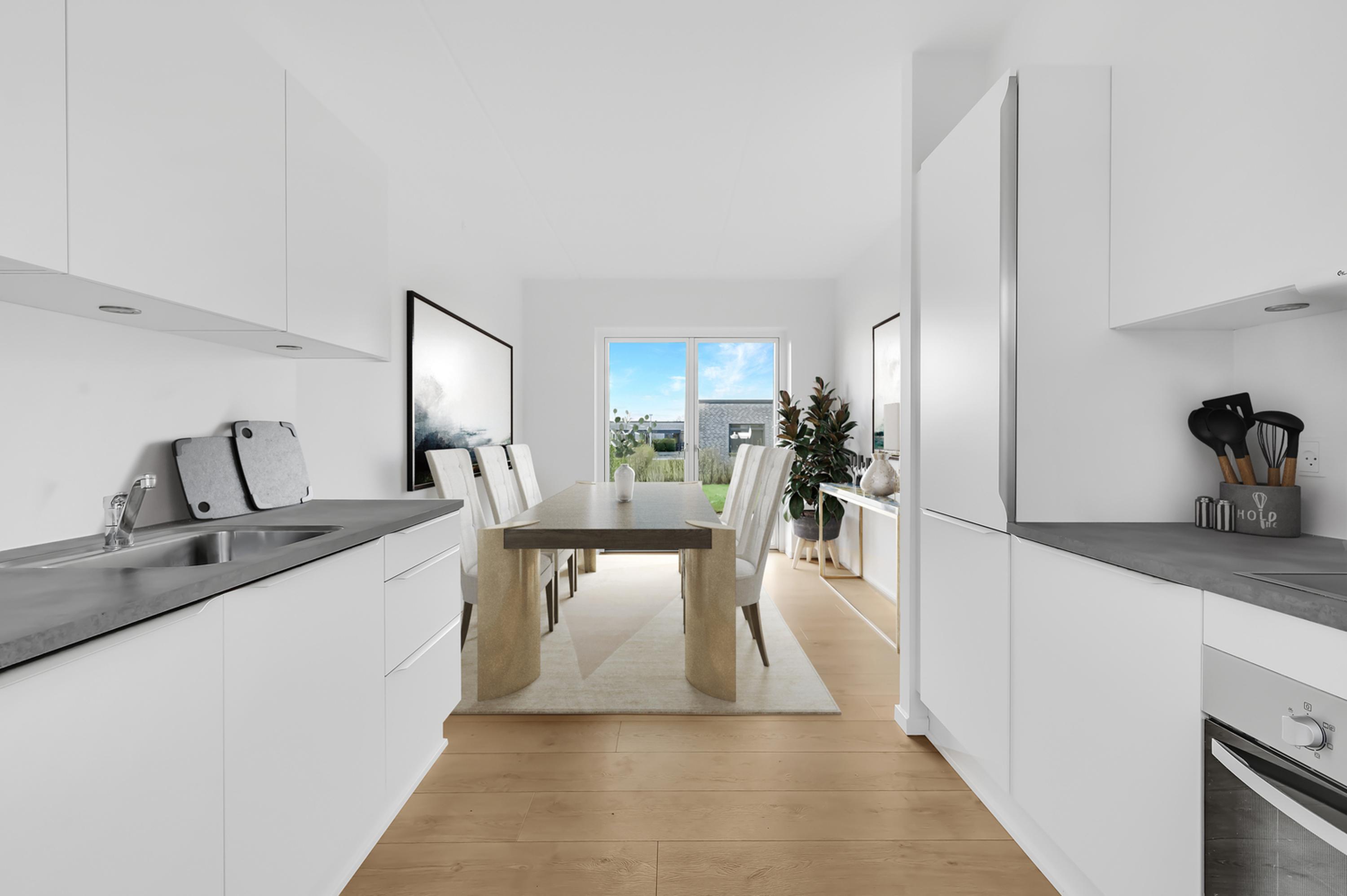 Velkommen til dette moderne og indflytningsklare rækkehus fra 2017, beliggende i det eftertragtede Eriksborg-område ved Gødvad. Her får du et hjem, hvor hver eneste kvadratmeter er udnyttet optimalt, og hvor funktionalitet og æstetik går hånd i hånd.