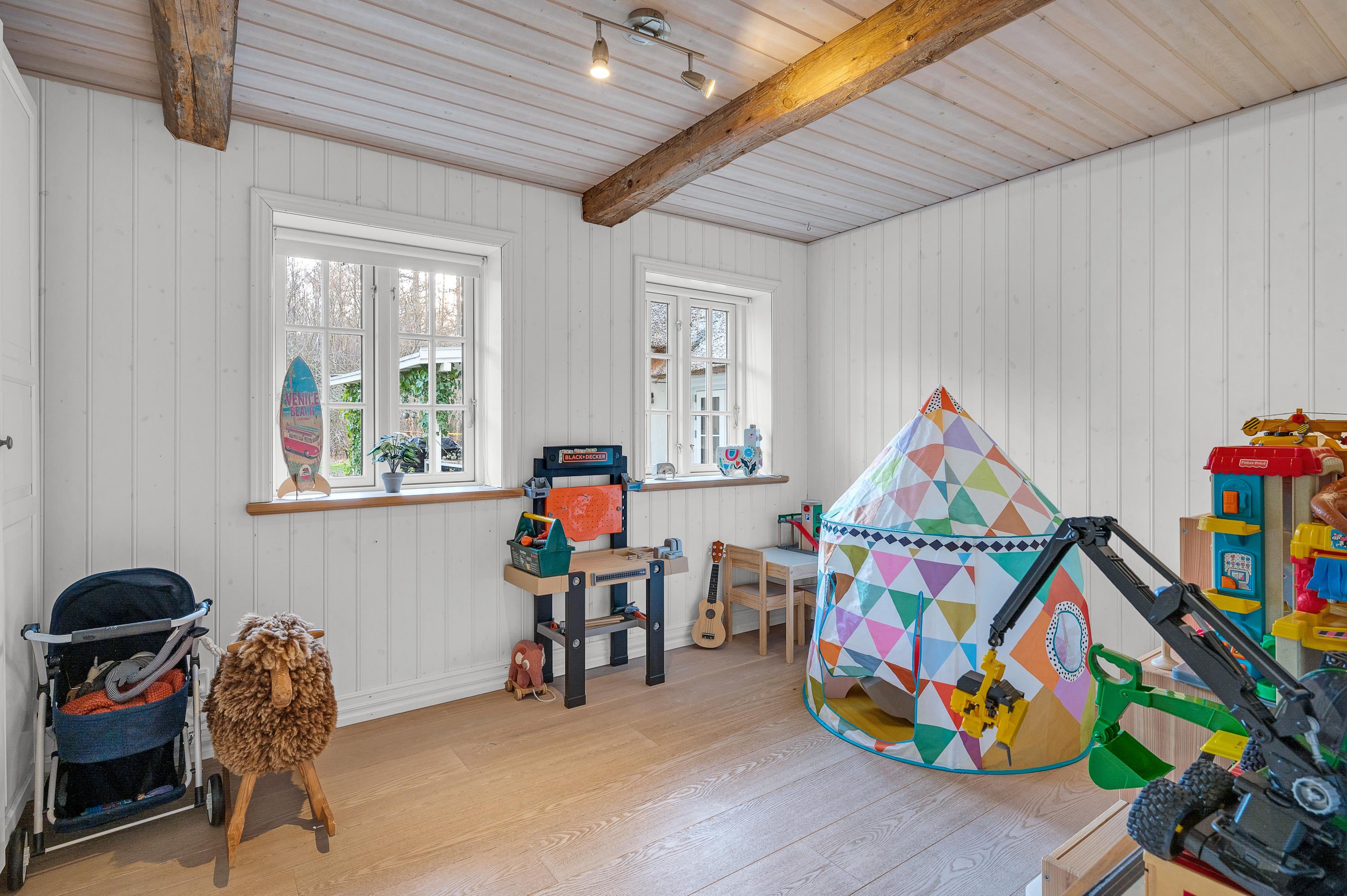 Ejendommen er yderst velholdt og løbende moderniseret. Her får du en sand perle af idyl og