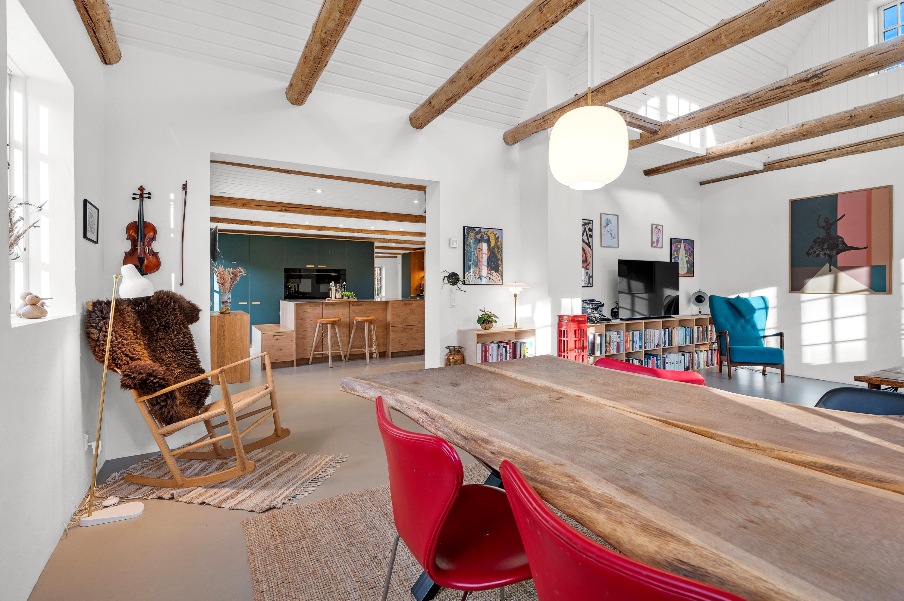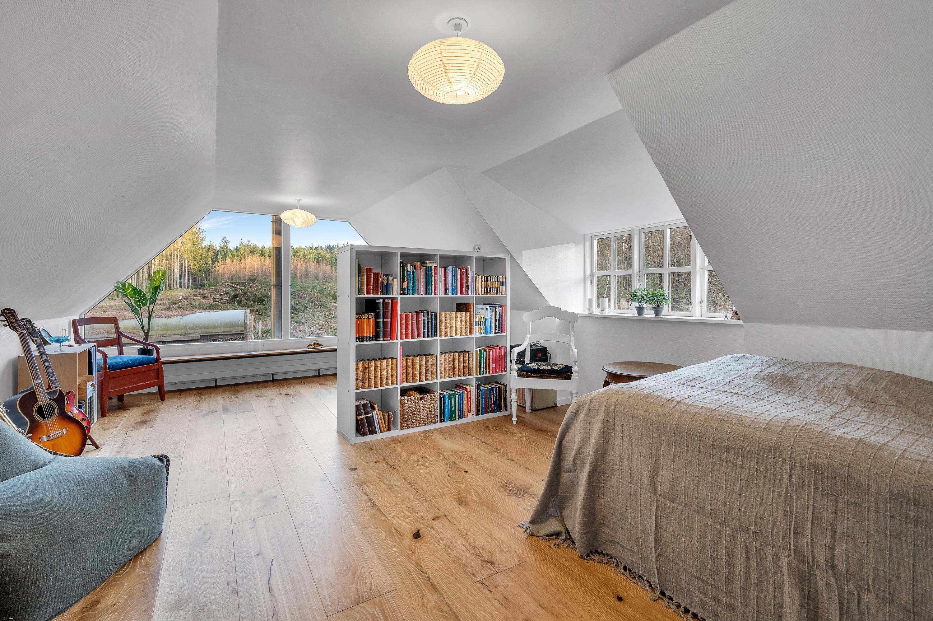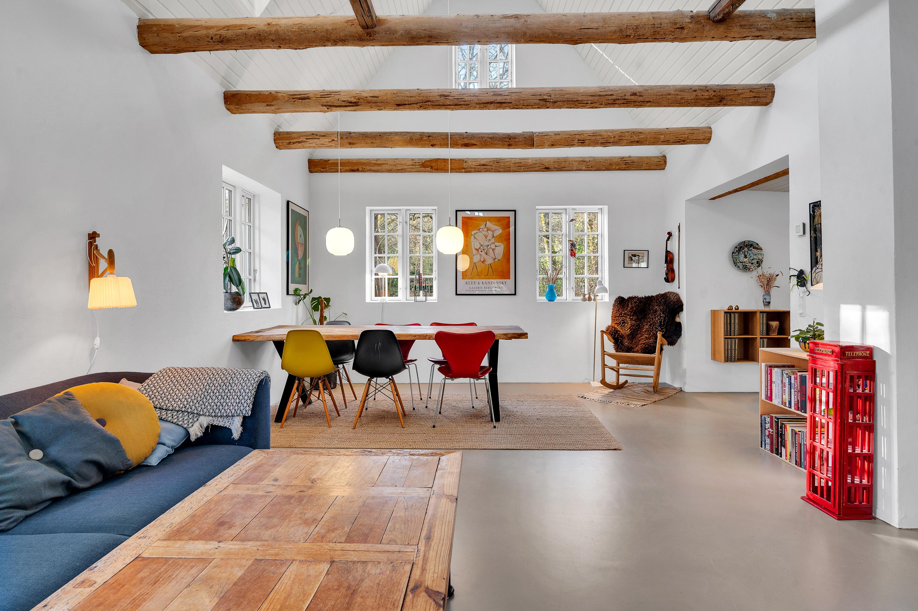På en naturskøn adresse finder du denne helt unikke stråtækte ejendom. Her bor du i idylliske omgivelser med skoven som nærmeste nabo, samtidig med at du har kort afstand til alt, hvad hverdagen kræver.
