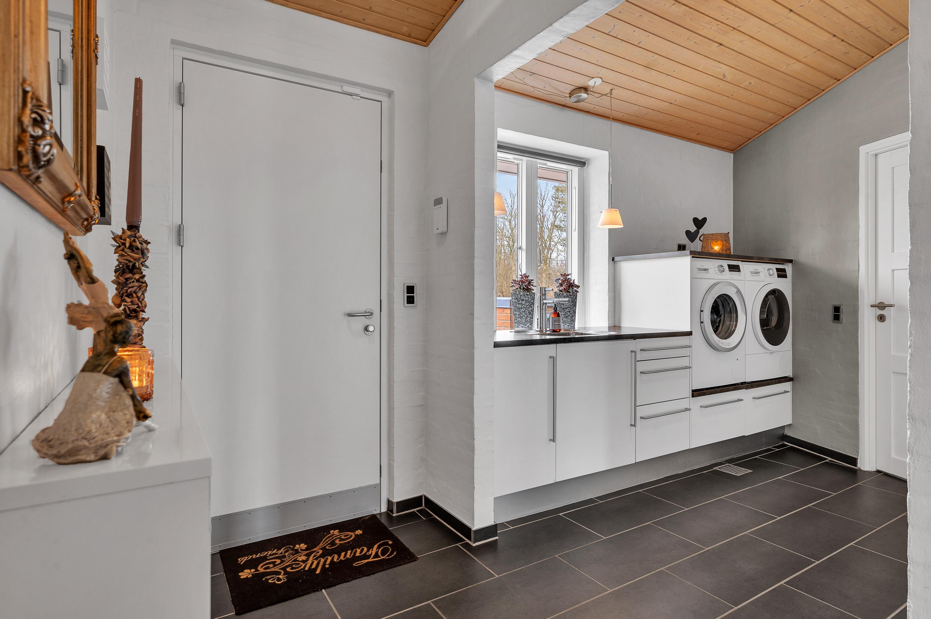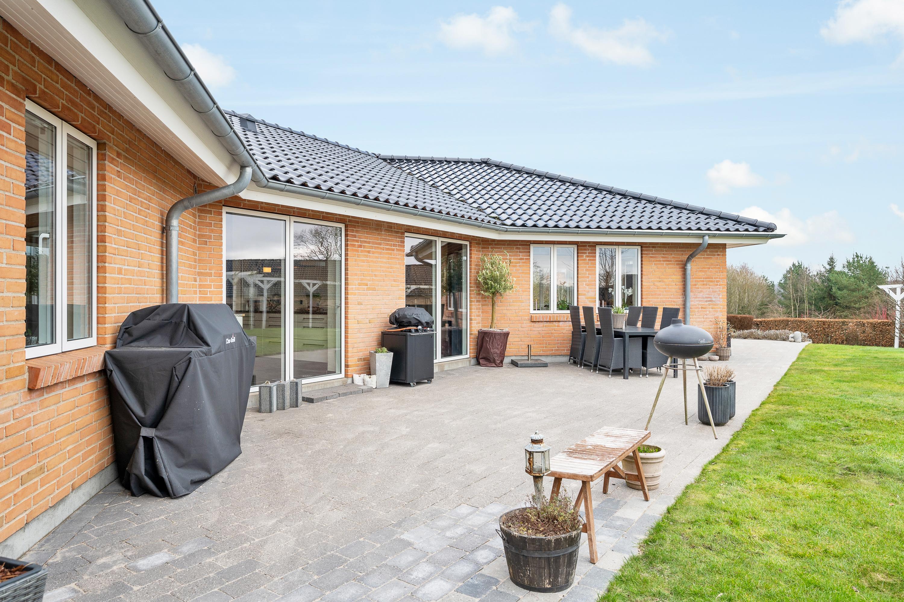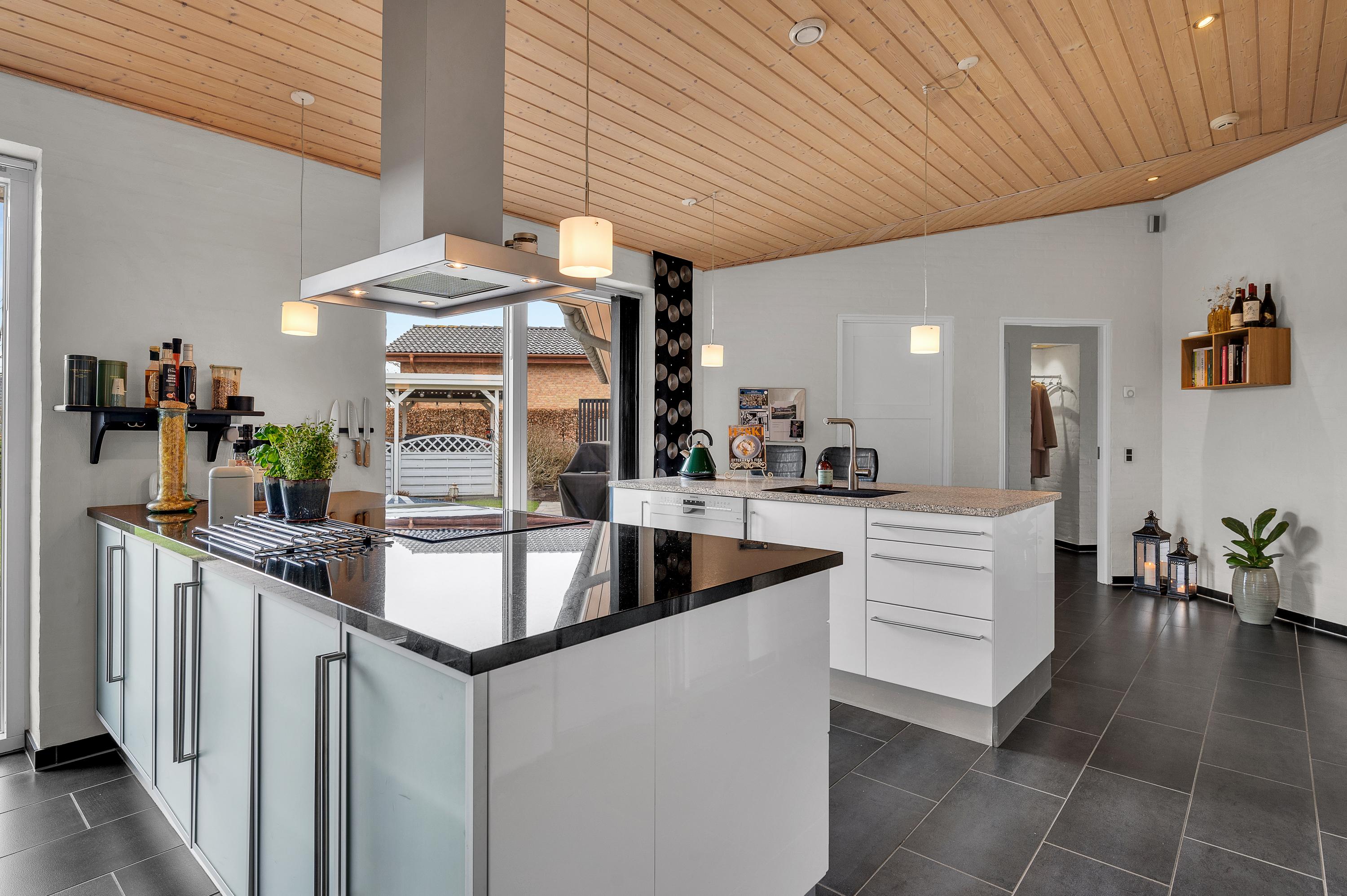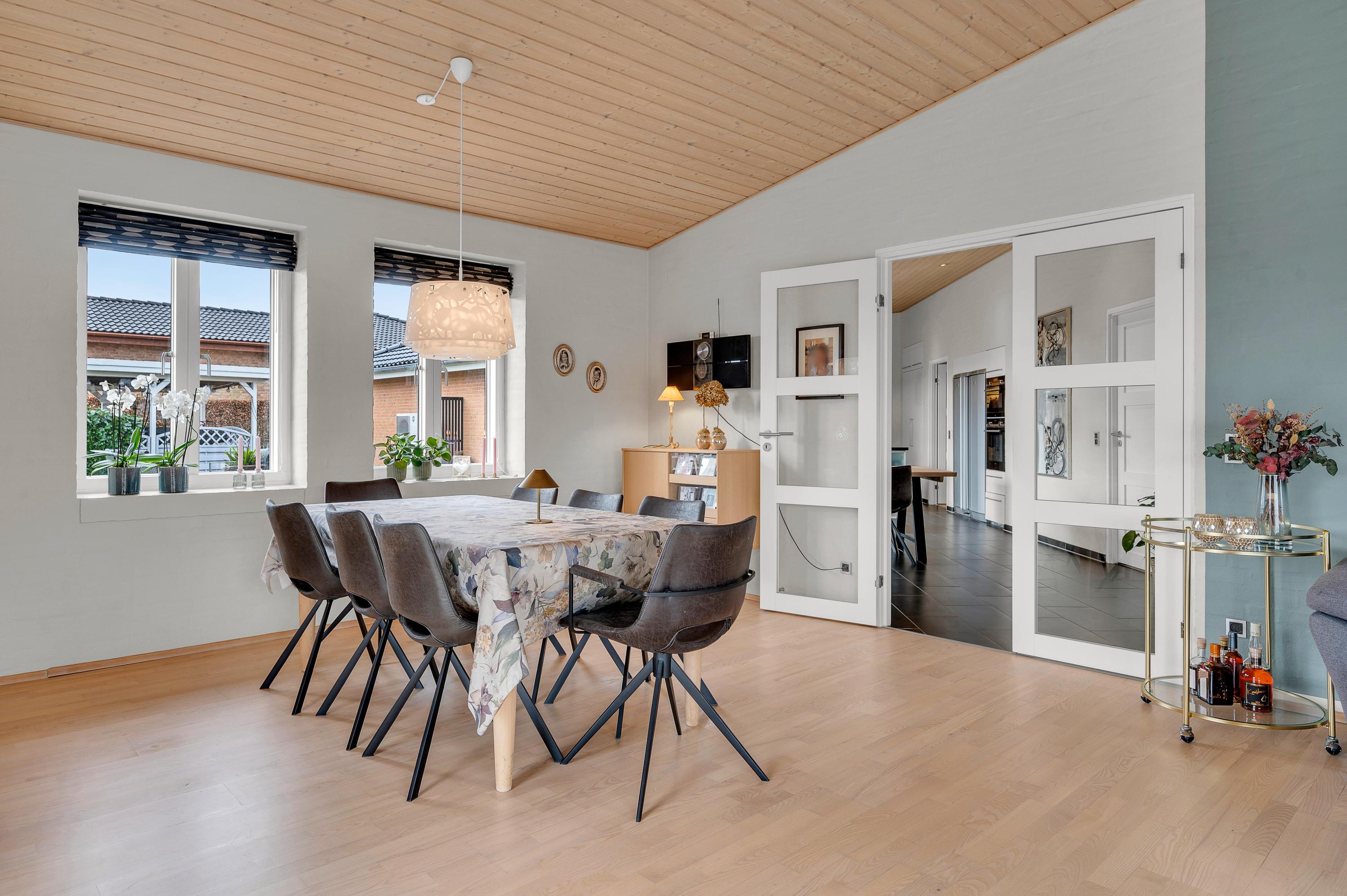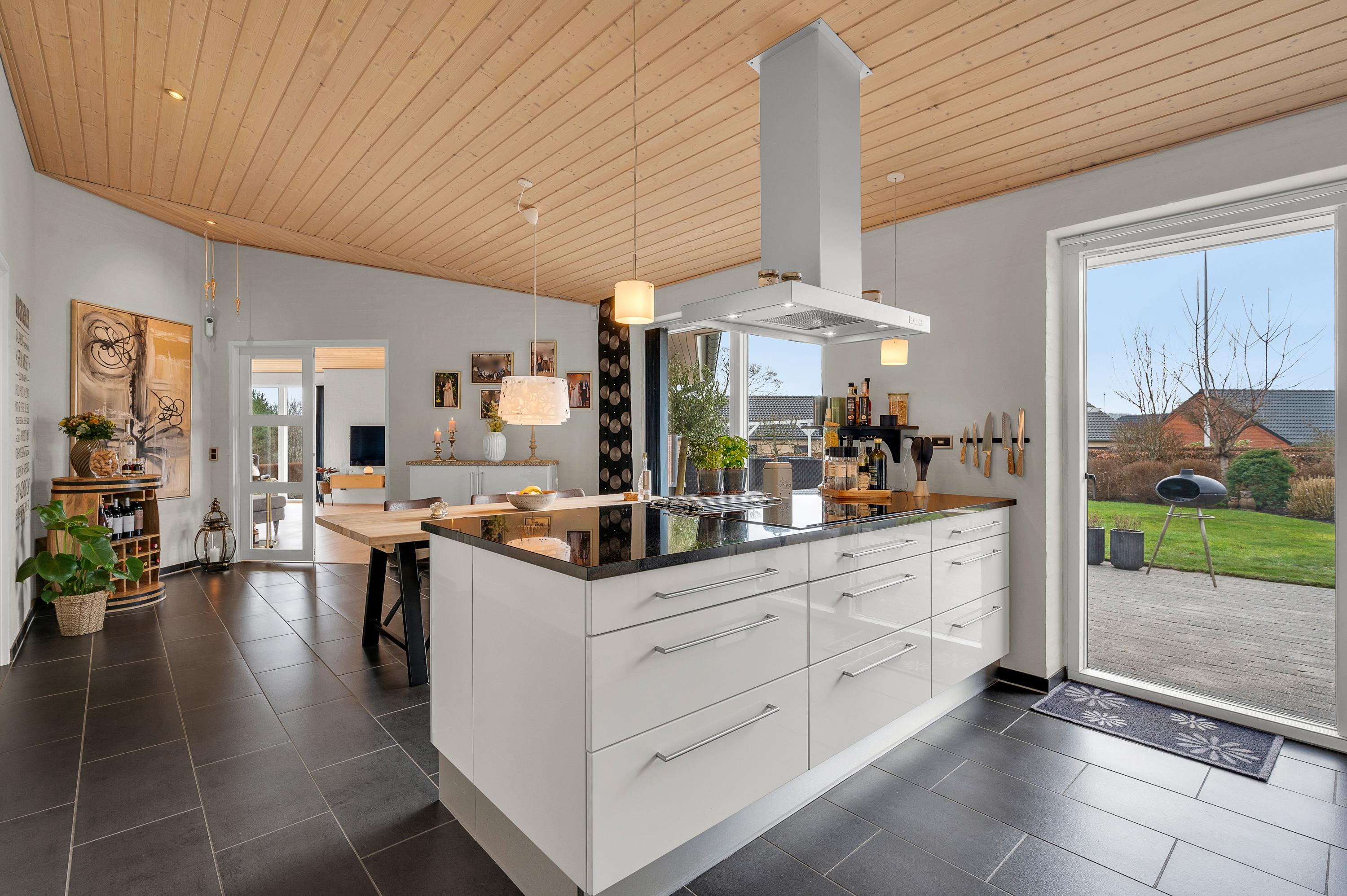 Velkommen til Hjortevej 1 en imponerende, fuldmuret villa opført i 2007, der forener kvalitet, rummelighed og en fantastisk beliggenhed. Med sine 186 m2 i ét plan tilbyder boligen en gennemtænkt planløsning, der imødekommer både fællesskab og privatliv.