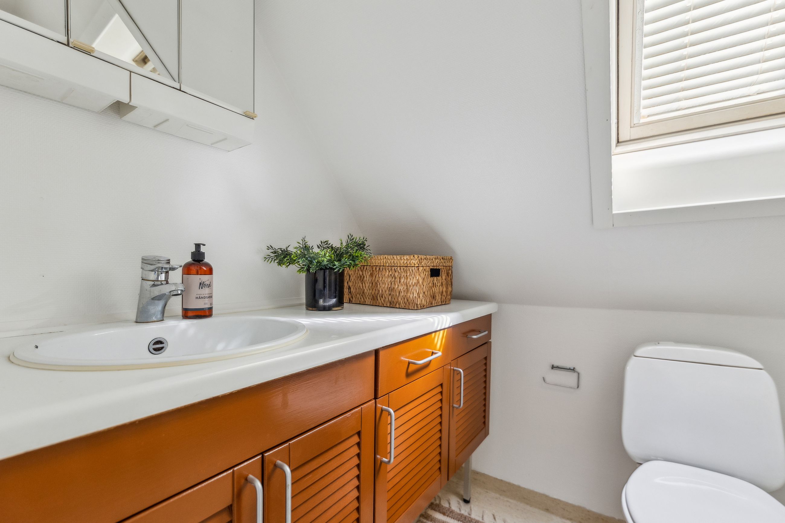 I kælderen gemmer sig endnu et badeværelse, to disponible rum med mange anvendelsesmuligheder samt vaskefaciliteter. Herfra er der direkte udgang til en skøn, overdækket terrasse og en lukket, ugeneret have – ideel til afslapning eller børneleg. Her findes også adgang til både skur og garage, så du har styr på opbevaring og parkering.