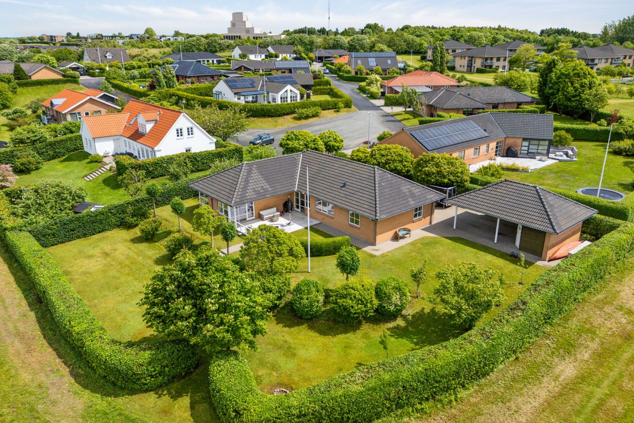 Velkommen til denne indbydende og moderne villa, hvor komfort, kvalitet og beliggenhed går op i en højere enhed. Boligen er ideelt placeret i det eftertragtede Hvinningdal-kvarter i Silkeborg – med en af områdets mest betagende udsigter og kun naboer på to sider, hvilket giver en unik følelse af ro og privatliv.