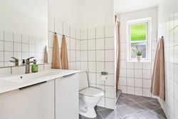 Villaen byder på en genial og funktionel planløsning, der tilgodeser både familielivet og privatlivets fred. I den ene ende af boligen findes en skøn forældreafdeling med stort soveværelse, walk-in-closet eller babyvær. og eget badeværelse. I den modsatte ende ligger børneafdelingen med rummelige værelser, eget badeværelse og mulighed for leg og samvær – perfekt til familier med børn i alle aldre.