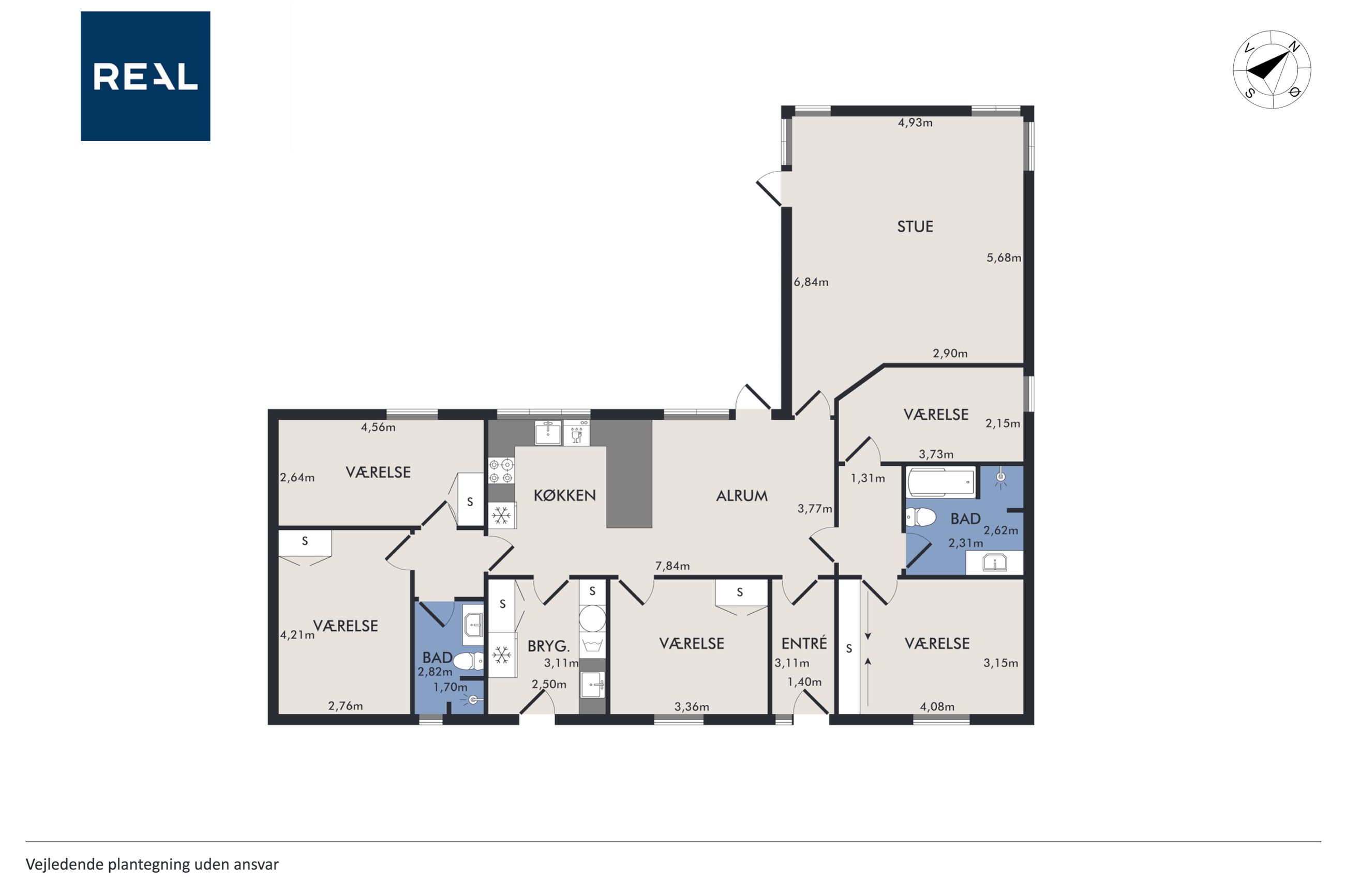 Genial og funktionel planløsning med separat forældre- og børneafdeling