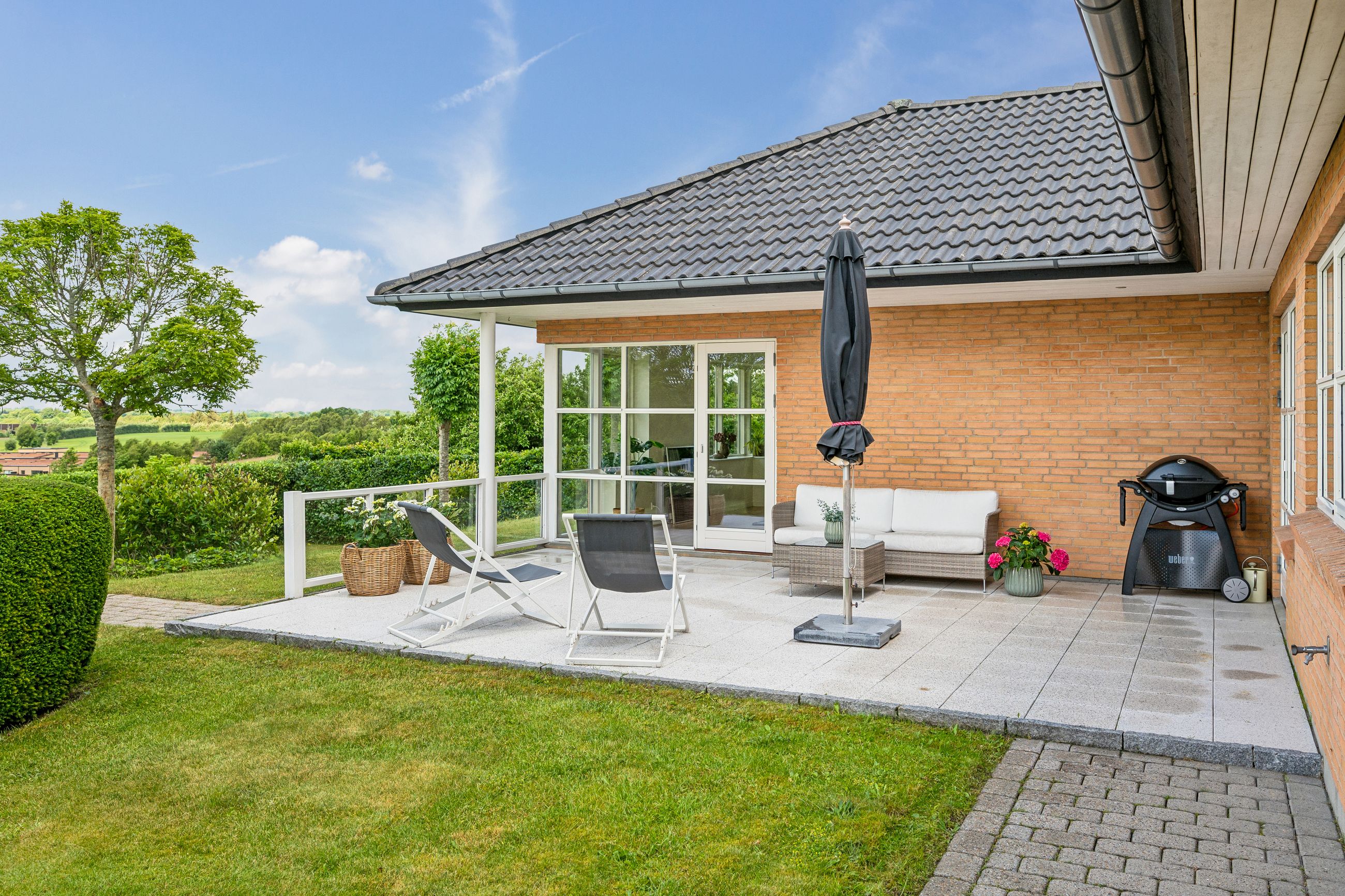 Udenfor venter en skøn, velanlagt have med flere solrige terrasser og en fantastisk udsigt, der skal opleves! Her kan du nyde morgenkaffen i fredelige omgivelser eller invitere til hyggelige grillaftener med familie og venner. Der er meget kort afstand til Hvinningdals Skole, børnehave, institutioner, indkøb mv.