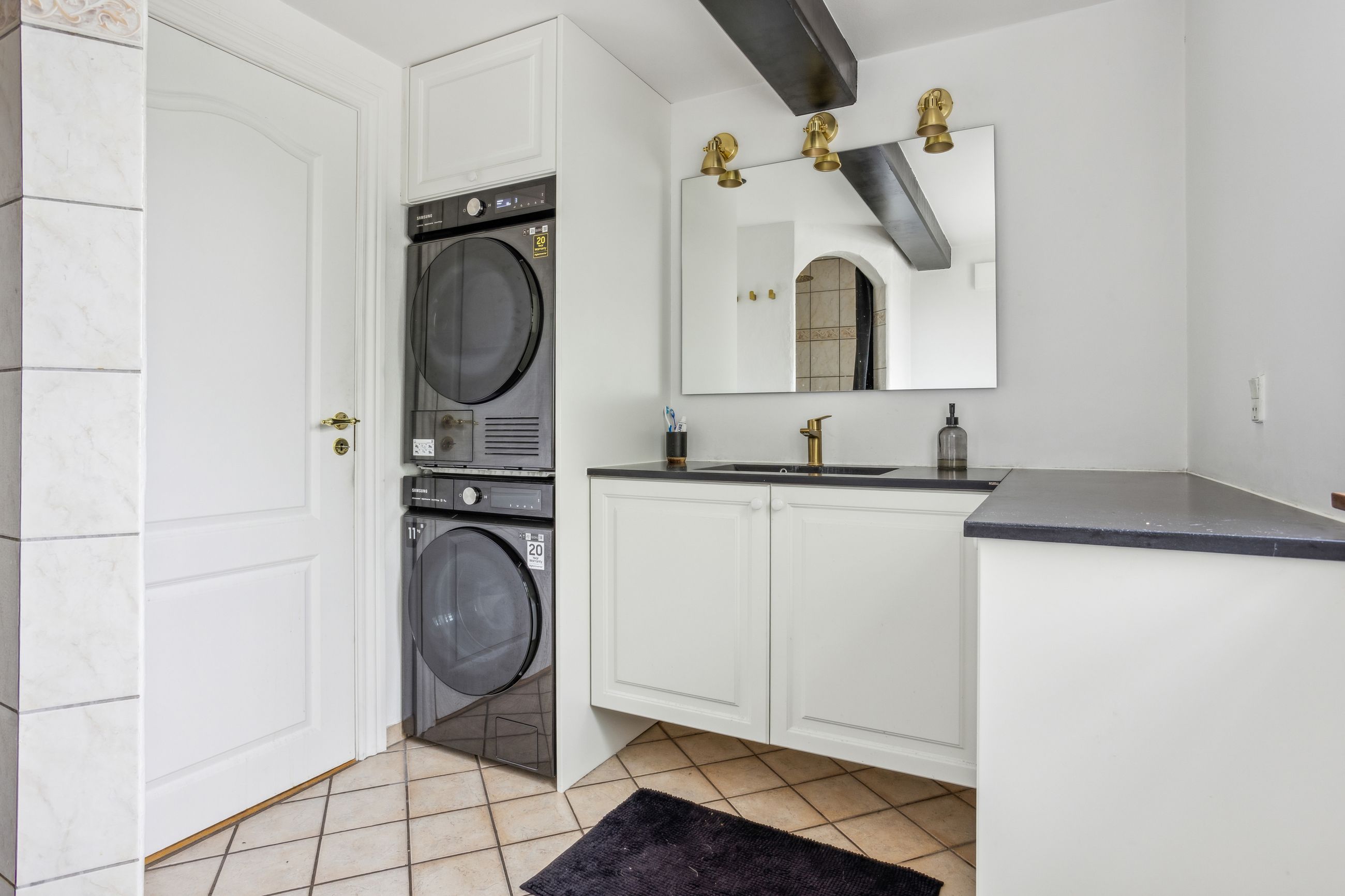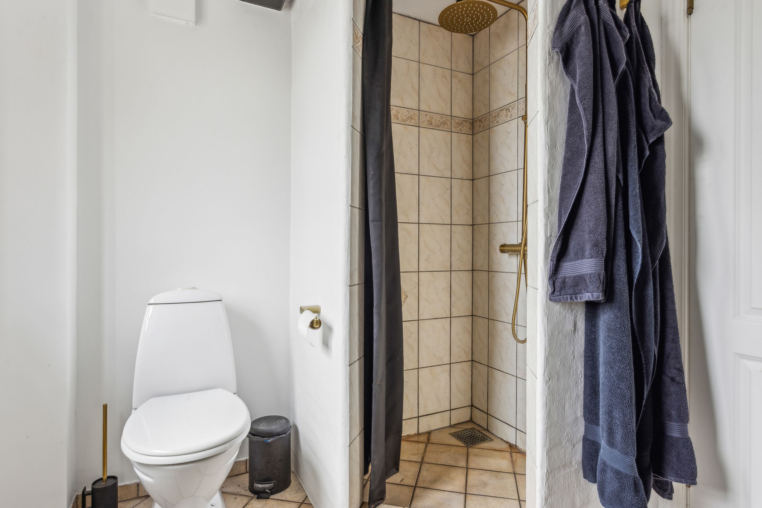 Et lyst og moderne badeværelse i tidsløse nuancer og stilrene klinker
