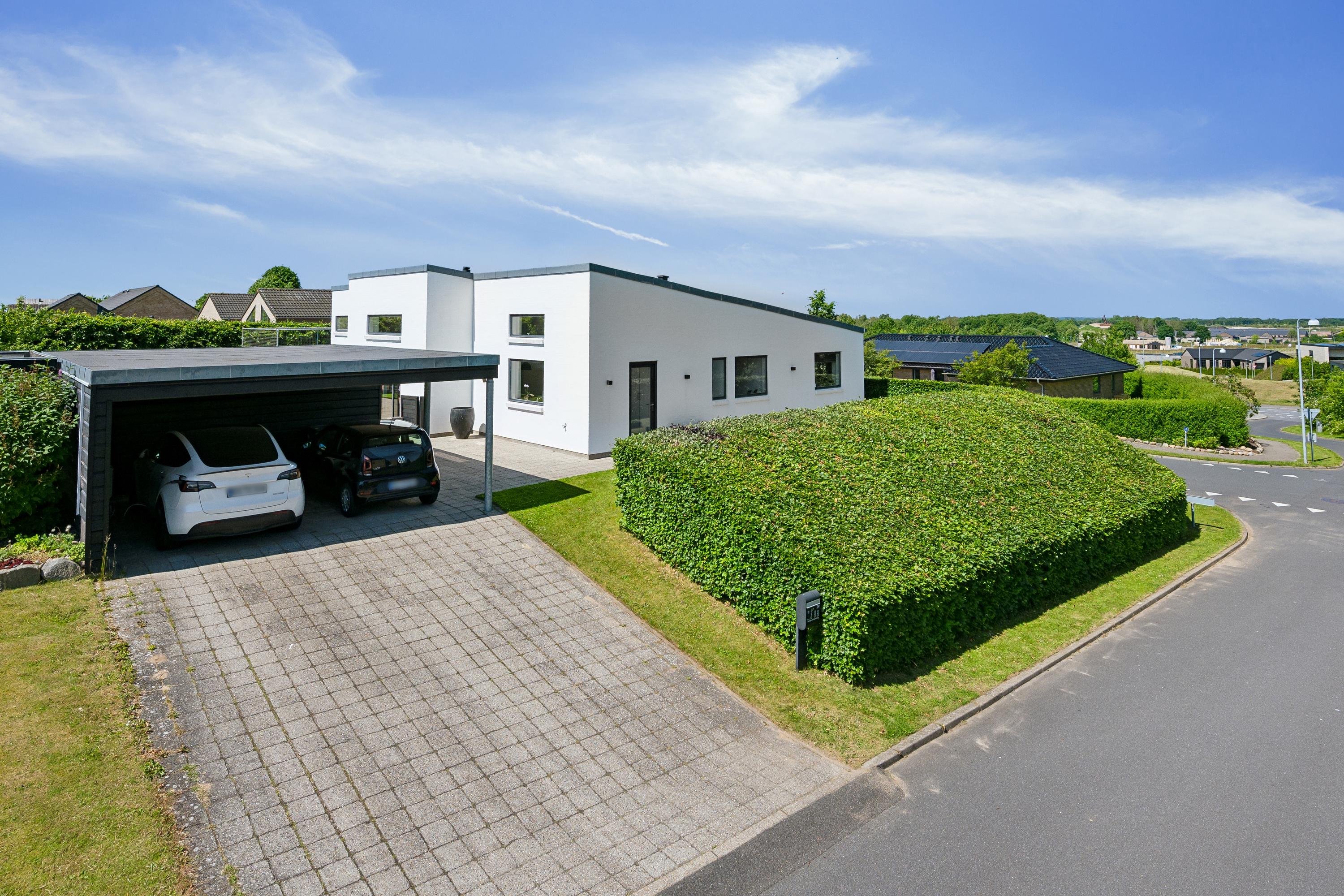 Velkommen til Balle Husevej 104 – en moderne og veldisponeret villa med plads til hele familien. Her får I en gennemtænkt planløsning, hvor der både er fokus på funktionalitet og hygge, og hvor materialevalget er holdt i en flot og tidløs stil.