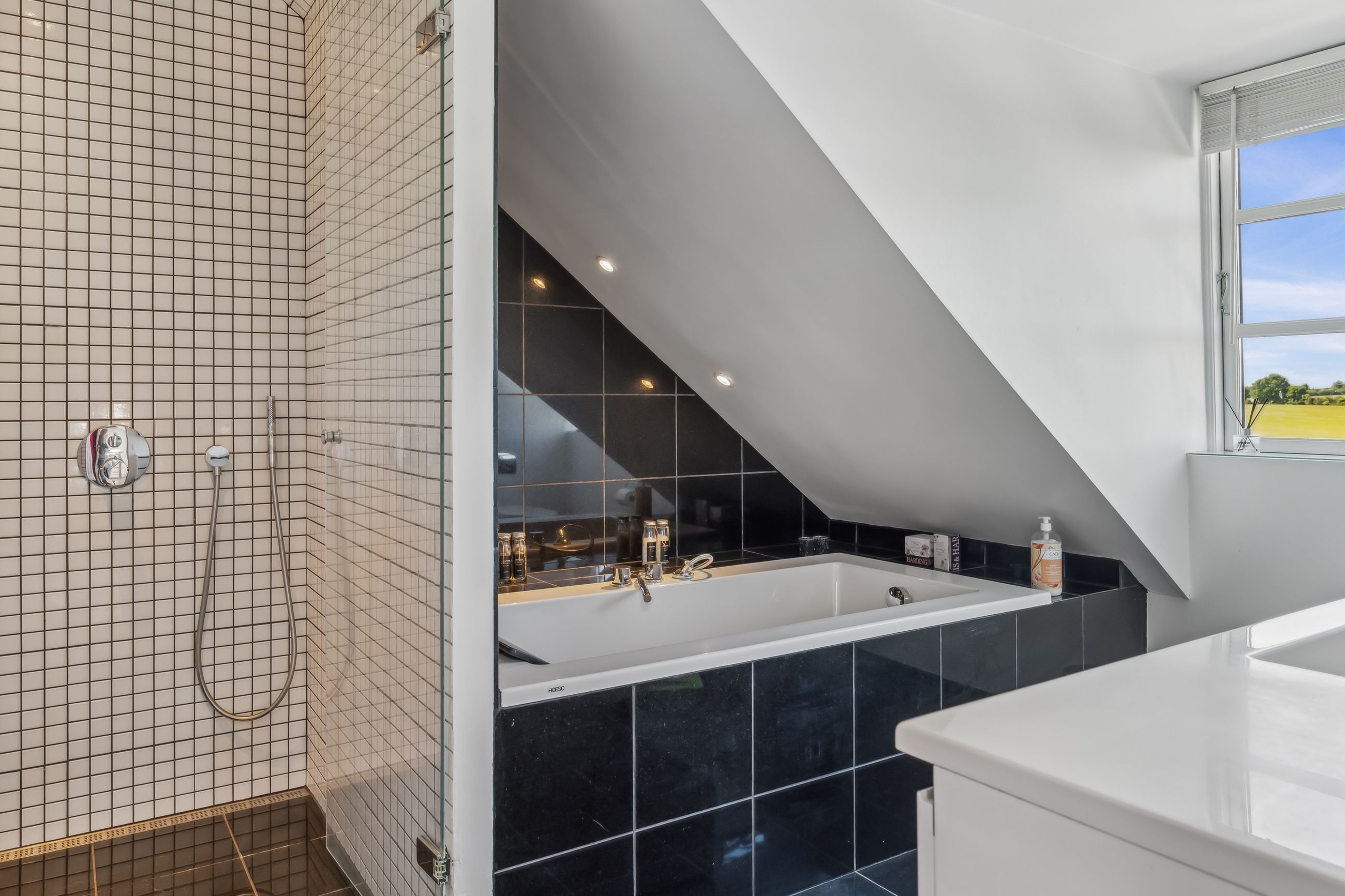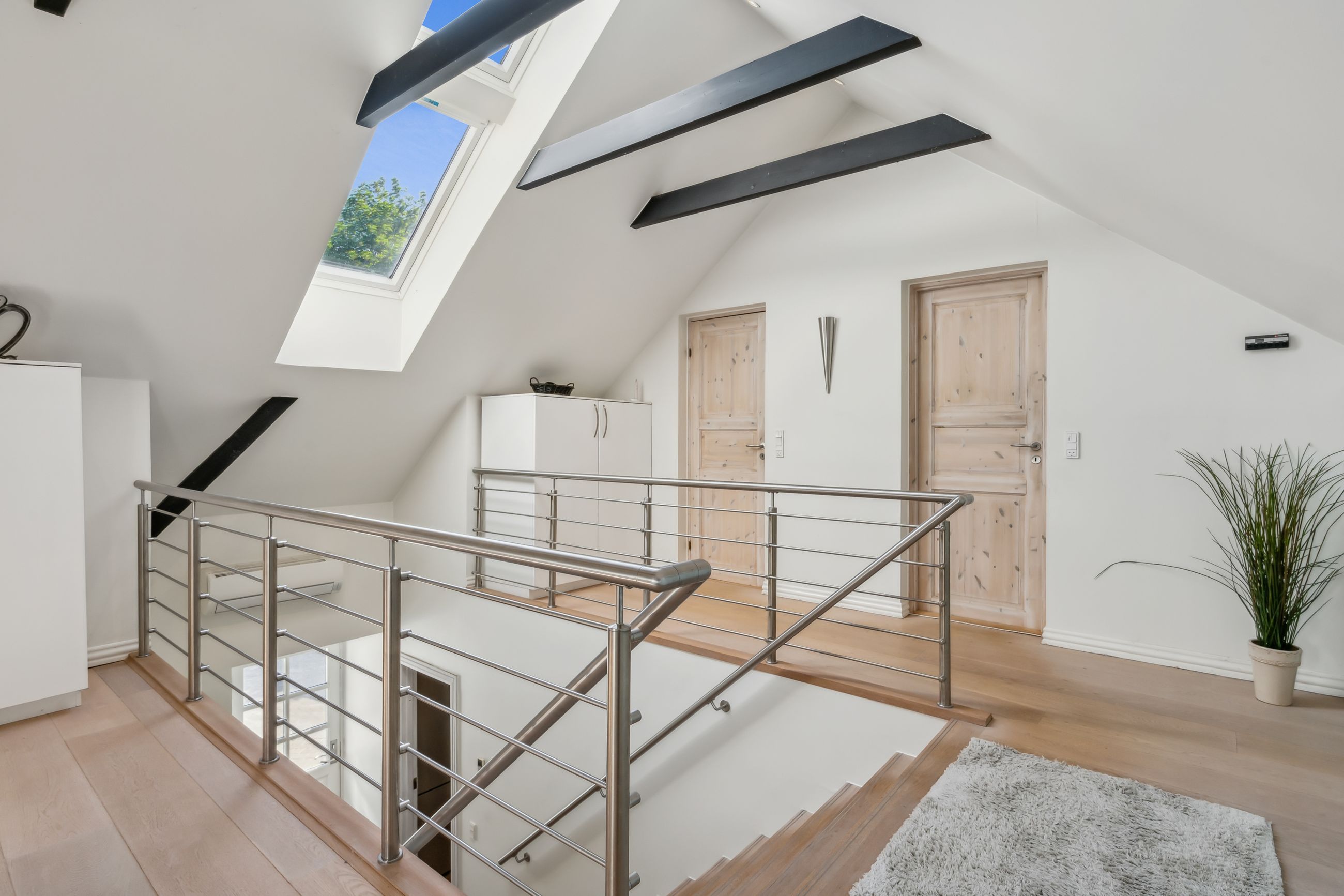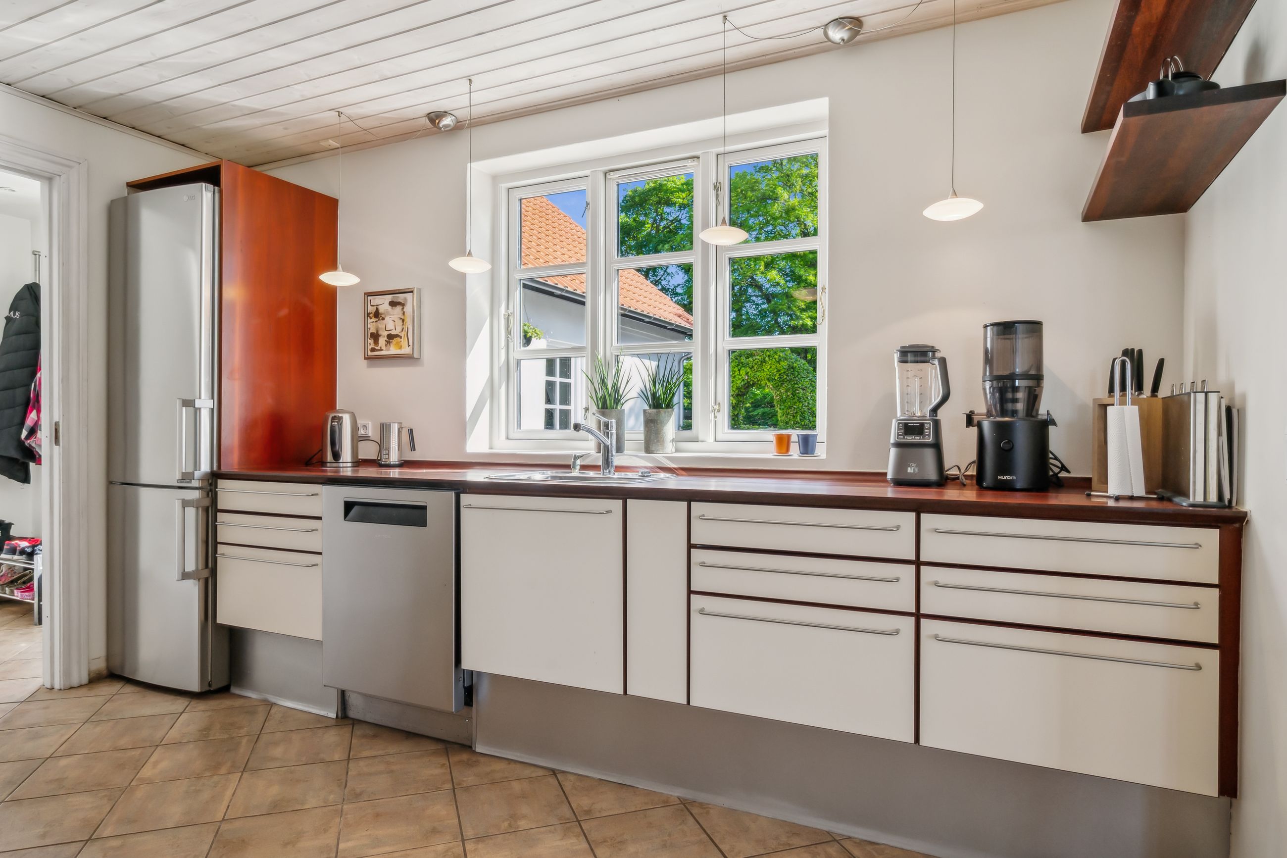 Ejendommen fremstår med en imponerende sans for detaljen, hvor blandt andet de sirligt udskårne spærender i tagkonstruktionen vidner om en passion for håndværk og æstetik. Samtidig er der ikke gået på kompromis med komforten – huset er nænsomt renoveret med moderne løsninger som jordvarme og genvindingsanlæg, hvilket sikrer både miljøvenlig og økonomisk drift.