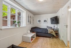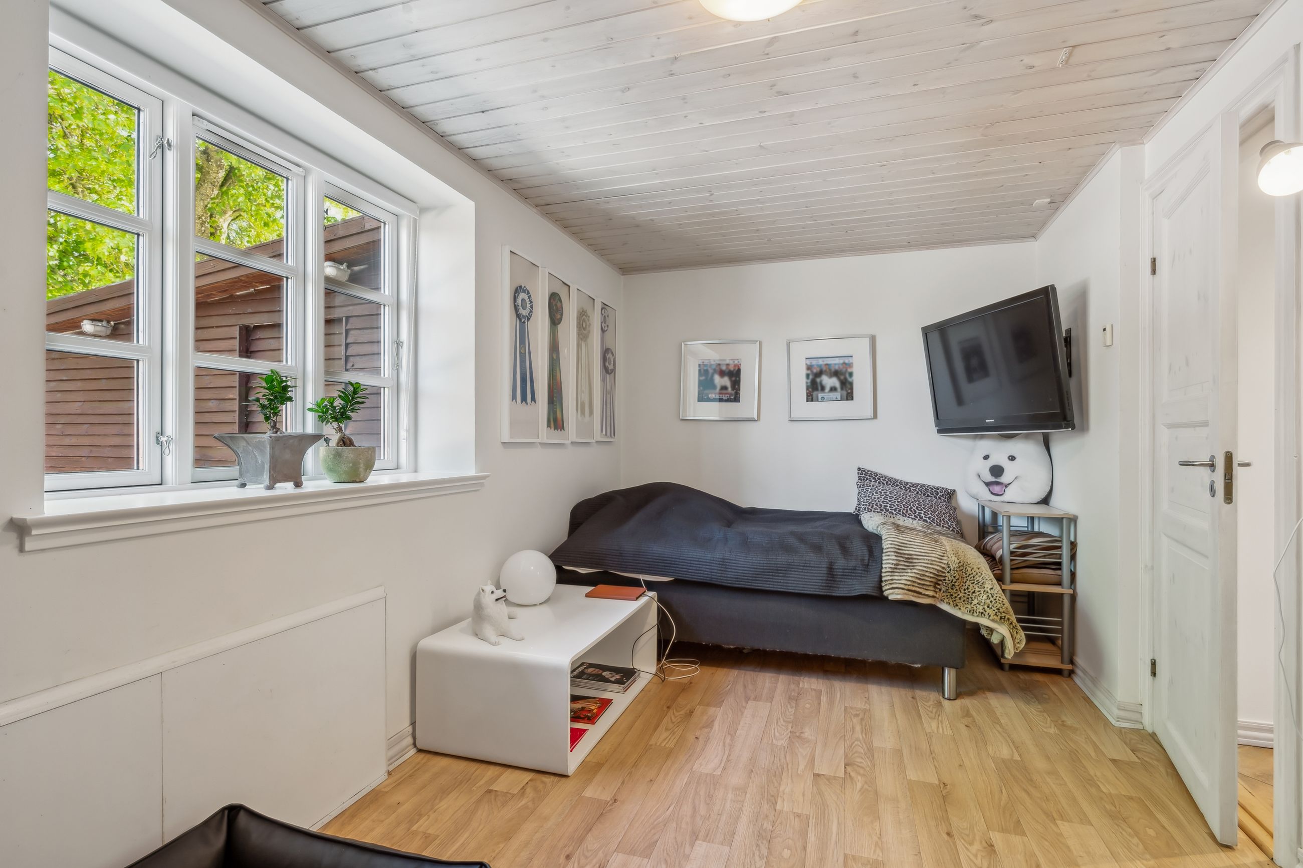 Indendørs byder boligen på rigelig plads til den store familie. Med mange værelser og store, lyse opholdsrum er her god plads til både hverdag og fest – og udenfor venter naturen som din nærmeste nabo.