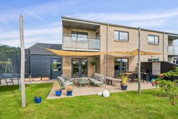 Boligen byder på en funktionel planløsning med bl.a. store værelser, to badeværelser og gode opholdsrum, der gør den oplagt til børnefamilien. Fra boligens altan kan du nyde en smuk udsigt over nærområdet, og med syd-vestvendt have er der sol det meste af dagen. Haven er desuden placeret en smule højere end de fælles grønne arealer, hvilket giver en dejlig privat atmosfære i sommerhalvåret.