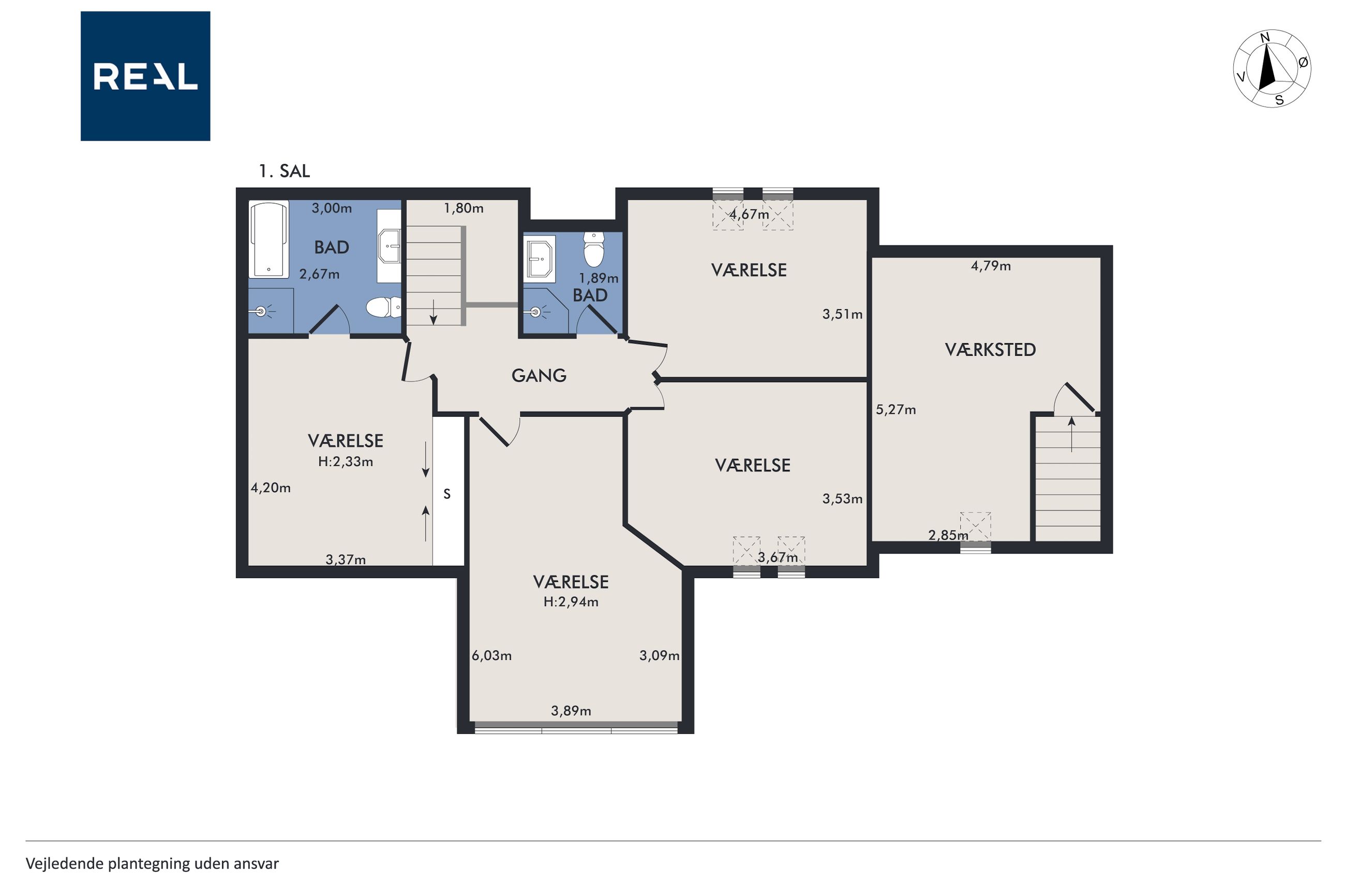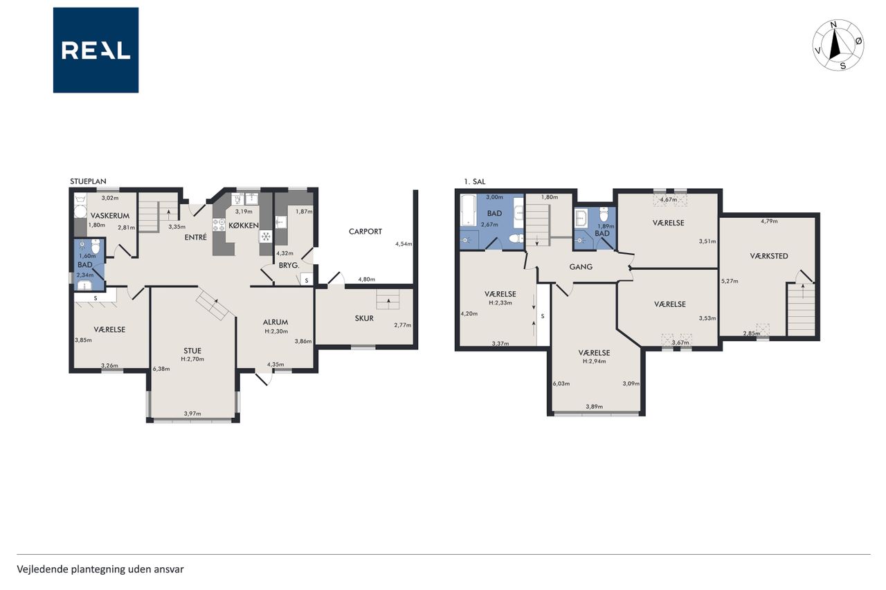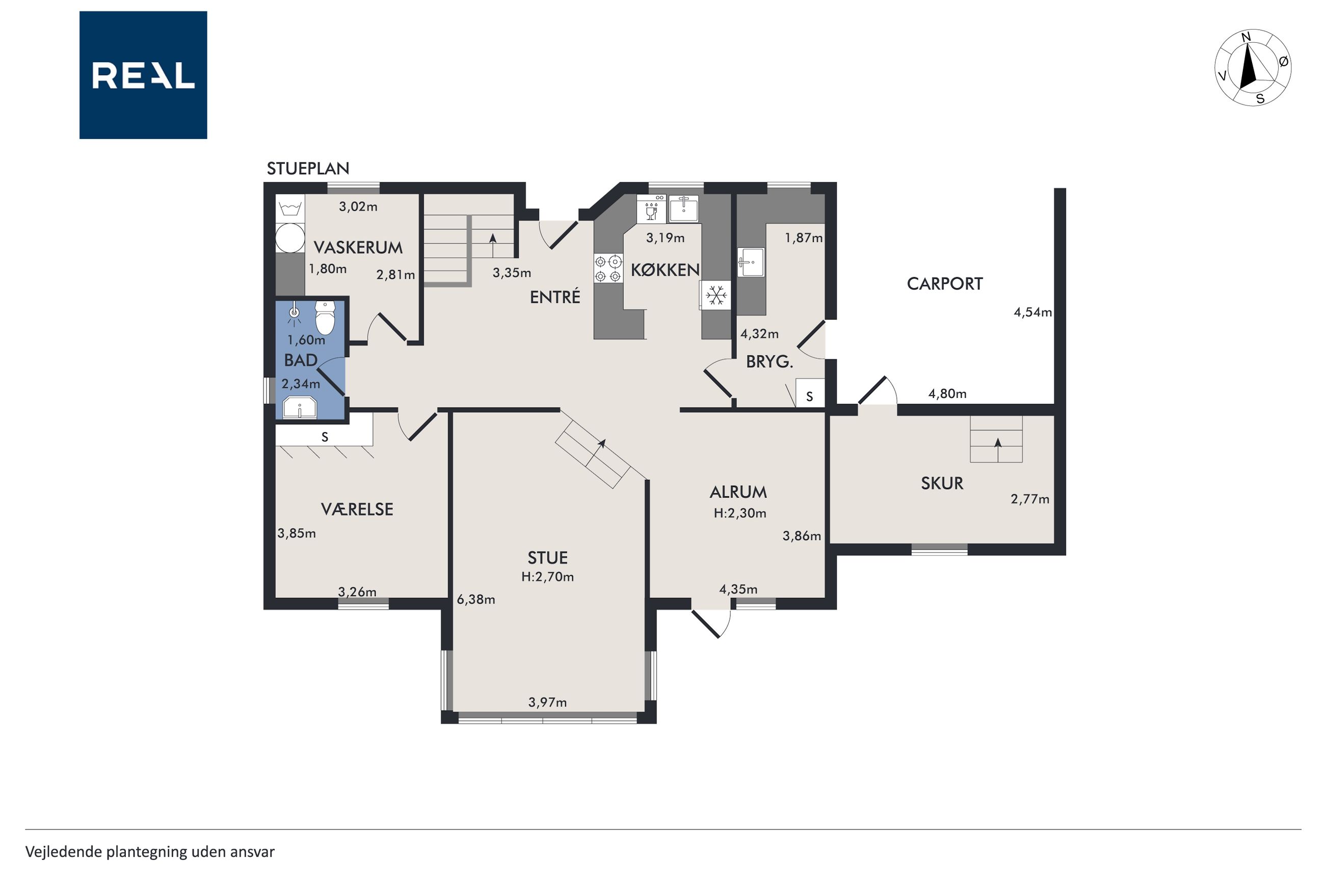 I stueplan byder boligen på en lys og indbydende hall med trappe til førstesalen, et stort køkken-alrum med plads til både hverdag og gæster, hyggelig stue, værelse, badeværelse samt bryggers og separat vaskerum.