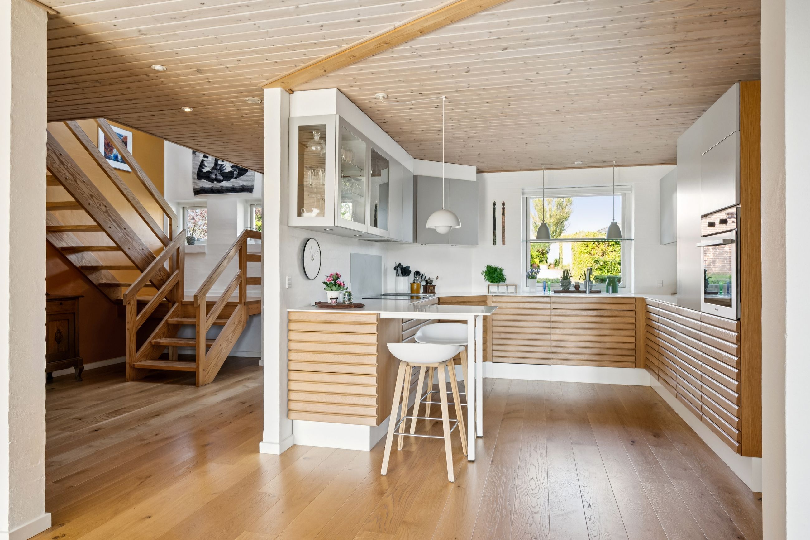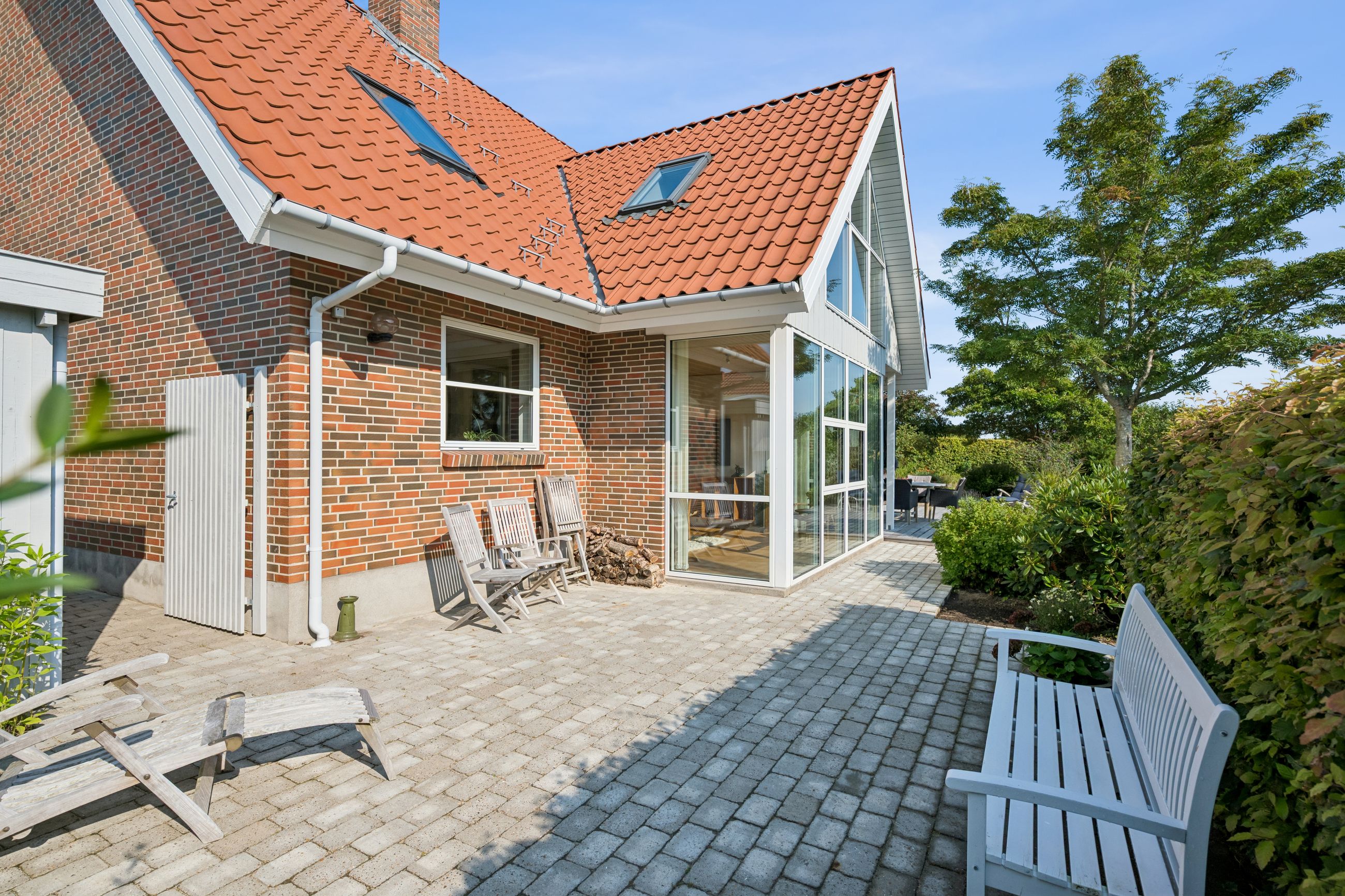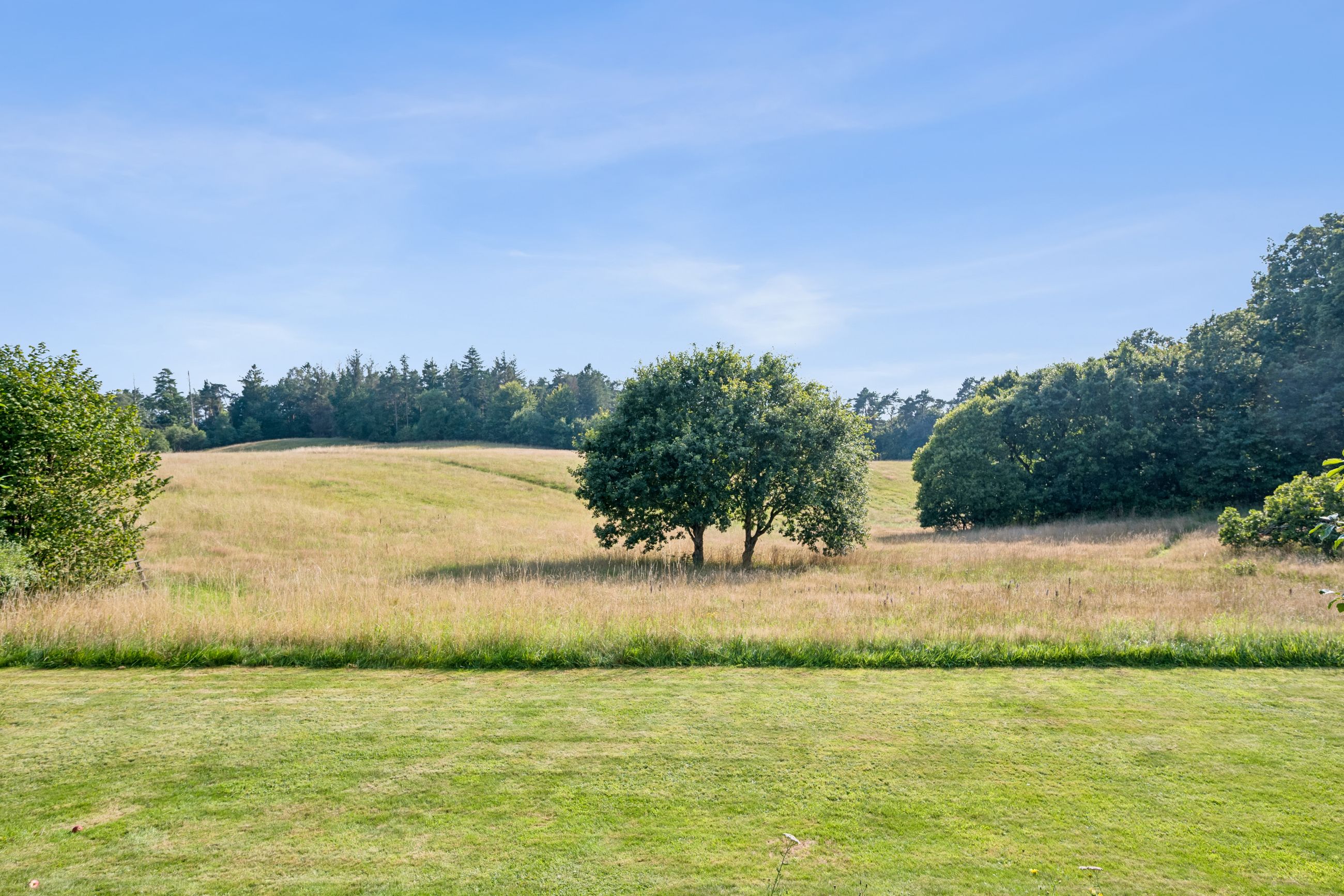 Og samtidig glider den pragtfulde have, ubesværet i ét med landskabet og skaber en helt særlig følelse af at bo midt i naturen – uden naboer på havesiden.
