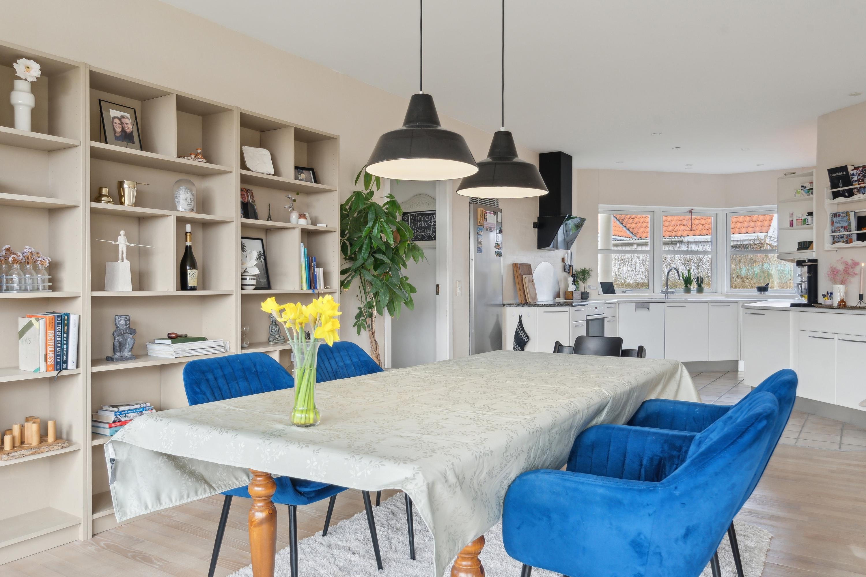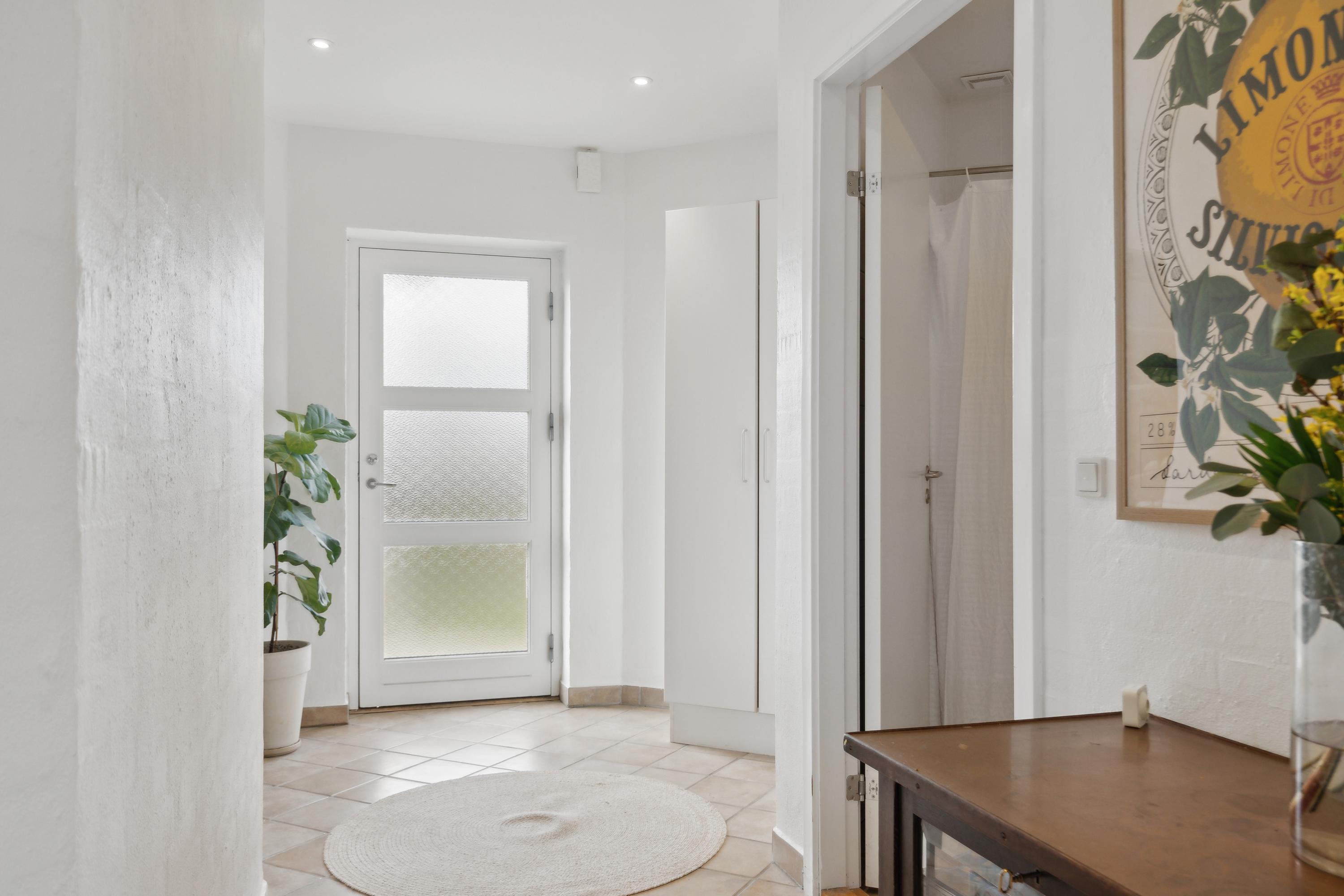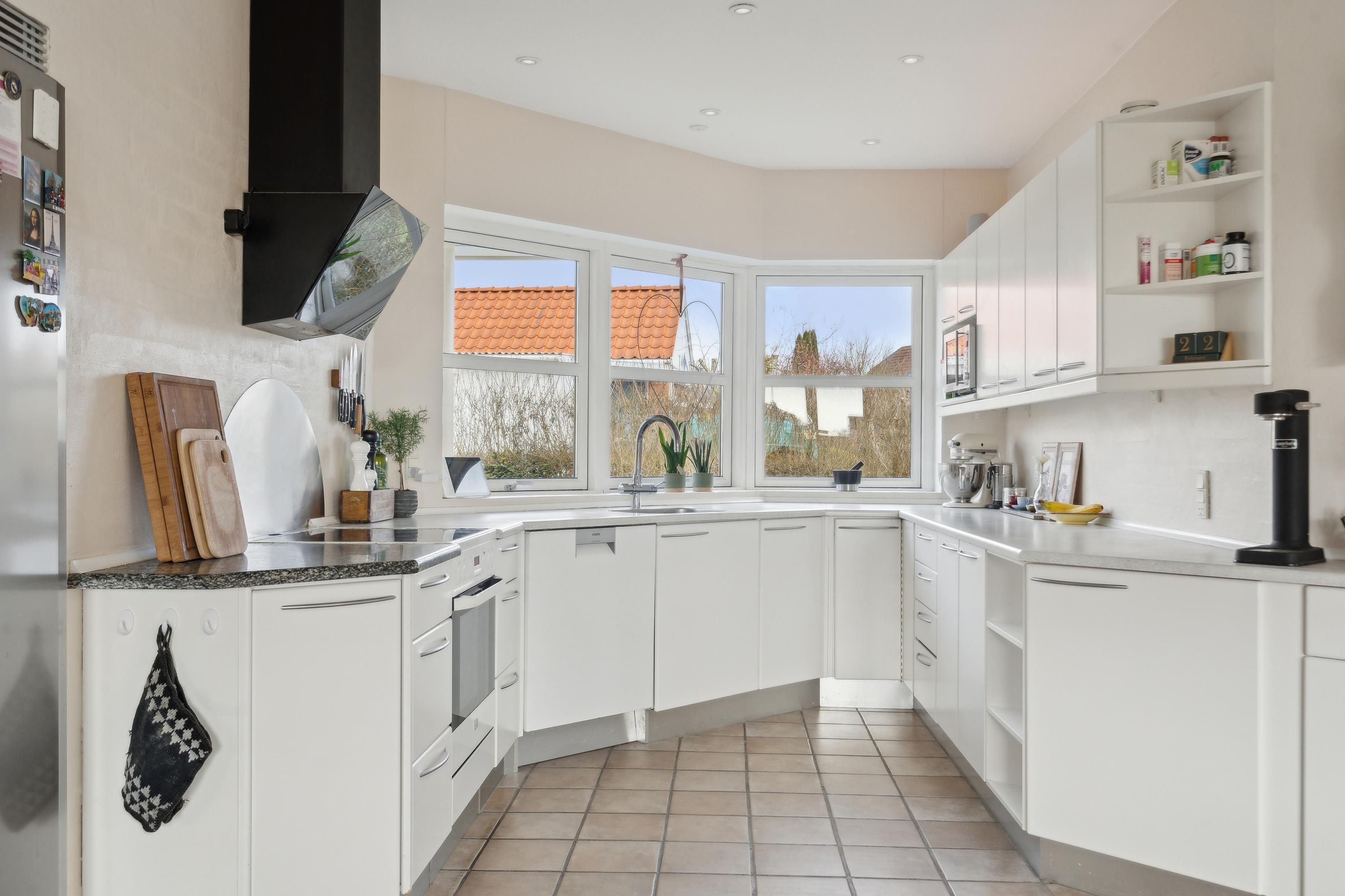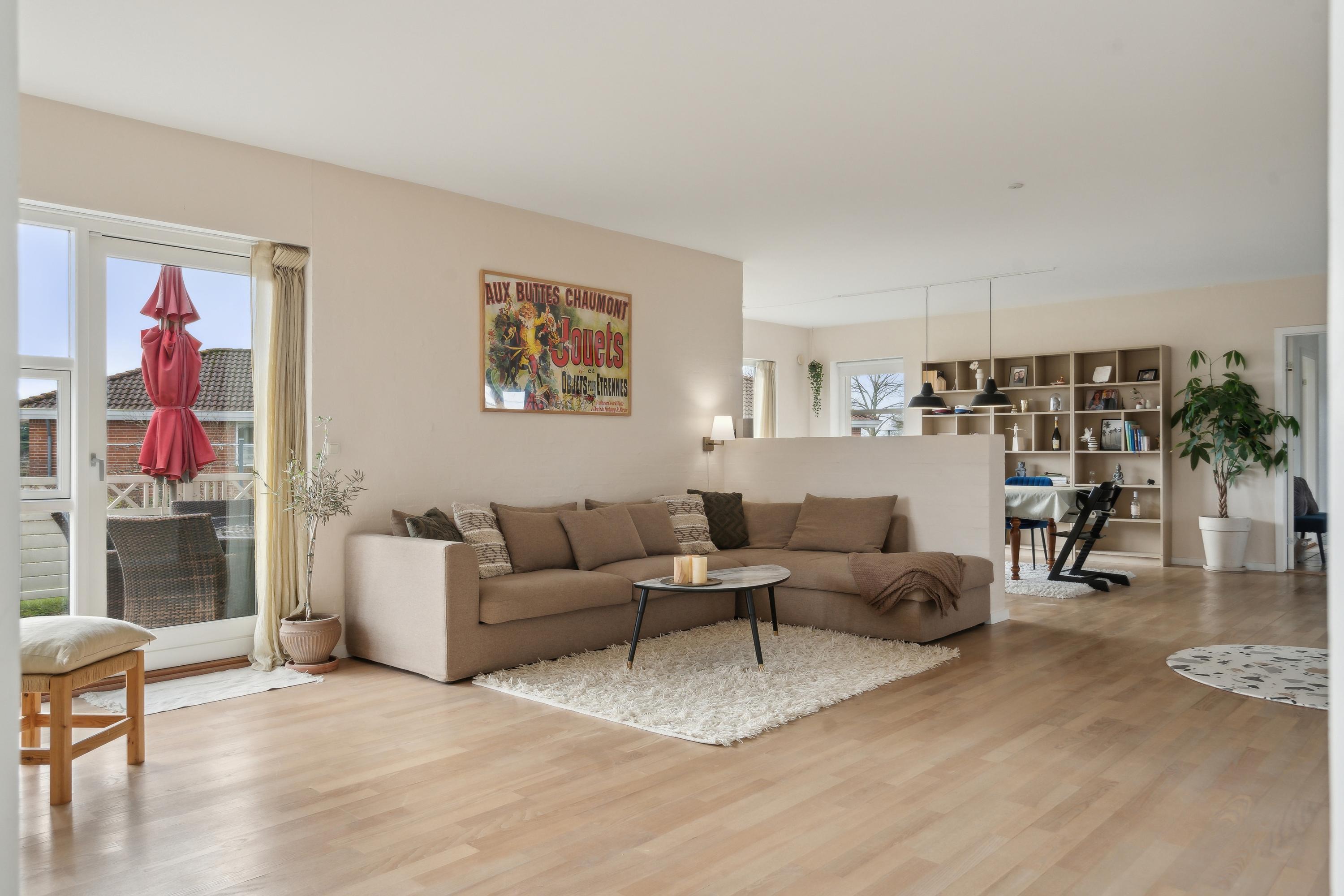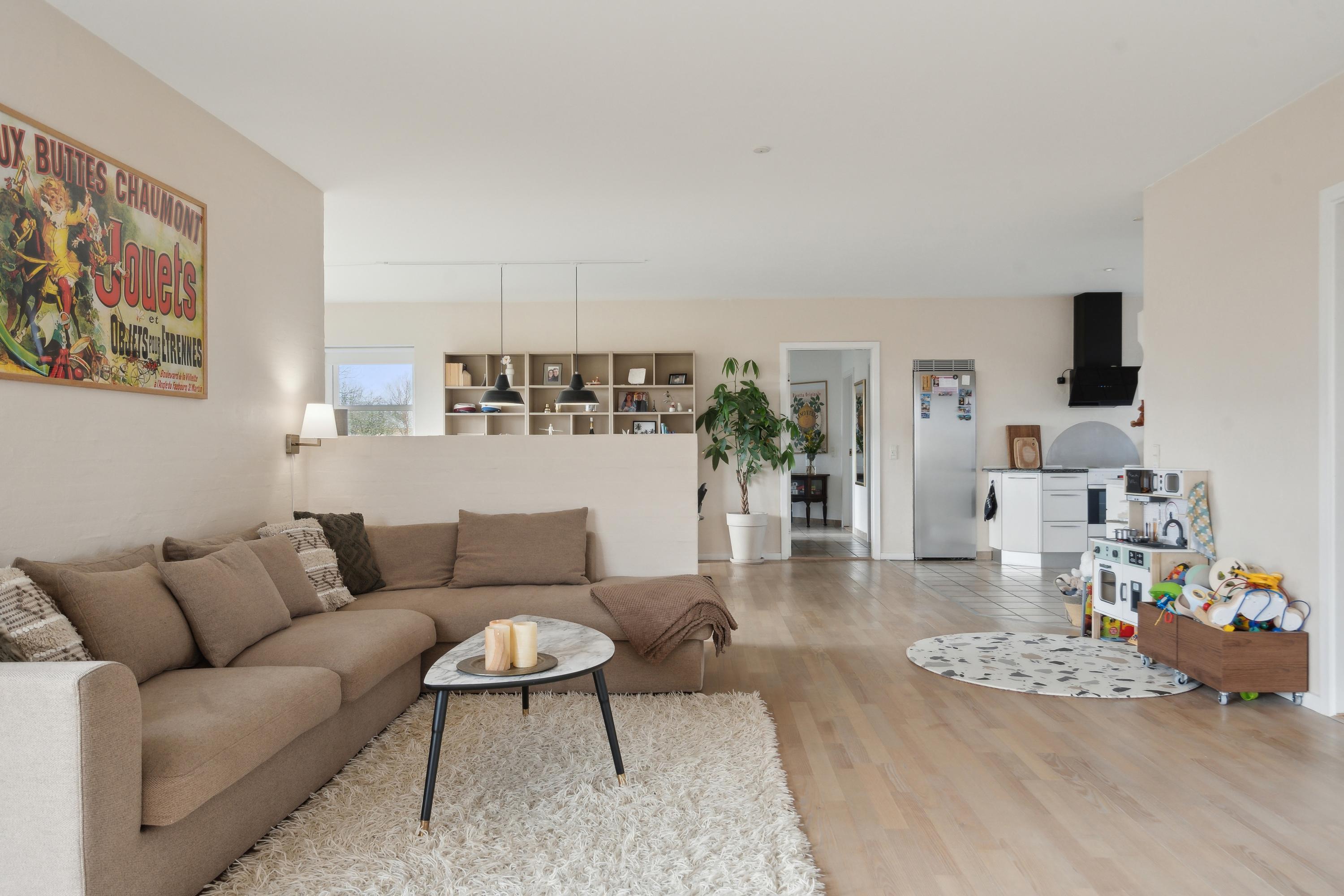 Denne fuldmurede KBK-villa fra 1996 byder på en moderne og gennemtænkt planløsning med en lys og rummelig atmosfære. Boligen har ekstra loftshøjde i alle rum, hvilket skaber en imponerende rumfornemmelse, og de store