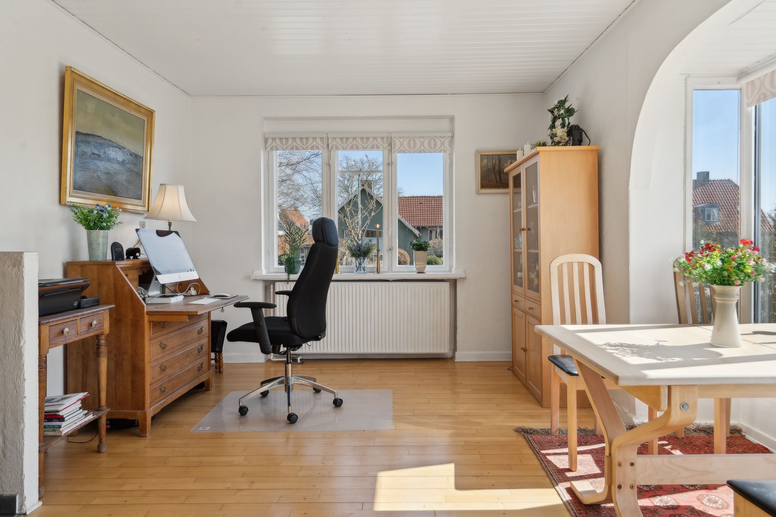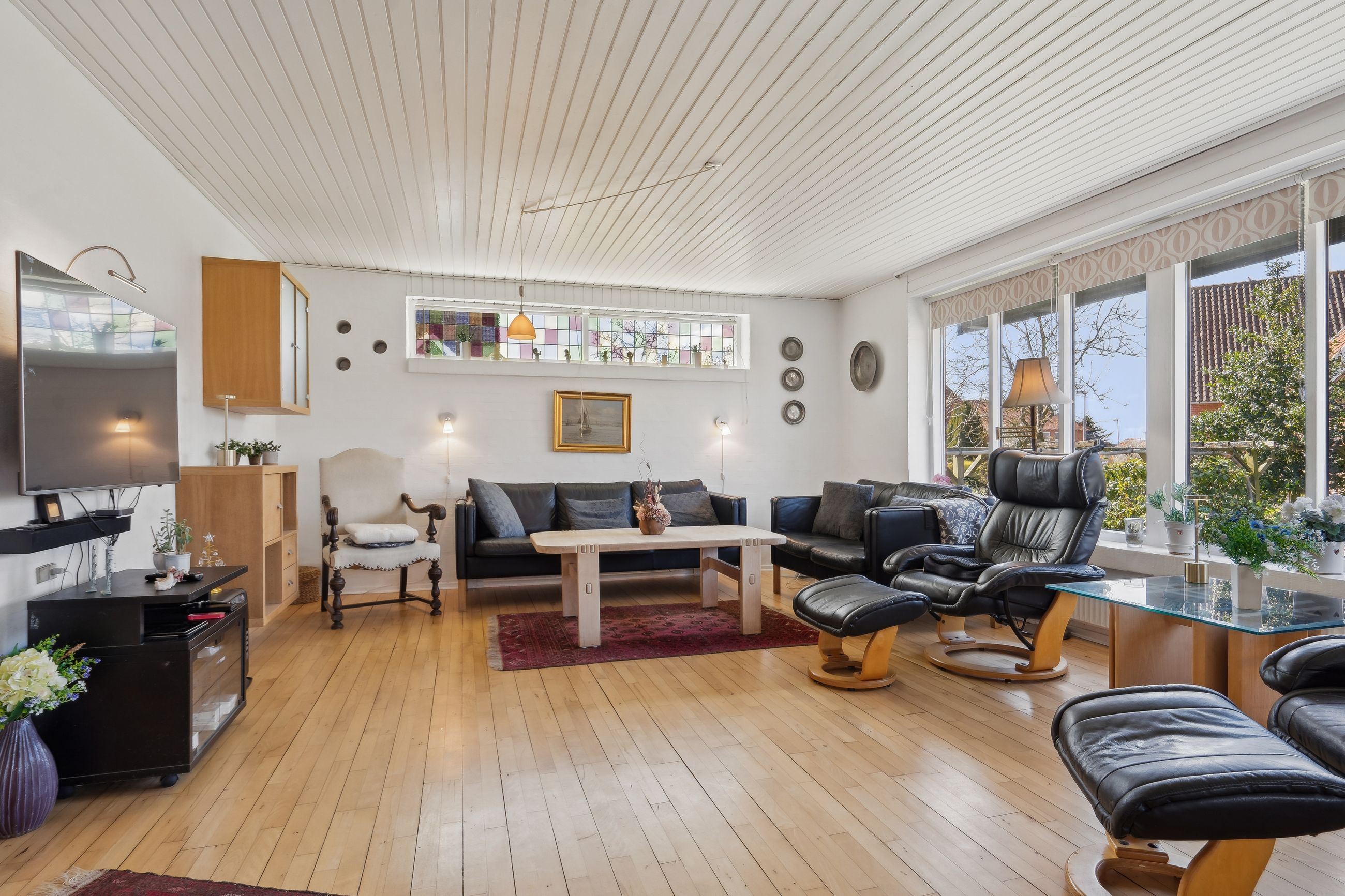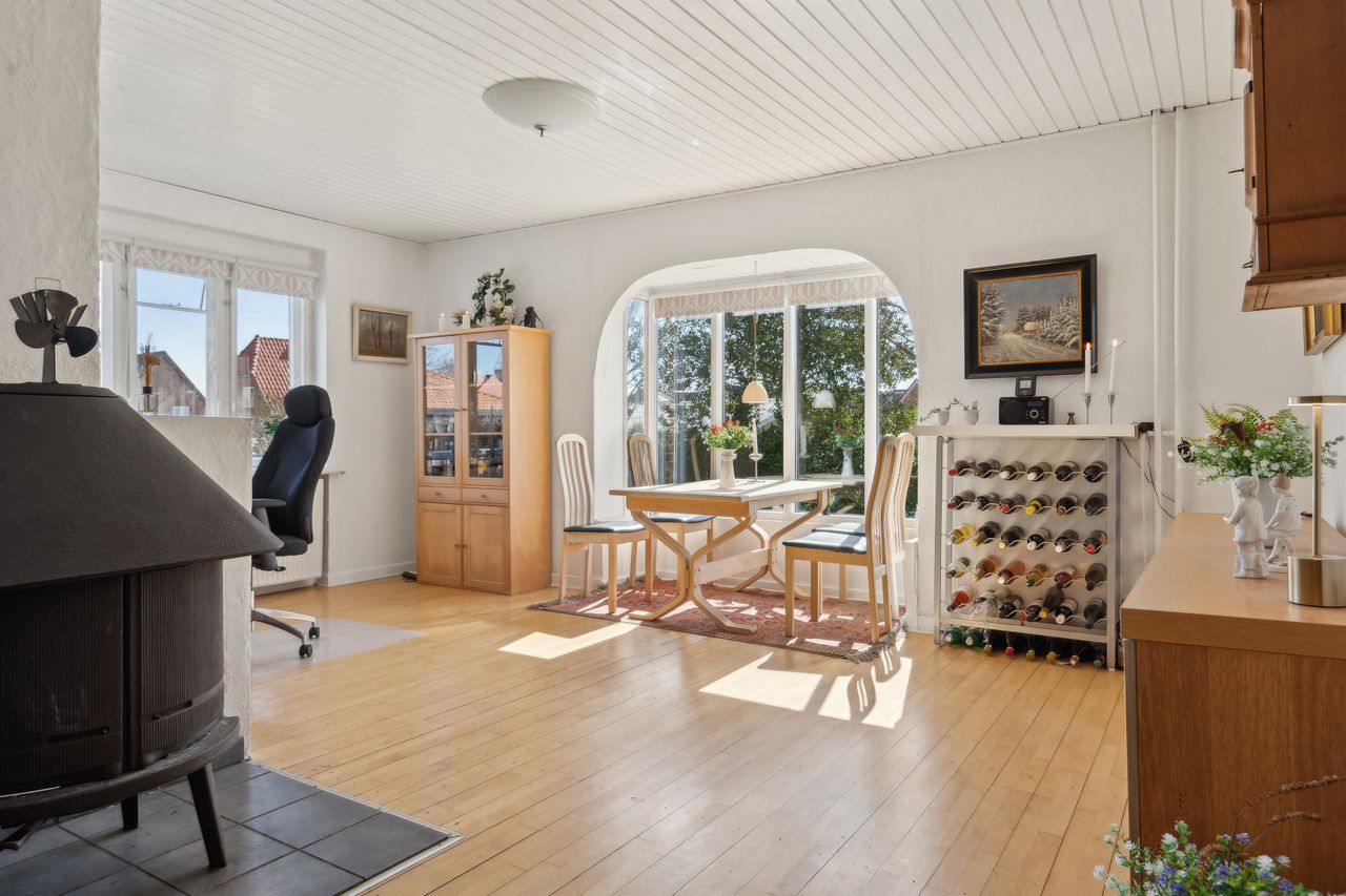 Ejendommen indeholder: Stor entre med flot parketgulv som er omdrejningspunktet for husets øvrige rum. Pænt lyst køkken med mulighed for at åbne op til stort køkken/alrum. Stor spisestue med plads til hele familien og med flot lysindfald fra de store vinduespartier samt tv-stue med udgang til udestue (Ikke godkendt på BBR)