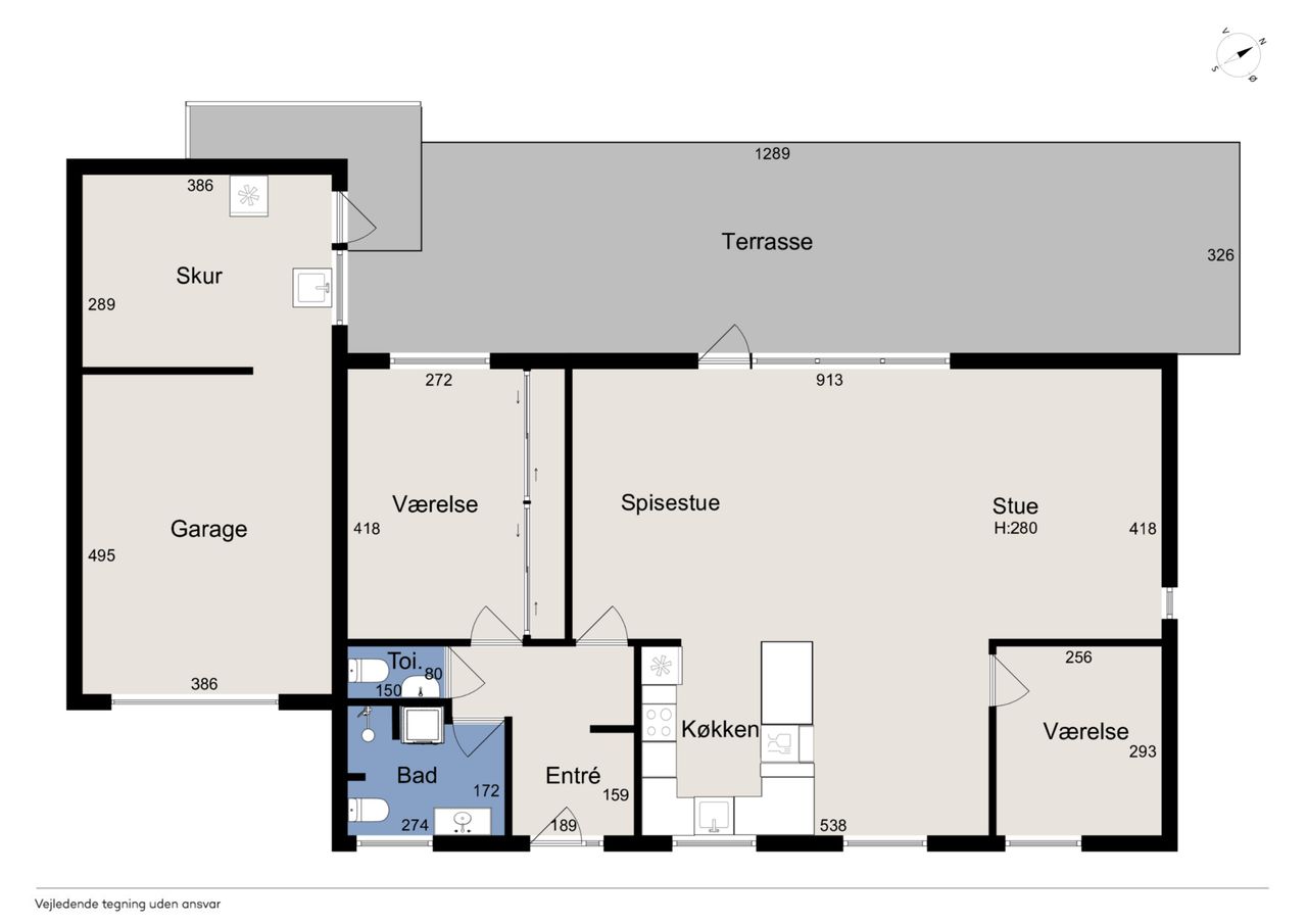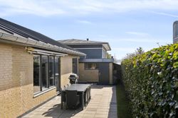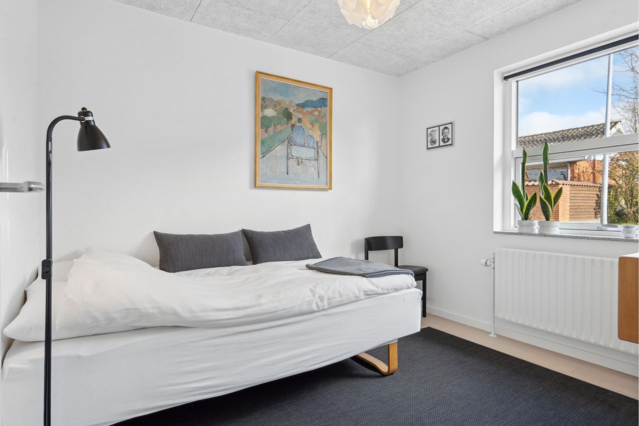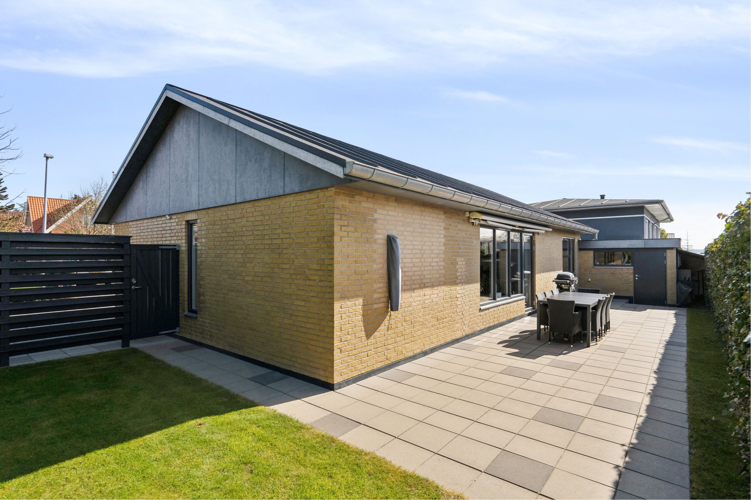 Gennem hele boligen er der masser af naturligt lysindfald, genereret gennem store vinduespartier og selvfølgelig terrassedøren, der åbner op til haven. Til huset hører en stor garage og et rummeligt, tilstødende værksted med plads til opbevaring og projekter til hus og have. Haven ligger perfekt orienteret mod sydvest og her får I altså optimalt udbytte af solen. Den rummelige terrasse er udstyret med markise og haven er fuldkommen aflukket og ugenert.