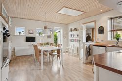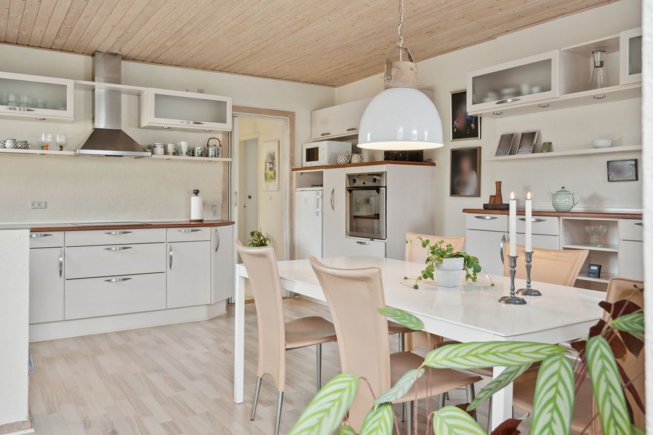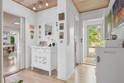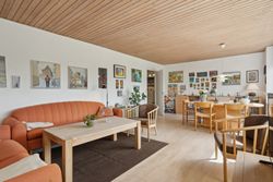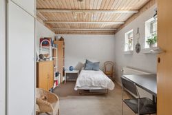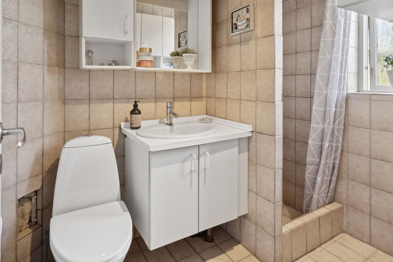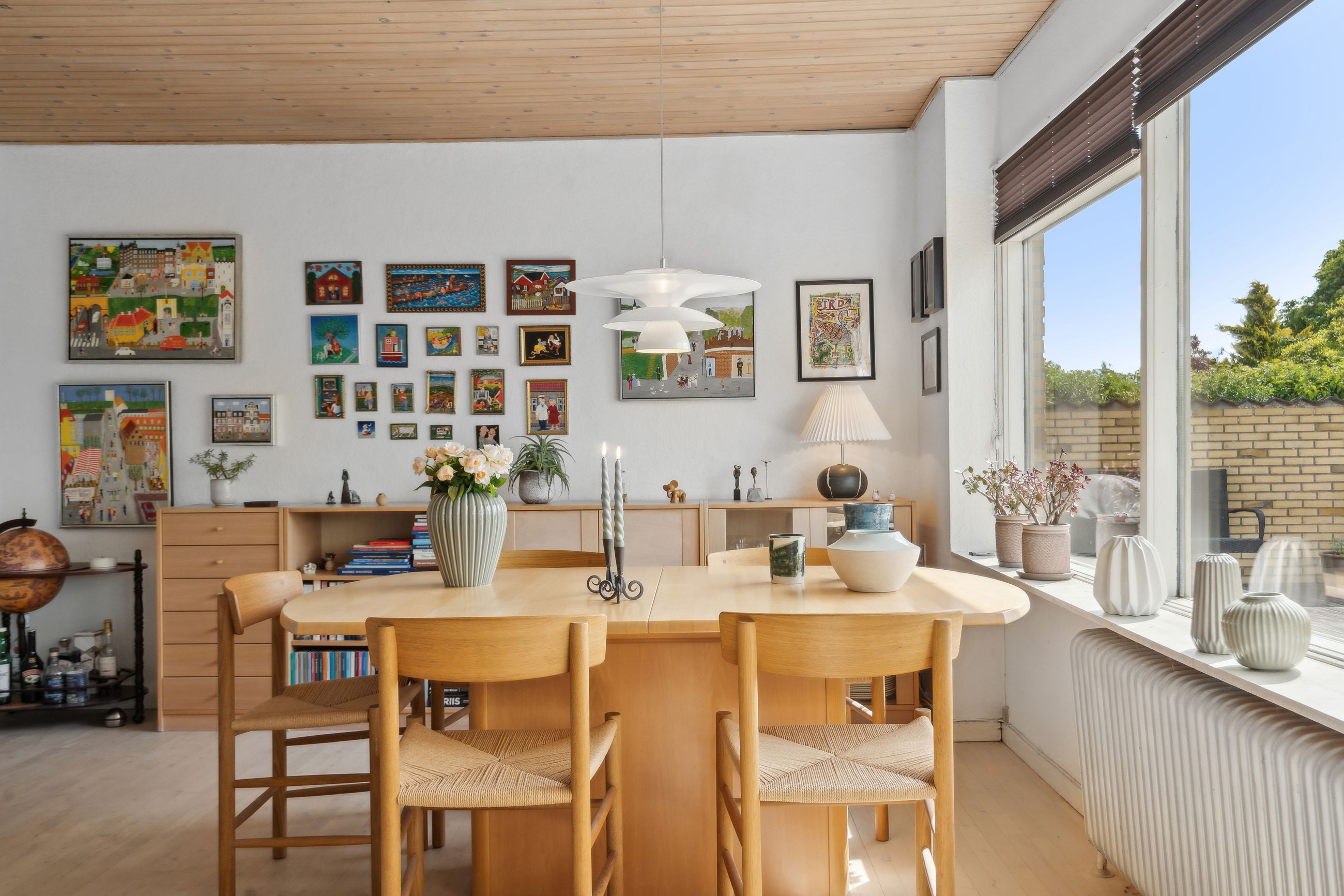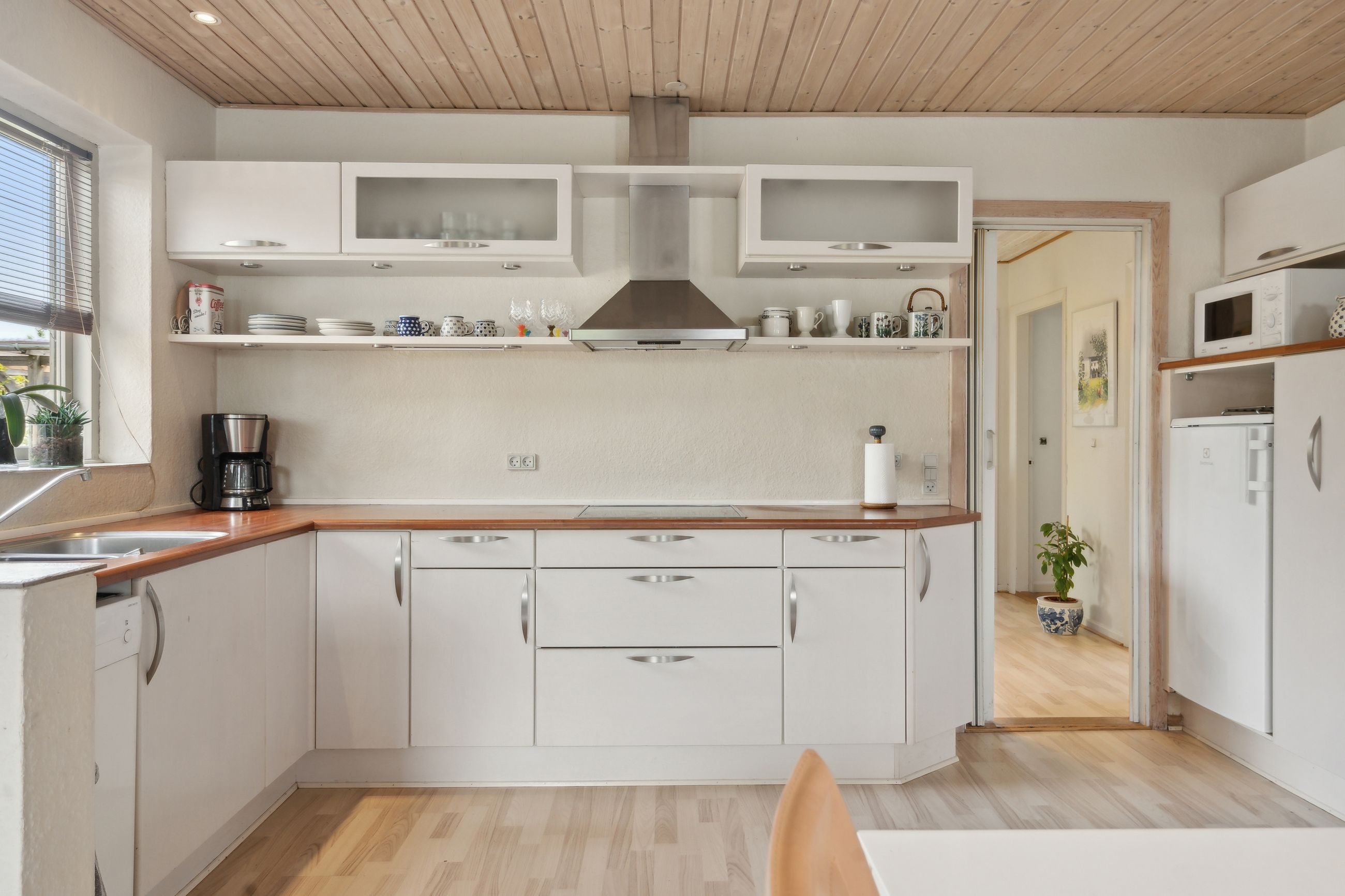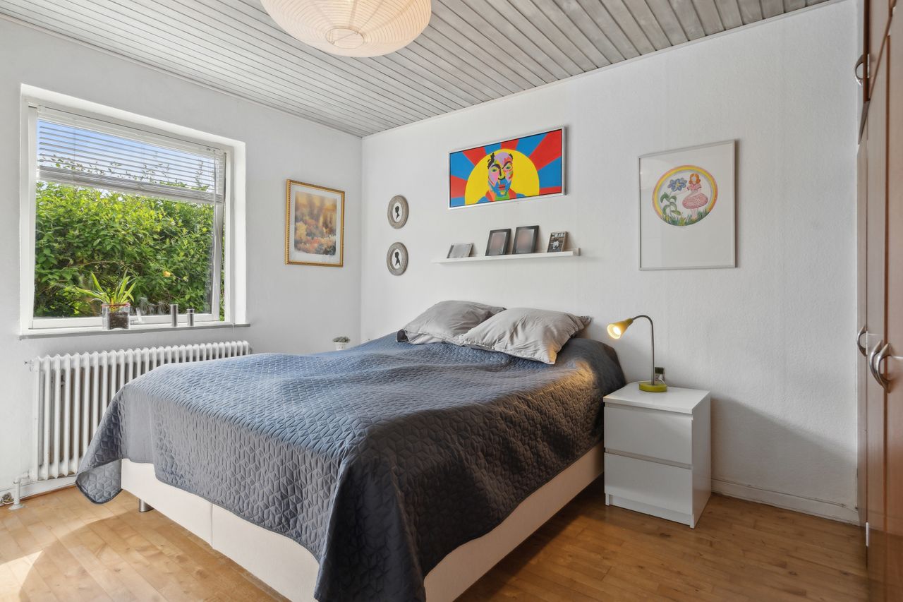 Boligen byder på en rummelig og lys stue med udgang til stor vestvendt træterrasse og have. Der er desuden mulighed for at åbne mere op til køkkenet, hvis man ønsker et åbent køkken/alrum/stue. Køkkenet er stilrent, har en rigtig god størrelse med plads til spisebord og funktionelt med masser af opbevaringsplads. I dag findes der 2 store værelser, hvoraf det ene tidligere har været opdelt i to. Det giver derfor en god fleksibilitet til jeres behov. Badeværelset er rummeligt og med bruseniche samt gulvvarme.