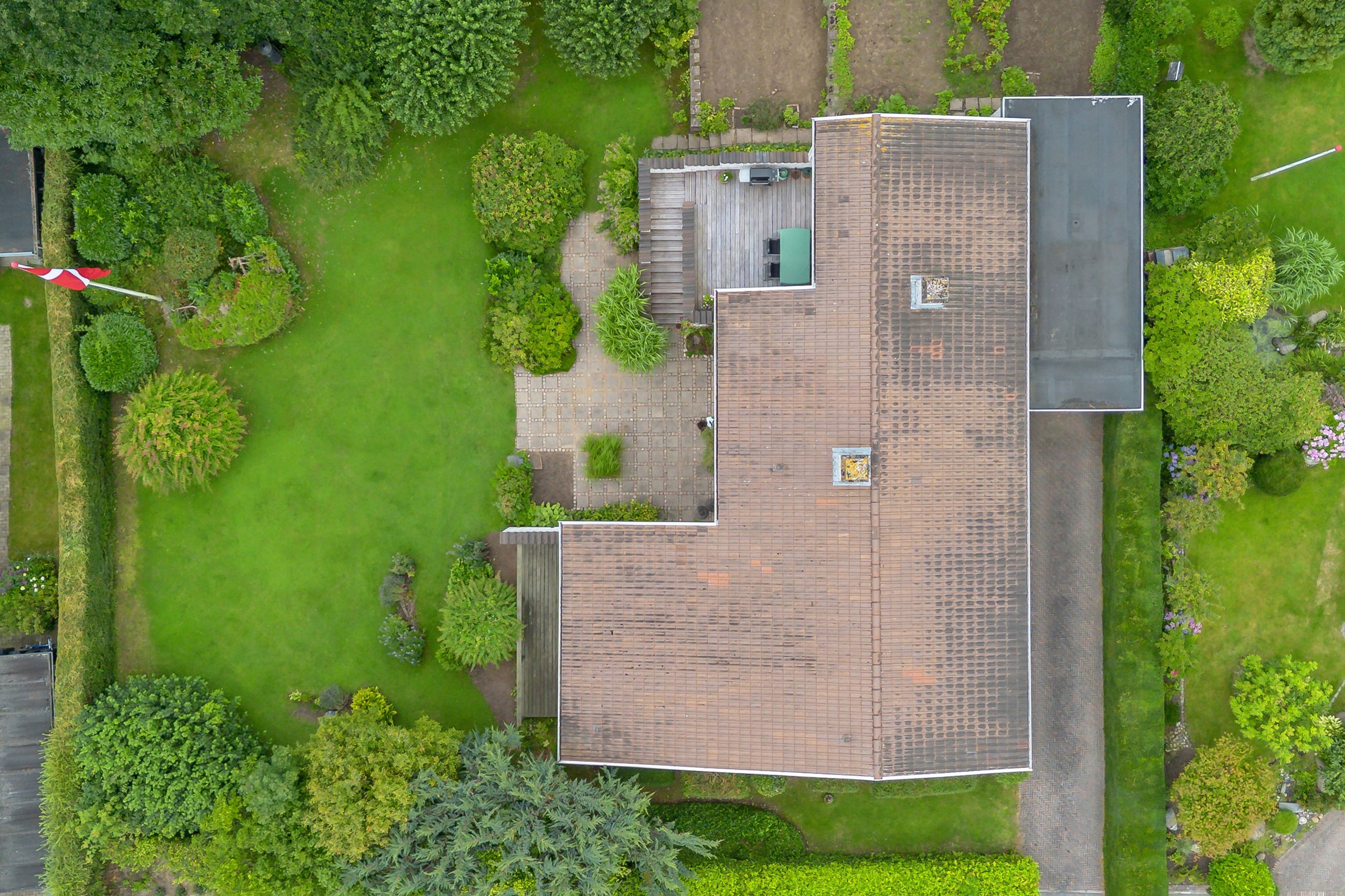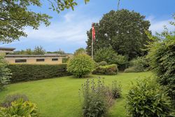 Grunden er velanlagt med en frodig og ugeneret have, der indrammer huset og skaber privatliv. Her er flere solrige terrasser, hvor du kan nyde udsigten og de rolige omgivelser.