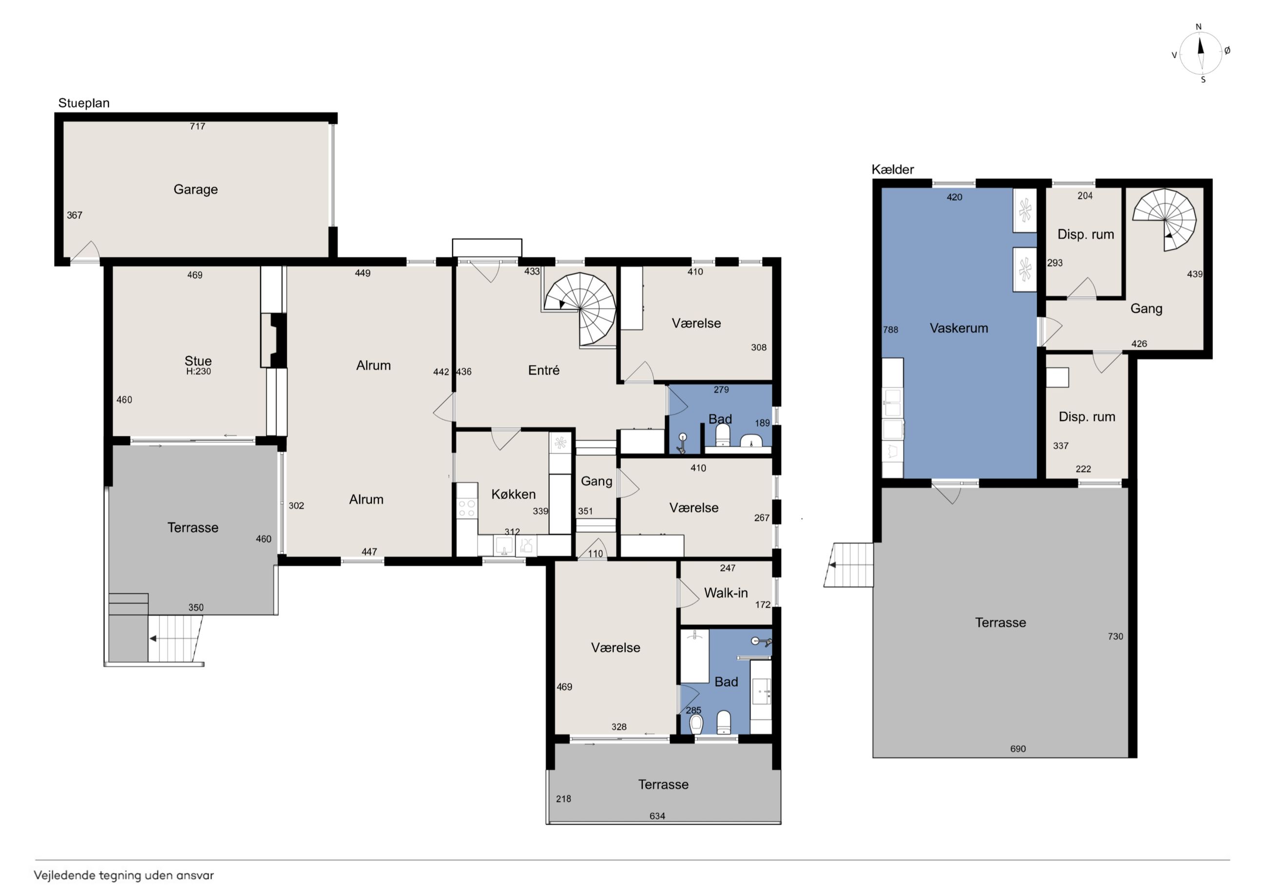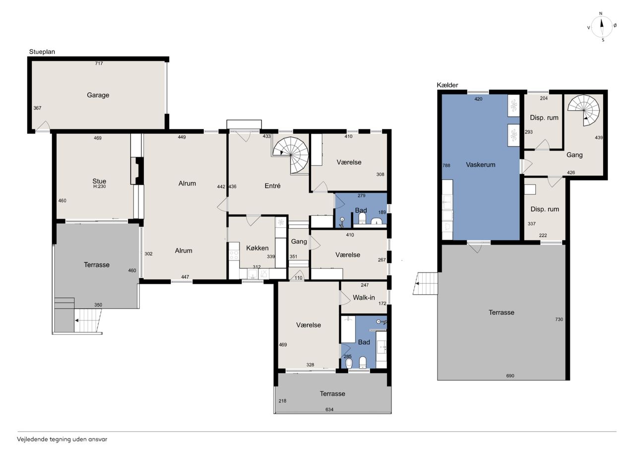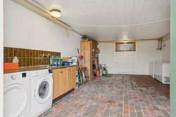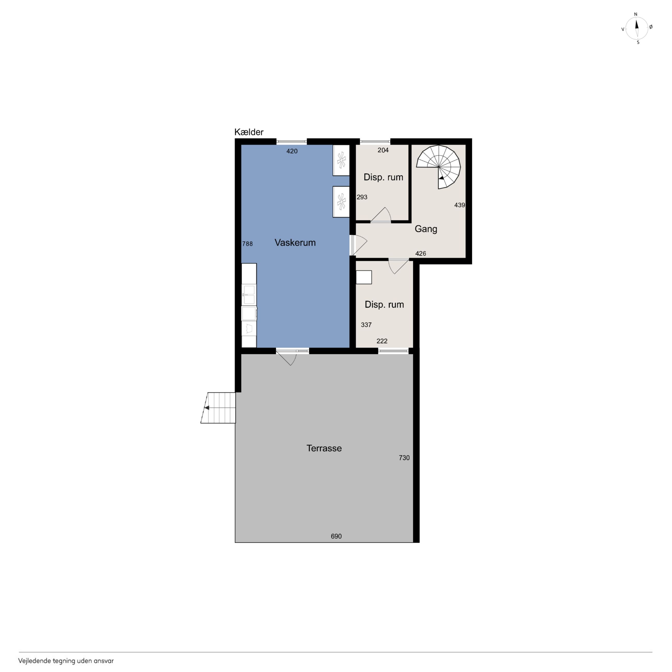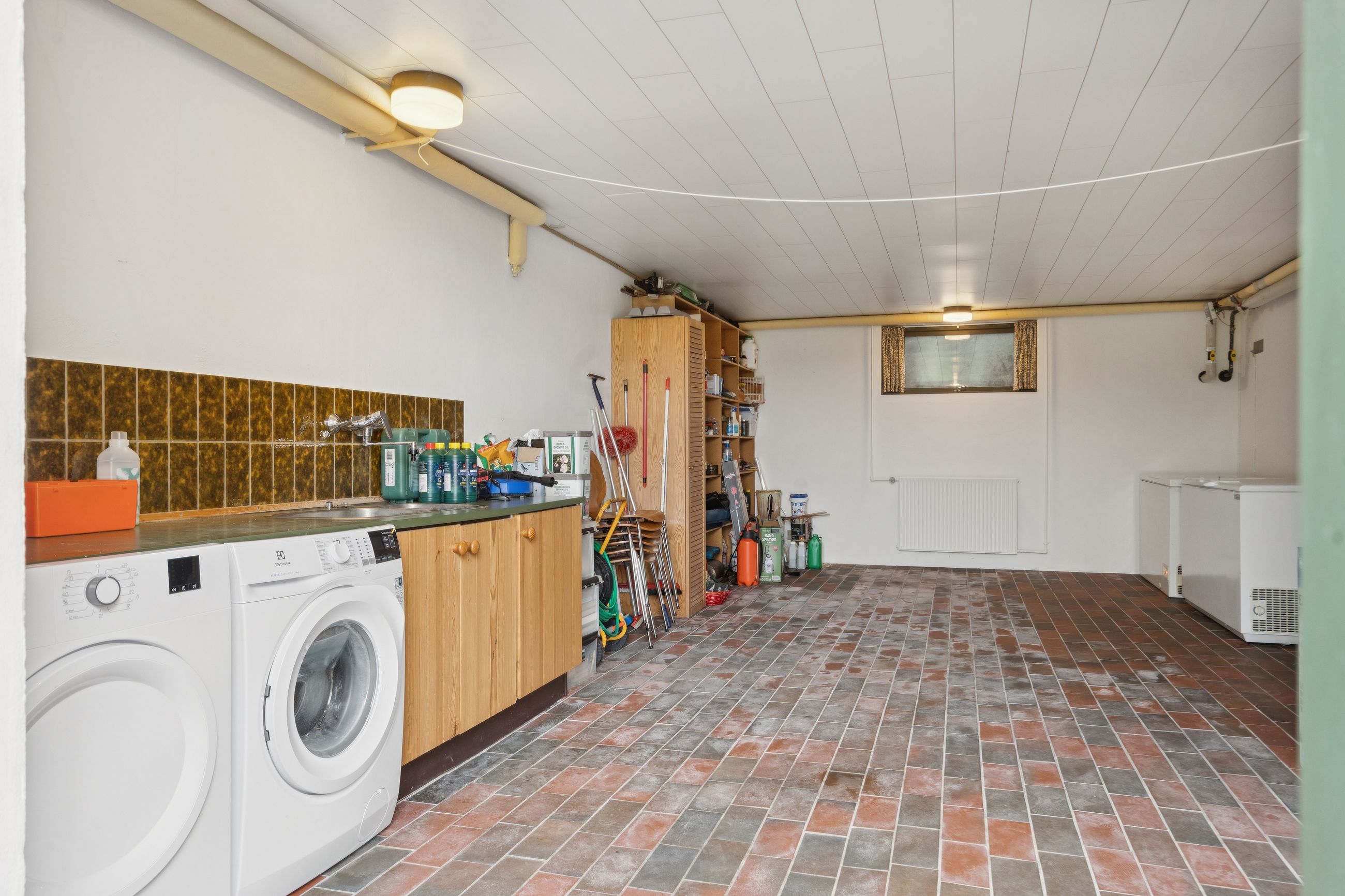 Kælderen er højloftet og byder på et stort vaskerum, to disponible rum samt endnu en stor terrasse – perfekt til hobby, opbevaring eller ekstra opholdsrum.
