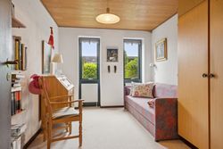 Stueplan rummer en indbydende stor entré, køkkenet ligger centralt i huset med nem adgang til stort alrum/ stue og opholdsstue med store vinduespartier, der lukker lyset ind og giver et smukt kig til haven og Lillebælt. Herfra er der direkte udgang til stor nyere anlagt træterrasse, hvor udsigten kan nydes hele dagen. Stort soveværelse med med eget badeværelse og et praktisk walk-in-closet samt to gode børneværelse og endnu et badeværelse.