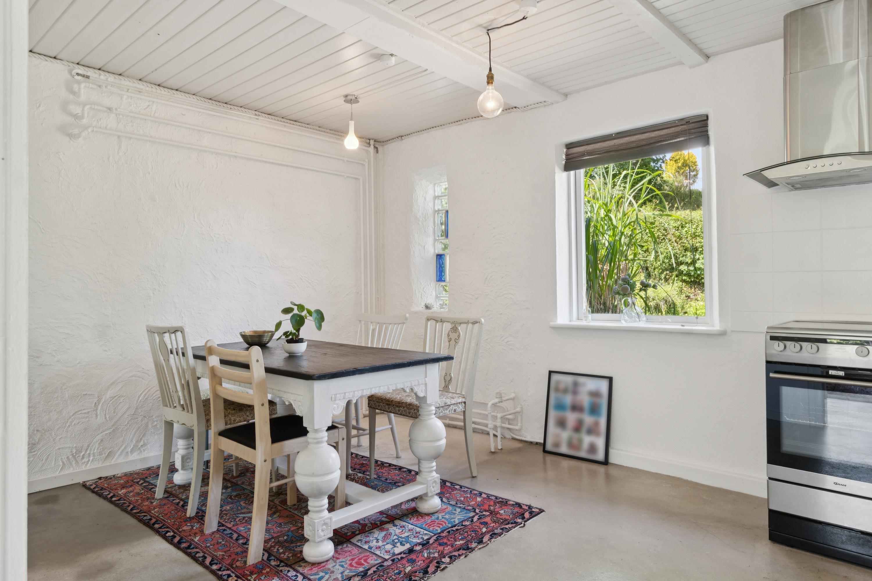 Midt i det bølgende landskab, hvor marker møder skov, og hvor en lille bæk snor sig sagte gennem haven, ligger denne charmerende ejendom på Vandgyden 17 i Gl. Pjedsted. Her leves livet i roligere tempo, tæt på naturen og med lyden af fuglesang som morgenens første hilsen.
