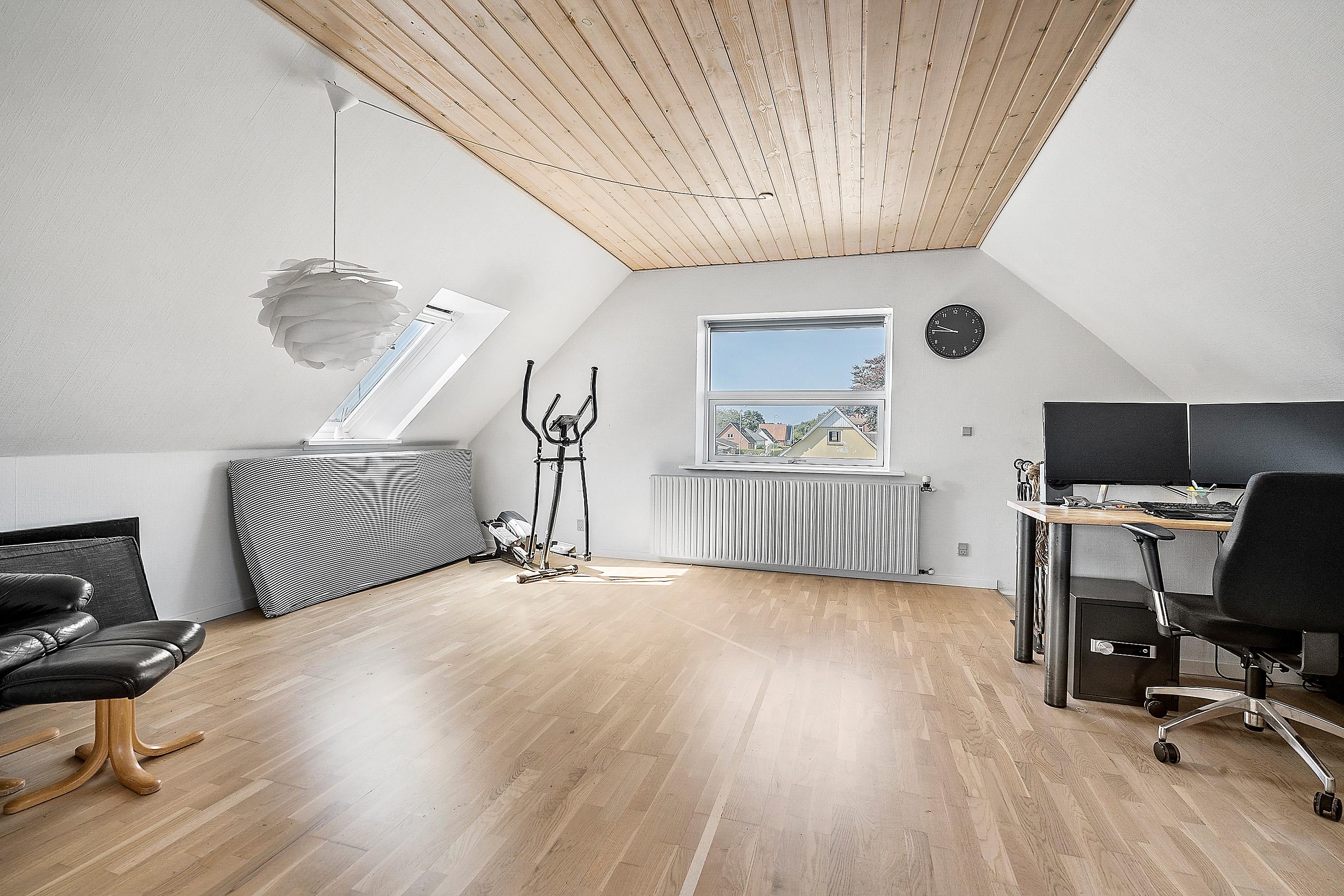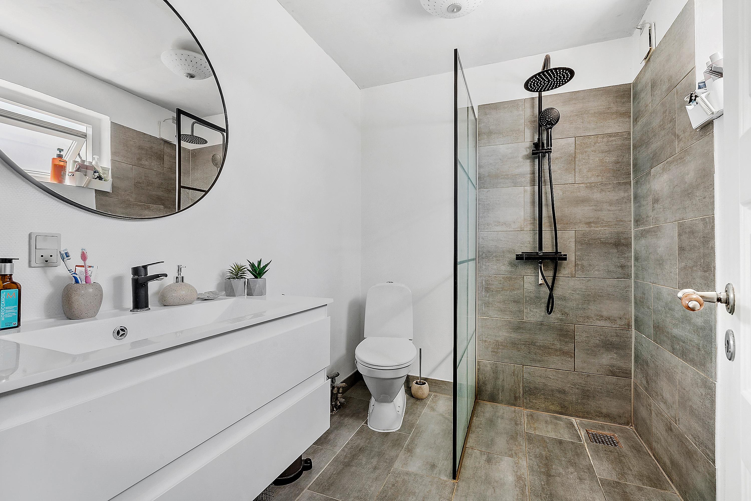 Denne bolig byder straks velkommen med en, indbydende entré, der giver adgang til et lyst og moderne badeværelse. Entréen fører dig videre ind i resten af boligen, hvor der på stueplan er en rummelig stue som inviterer til hyggelige stunder med familien. Stuen, har et vinduesparti som, sørger