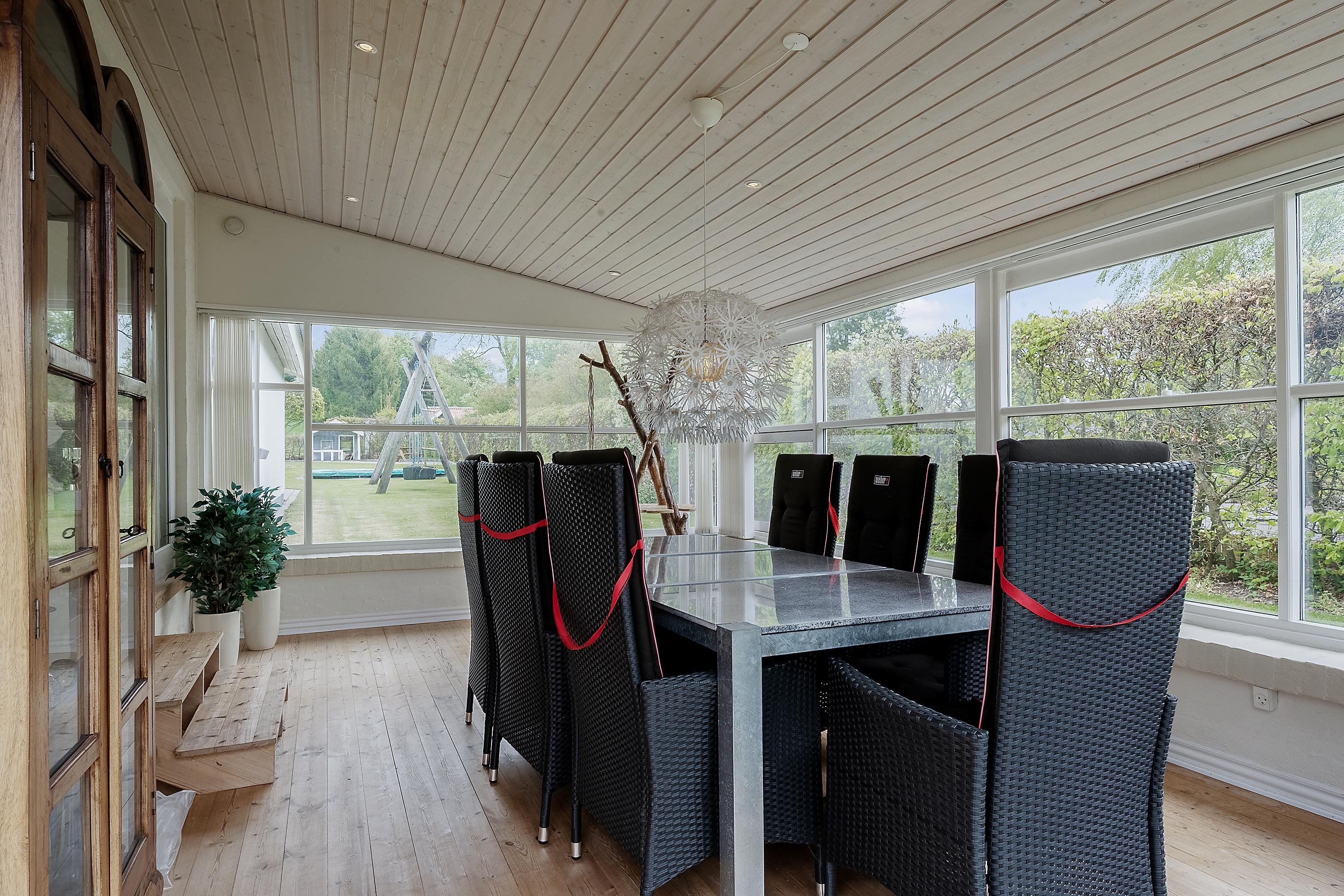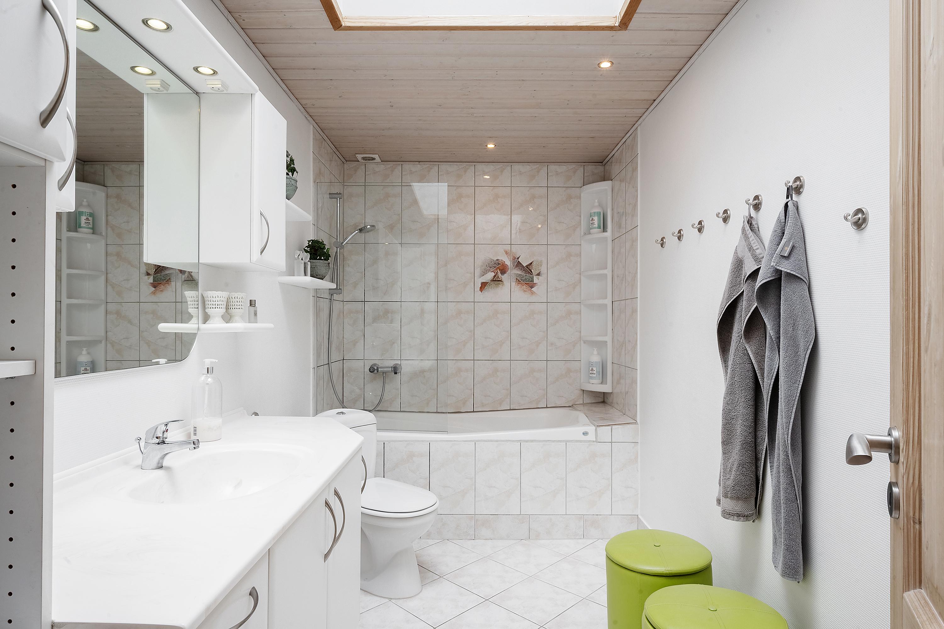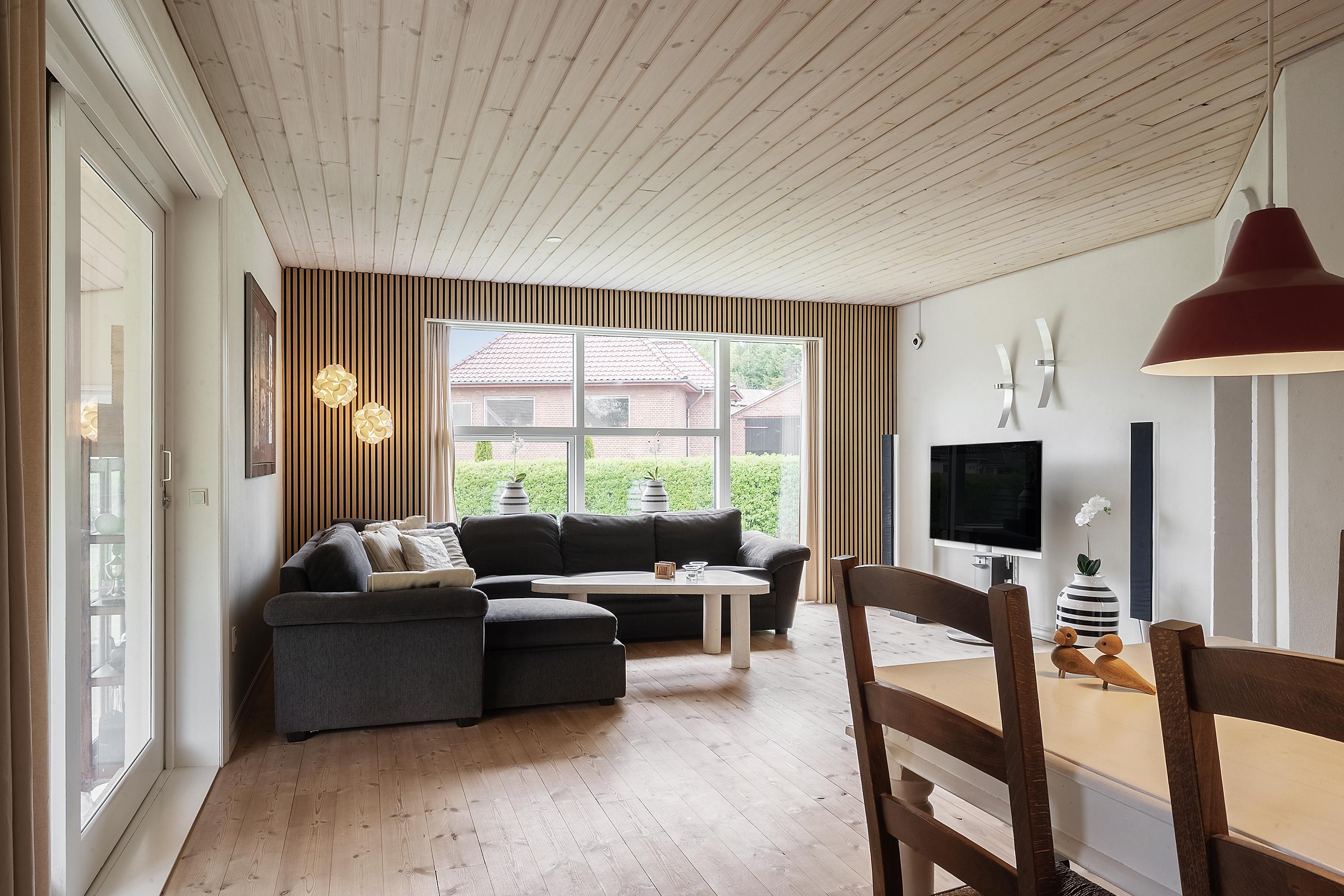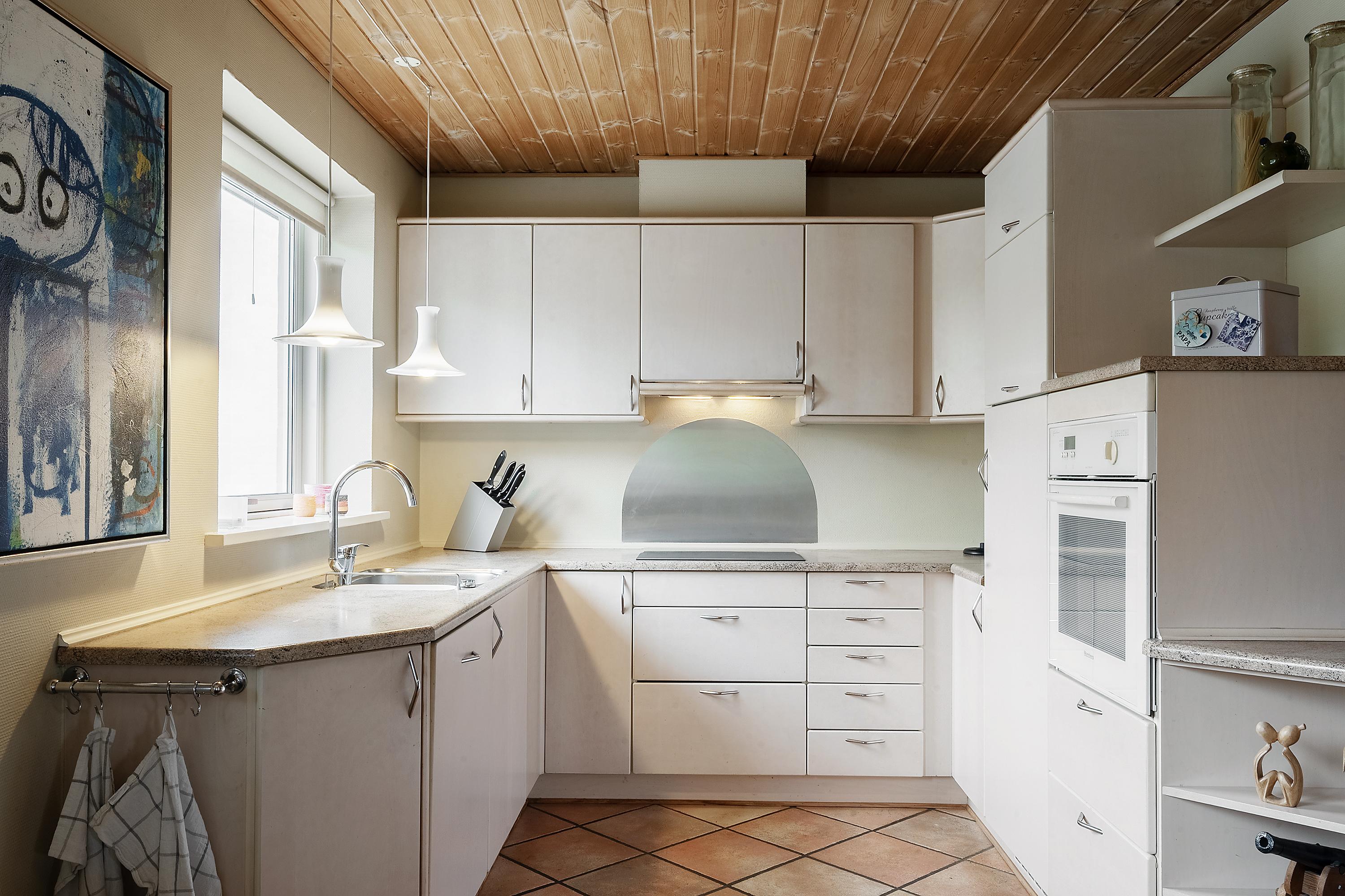 Ved ankomsten træder du ind i en lys entré med bryggers i forlængelse, hvor praktiske løsninger som vask og rigelig skabsplads gør hverdagen