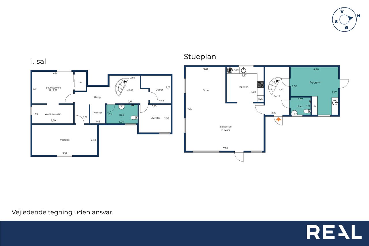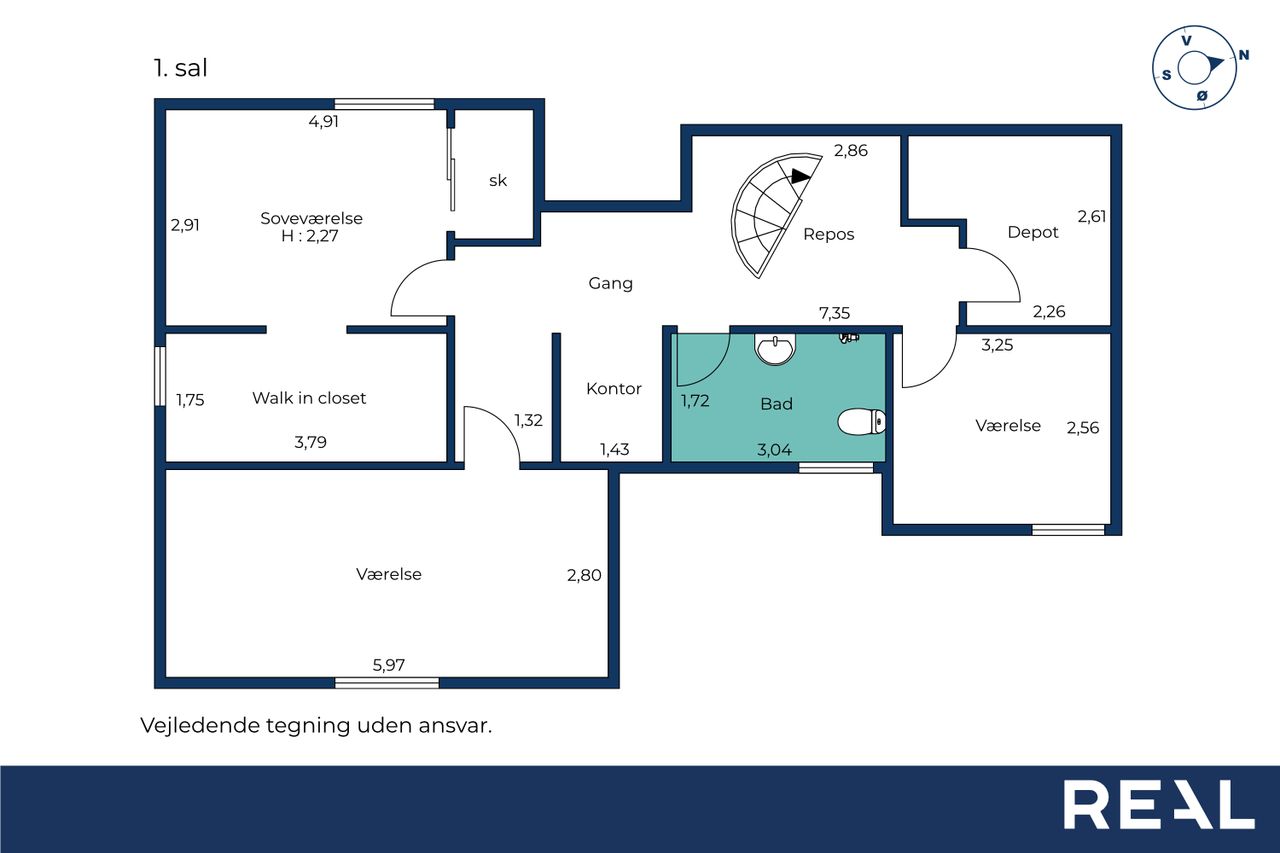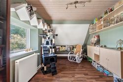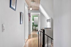 Førstesalen byder på et repos, hvorfra der er adgang til tre gode og regulære værelser – oplagt til børneværelser, kontor eller soveværelse. Det ene værelse har desuden adgang til et dejligt walk-in-closet. Et stort depotrum giver ekstra opbevaringsplads, og et rummeligt badeværelse med bruseniche fuldender etagen.