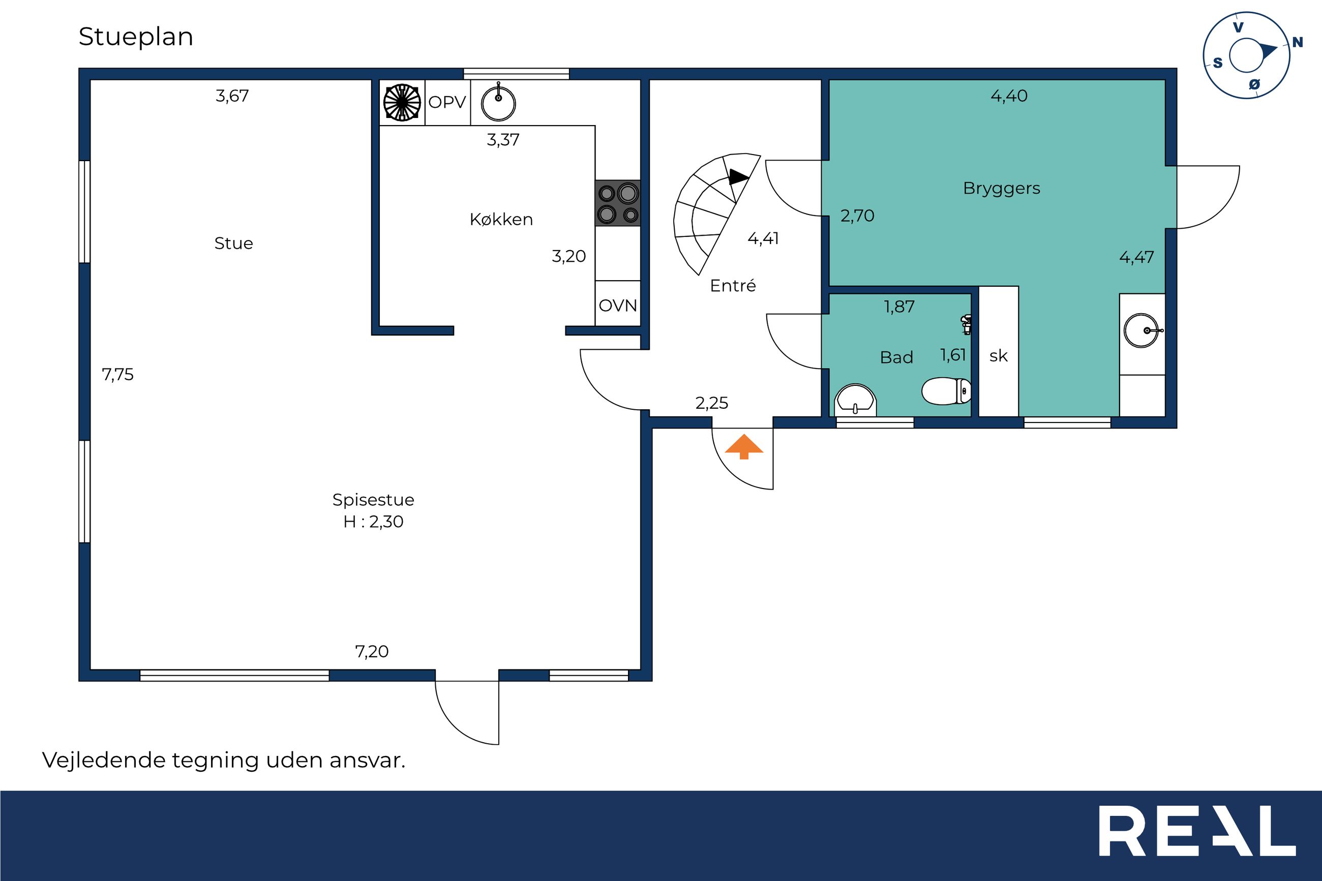 I stueplan finder I desuden et praktisk og rummeligt bryggers samt et pænt badeværelse med bruseniche – oplagt til både hverdag og gæster.