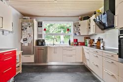 Boligens naturlige samlingspunkt er det åbne leverum, hvor et godt og rummeligt køkken, spisestue og opholdsstue smelter sammen i ét. Store vinduespartier sikrer et fantastisk lysindfald, og de lyse lofter giver en rummelig og lys atmosfære. Herfra er der direkte udgang til den ugenerede have – perfekt til både børneleg og afslapning. Haven er smukt omkranset af træer og byder på en hyggelig fliseterrasse, ideel til grillmiddage og sommeraftener med familie og venner.