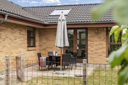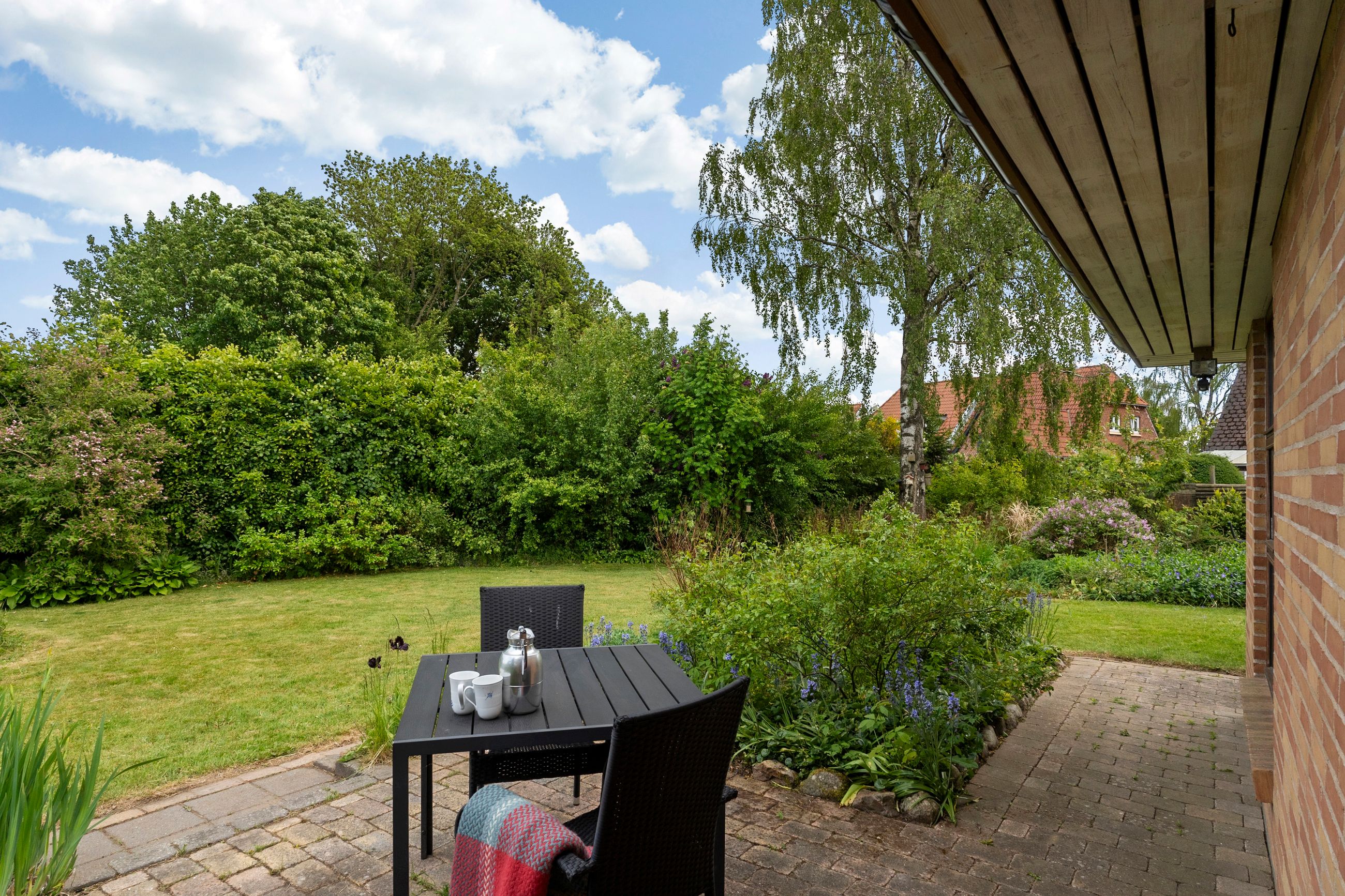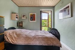 Soveværelset er placeret i forlængelse af stuen og har direkte udgang til en østvendt terrasse, hvor man om morgenen kan nyde solen og et betagende, langt kig ud over området. Haven omkring huset er smukt opvokset og nem at holde. Den rummer flere hyggelige terrassemiljøer – blandt andet en sydvestvendt terrasse med udgang fra stuen, hvor man kan nyde eftermiddags- og aftensolen i fredelige omgivelser.