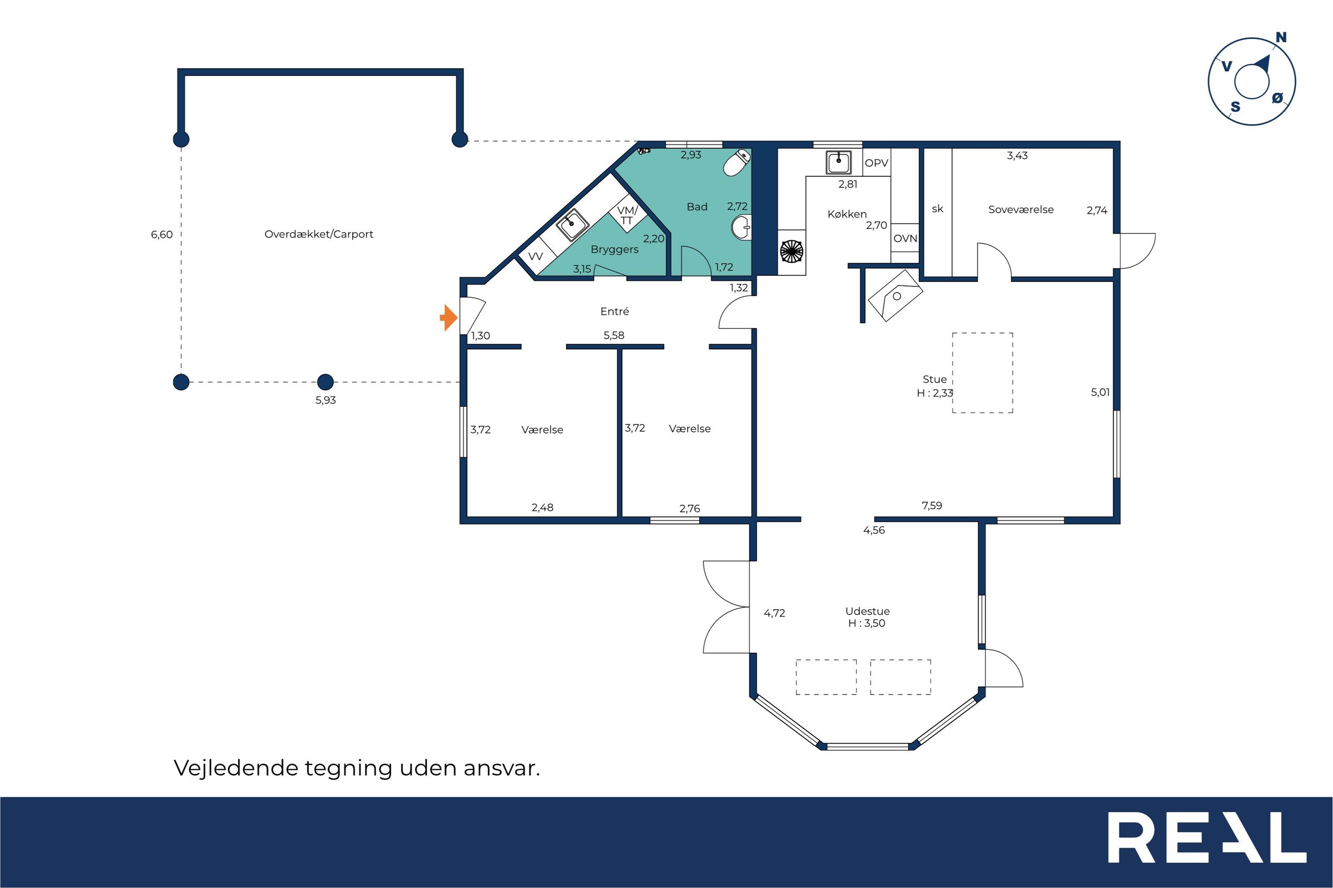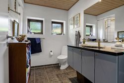 Boligen fremstår pæn og velholdt, og allerede i entréen fornemmer man den gode plads og funktionalitet. Her er god opbevaringsplads til overtøj og sko, og i direkte forlængelse ligger det praktiske bryggers med både skabe, håndvask og installationer til vaskemaskine og tørretumbler. I husets værelsesafsnit finder man to rummelige og indbydende værelser, samt et pænt og velholdt badeværelse med god størrelse og tidløse materialer.
