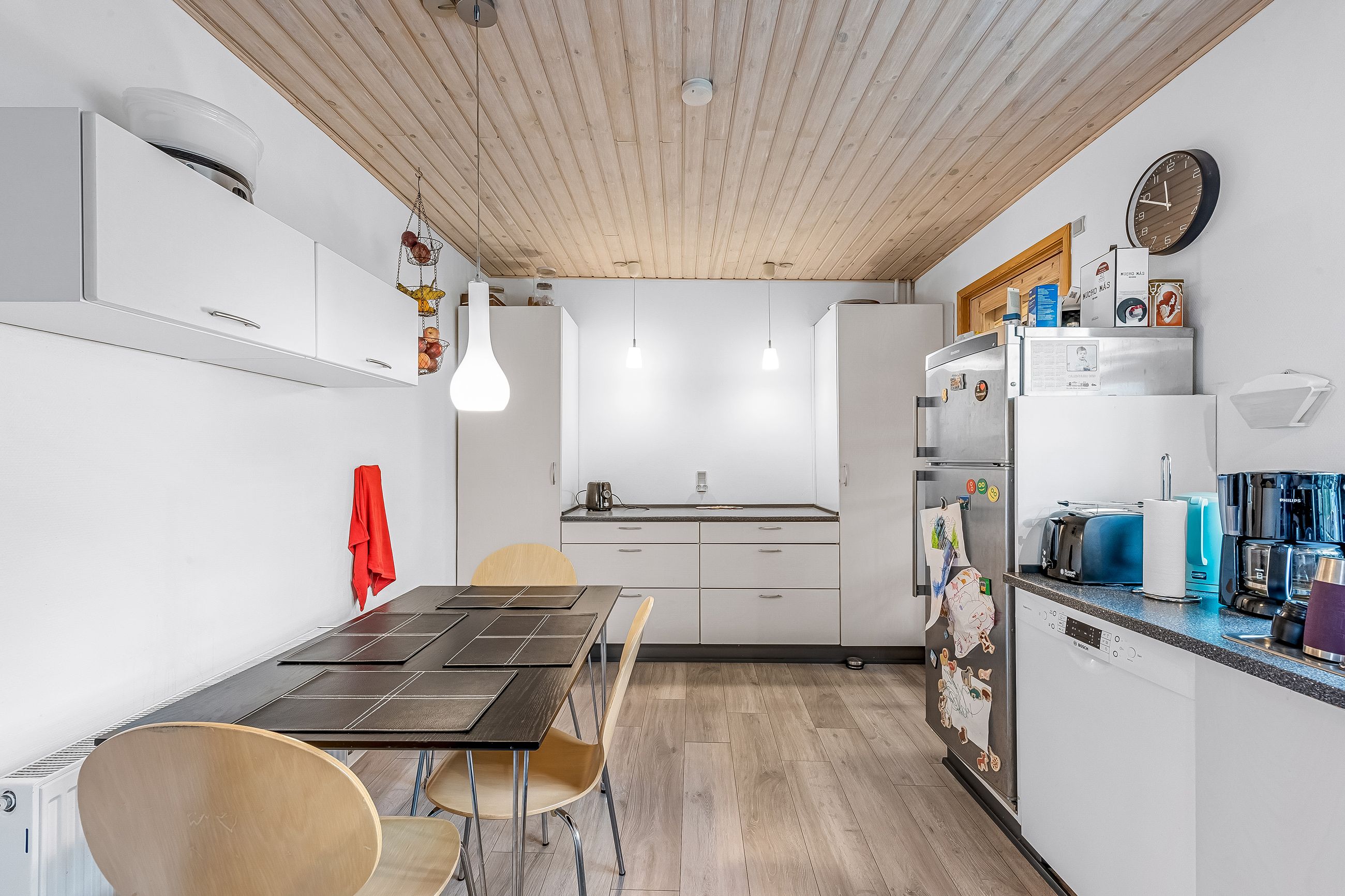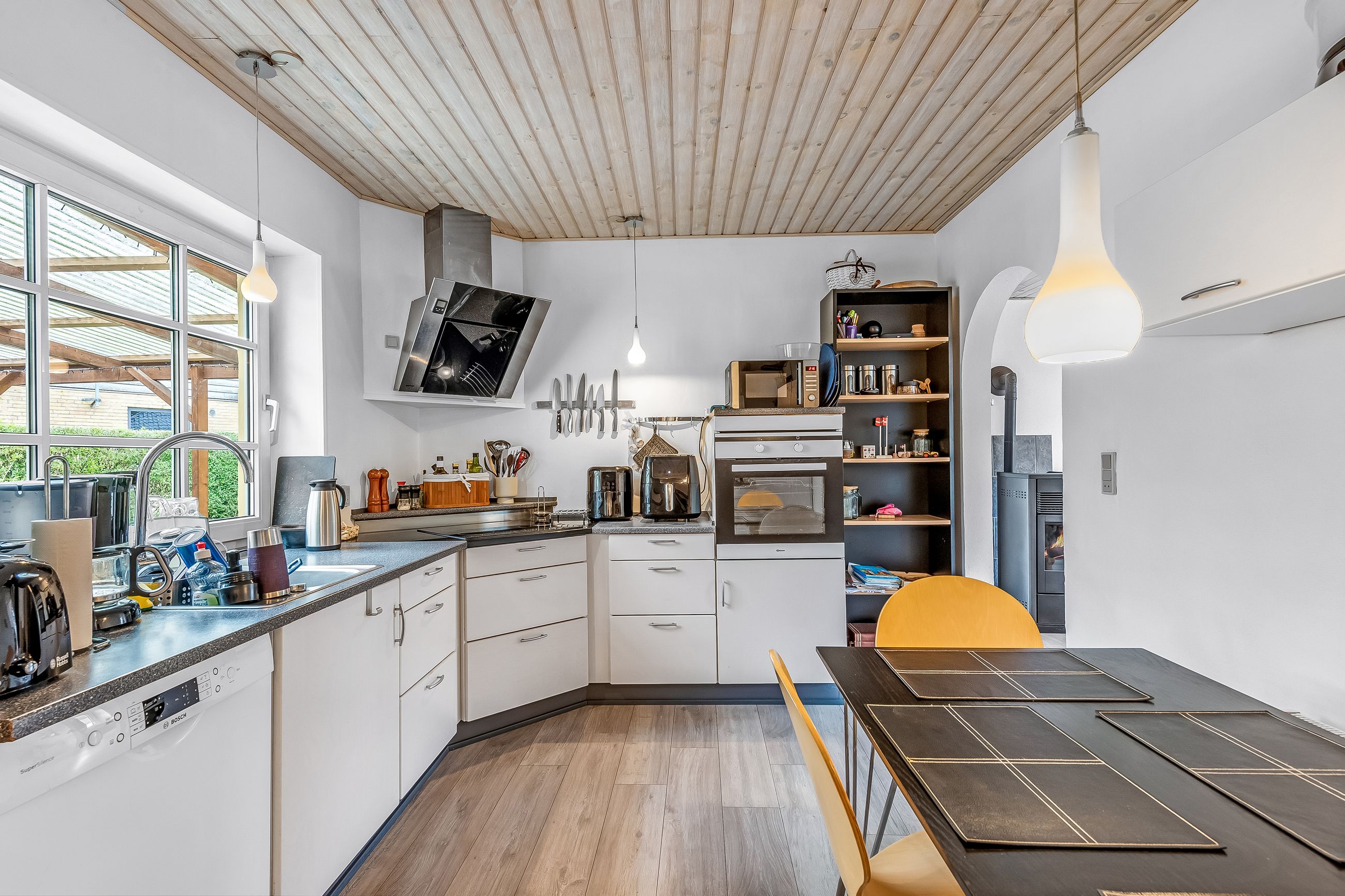 Hjertet i dette hjem kan meget vel blive det store køkken, som ligger klar til at kunne blive forvandlet til et moderne køkken-alrum. Denne mulighed giver dig friheden til at skabe et åbent og indbydende samlingspunkt for familien, hvor madlavning og hyggestunder kan gå op i en højere enhed.
