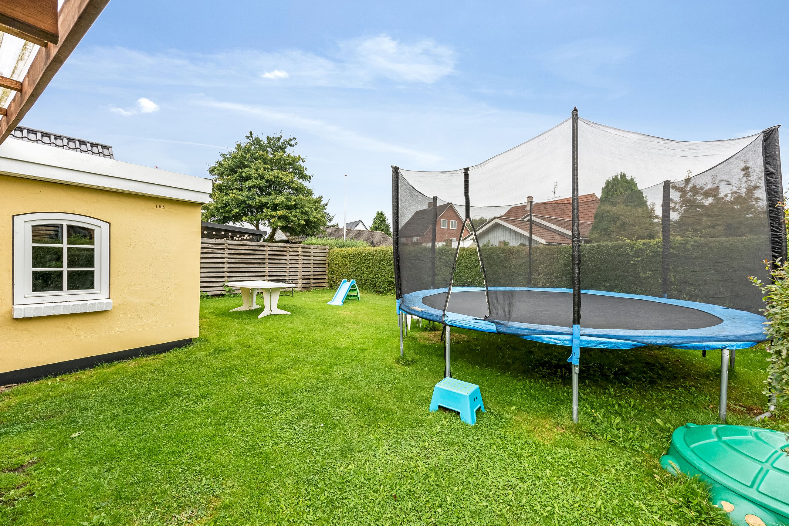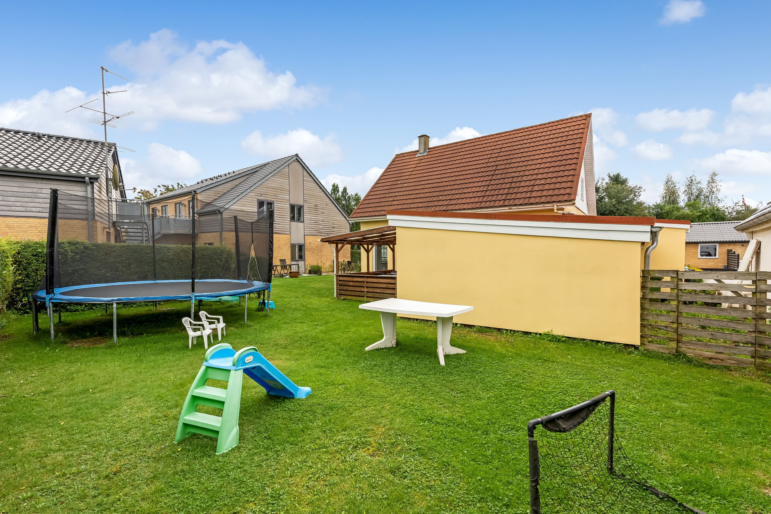 Ud over de indre rum byder villaen også på en dejlig grund på 391 kvadratmeter. Haven er nem og overskuelig og byder på legende aktiviteter og afslapning.