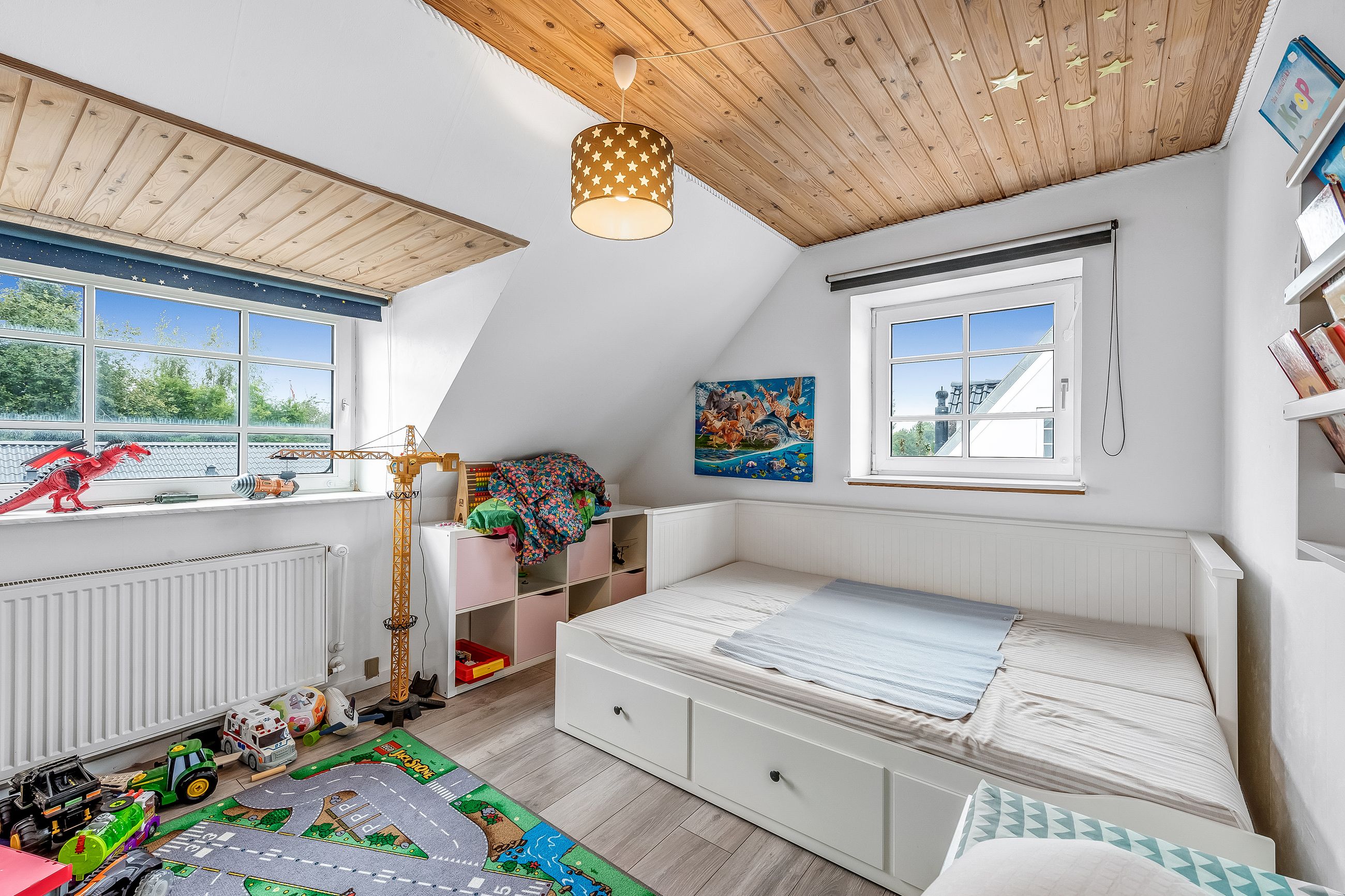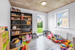 Denne villa imponerer med sine i alt seks rummelige rum, herunder fire gode værelser, ideelle til børnefamilien eller dem, der blot elsker at have godt med plads. Værelserne er lyst og funktionelt indrettet, og de tilbyder mange muligheder for personlig tilpasning, så hvert familiemedlem kan skabe deres eget fristed.