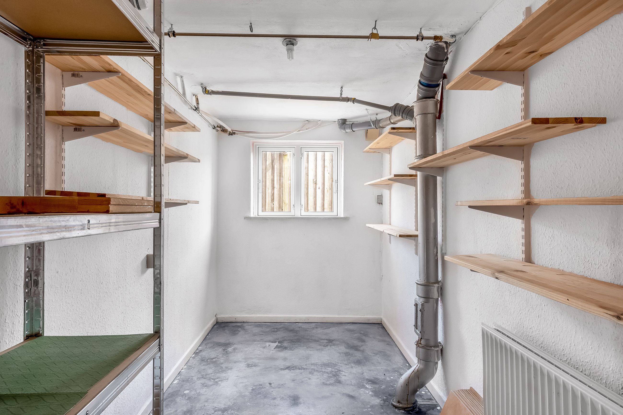 Et andet væsentligt plus er den tørre kælder, som tilbyder gode disponible rum med en bemærkelsesværdigt loftshøjde. Disse rum har potentiale til flere forskellige anvendelser, om det så er som opbevaringsplads, værksted eller et ekstra opholdsområde. Det er en kælder, der virkelig udvider boligens anvendelsesmuligheder.